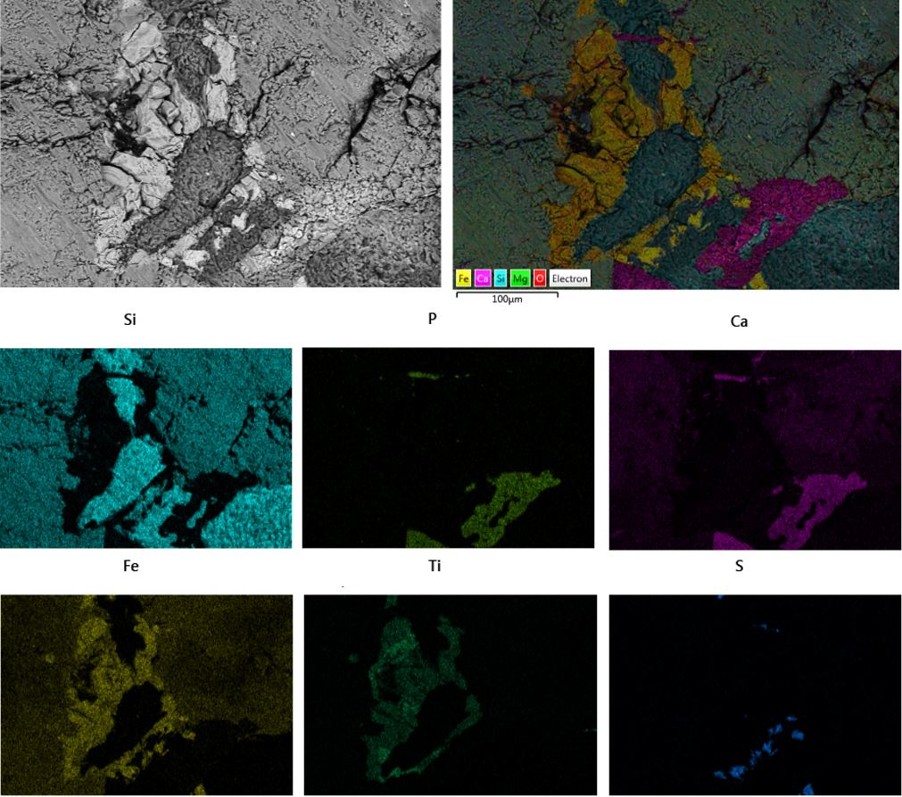 Analiza vzorca, ki sem ga prejel za analizo je bila zelo zahtevna. V znanosti pogosto rečemo, da je priprava vzorca skorajda bolj pomembna, kot analiza sama. To drži; brez optimalno pripravljenega vzorca so analize nezanesljive ali celo nemogoče. Priprava vzorca za vrstično elektronsko mikroskopijo običajno obsega zelo fino poliranje in nanašanje prevode plasti. V tem primeru sem se tem postopkom izognil, ker vzorca zaradi njegove dragocenosti nisem želel v nobeni meri poškodovati. Namesto tega pa sem se poigral z nekaterimi nastavitvami v mikroskopu, ki so mi omogočale, da sem kljub grobemu vzorcu lahko posnel slike mineralov in izvedel EDS meritve kemijske sestave. Izmeril sem, da meteorit NWA 12564 sestavljajo 0,1 – 0,5 mm veliki kristali minerala klinopiroksena, ki se pojavljajo v koncentričnih pasovih s steklasto fazo maskelynitom. Maskelynit je posebna vrsta stekla, ki je bil doslej najdena samo v meteoritih (tudi v meteoritu Novo mesto) in udarnih kraterjih; in nastane, kot posledica udarcev asteroidov, ki povzročijo nastanek udarnih valov s tlakom 250 – 300 kilobarov. V meteoritu se pojavljajo tudi več milimetrov veliki kristali železo-titanovih mineralov: ilmenita in titanomagnetita ter fosfatov klorapatita in merrilita. Vsi ti so značilni minerali za Marsovske meteorite. Vendar te minerale najdemo tudi v nekaterih magmatskih Zemeljskih kamninah. Za dodaten dokaz, da gre za Marsovski meteorit je potrebno raziskati izotopsko sestavo kisika, ki se v primeru Marsovskih meteoritov močno razlikuje od Zemeljskih kamnin in od drugih vrst meteoritov. Prav tako so Marsovski meteoriti pogosto bistveno mlajši od vseh ostalih vrst meteoritov. Starost meteorita NWA 12564 zaenkrat še ni bila določena.