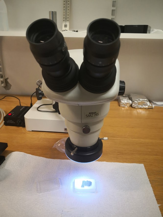 Meteorit je bi analiziran v laboratoriju Centra odličnosti nanoznanosti in nanomaterialov. Za analizo ga je posodila Ana Škerjanc.