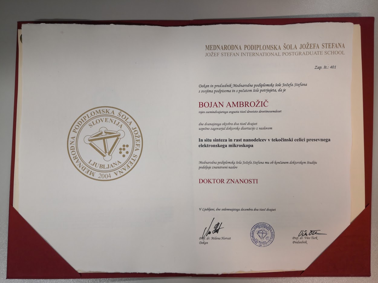 Danes sem bil na Mendarodni podiplomski šolo Jožefa Stefana uradno promoviran v doktorja znanosti. Podelitev doktorata je v luči epidemije koronavirusa potekala virtualno. Posnetek s podelitve si je mogoče ogledati v spodnjem videoposnetku, v katerem je na kratko razloženo (pri času 39 min 45 s) kaj sem počel v svojem doktorskem raziskovalnem delu. Hvala vsem.