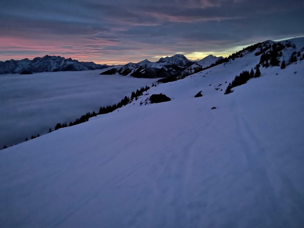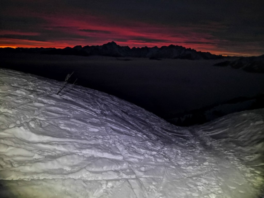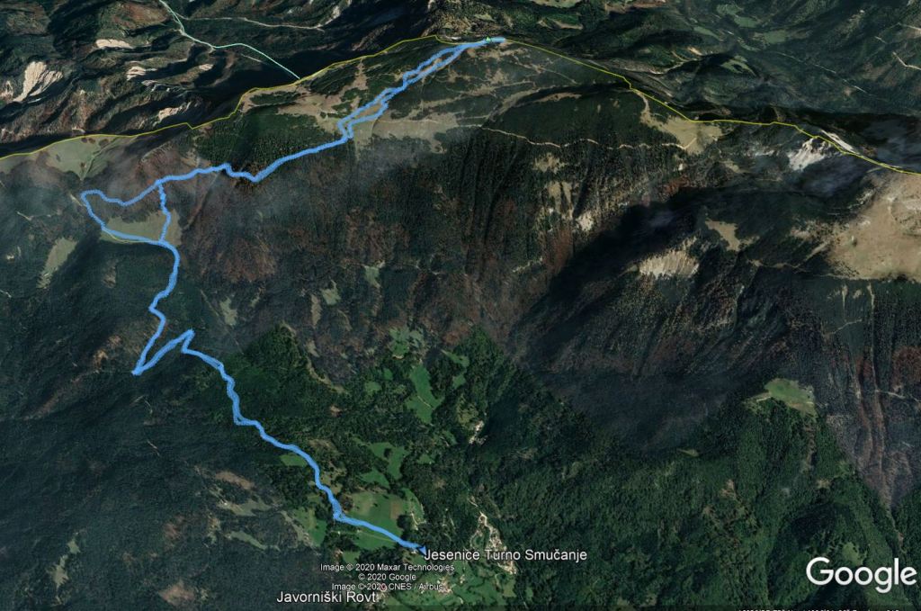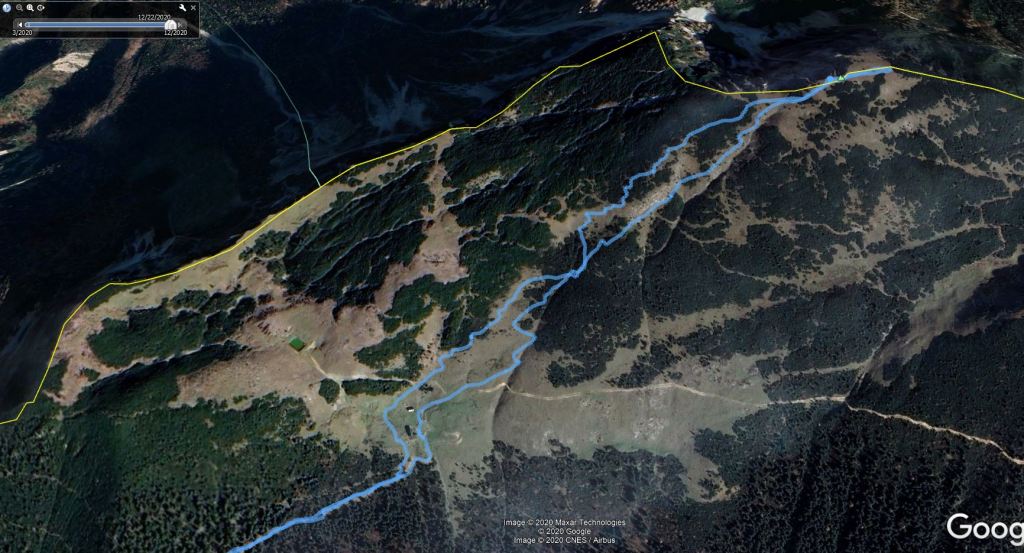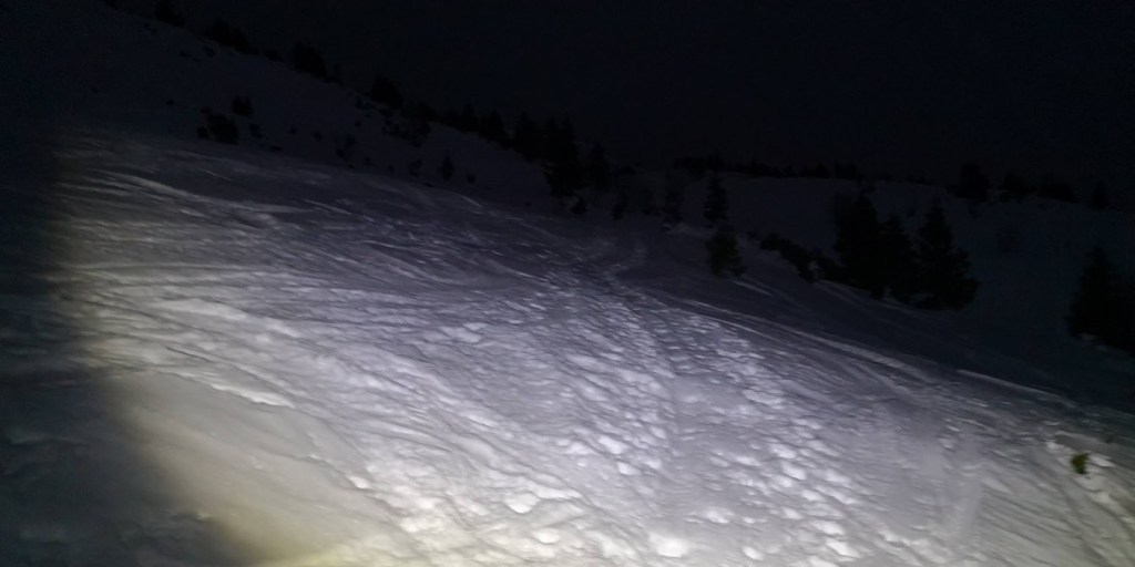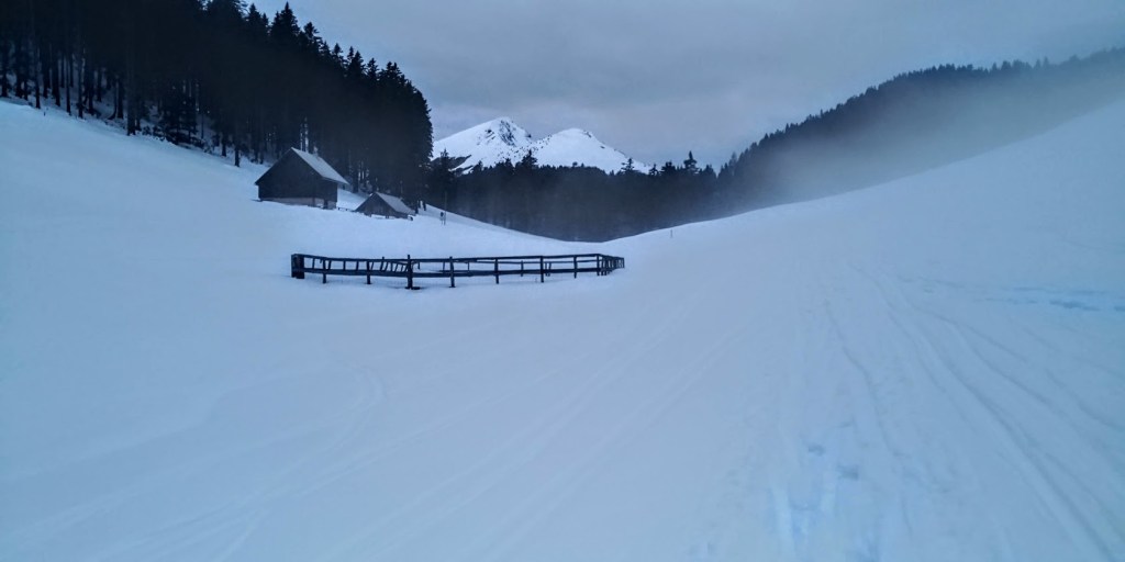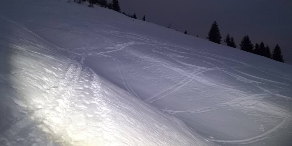 Začel sem pri Domu Pristava (969 m) v Javorniškem rovtu in nadaljeval po makadamski cesti mimo Križovca (1222 m) in Pustega rovta do Pastirskega doma Belski planini. Do sem je kar 6,5 km ceste, ki pa je na srečo povsod na debelo zasnežena. Nad gozdno mejo sem na srečo prišel ravno malo po sončnem zahodu, da sem nekaj časa lahko še užival v razgledih. Nato pa sem zagrizel v temno noč proti vrhu Struške (1944 m). Na vrhu je bilo razmeroma toplo in brez vetra. Vseeno pa je bilo toliko mraz, da je sneg pomrznil. Zato je bila smuka prek vršnega pobočja Struške vse do pastirskega stanu zelo dobra. Na cesti je bil sneg še kar trd, izven nje pa je bil južen. Skorje na srečo ni bilo nikjer. V gozdu nad Pustim rovtom, ki sem ga edinega presmučal je bil sneg sicer južen, a se je vseeno dalo lepo zavijati. Na smučeh sem se brez težav pripeljal do avta.