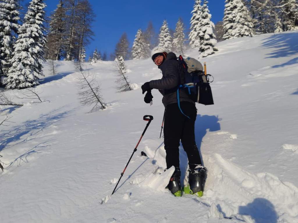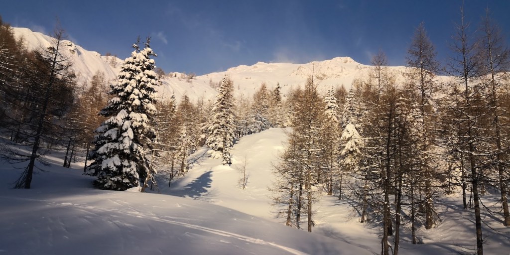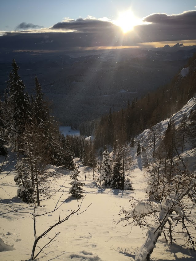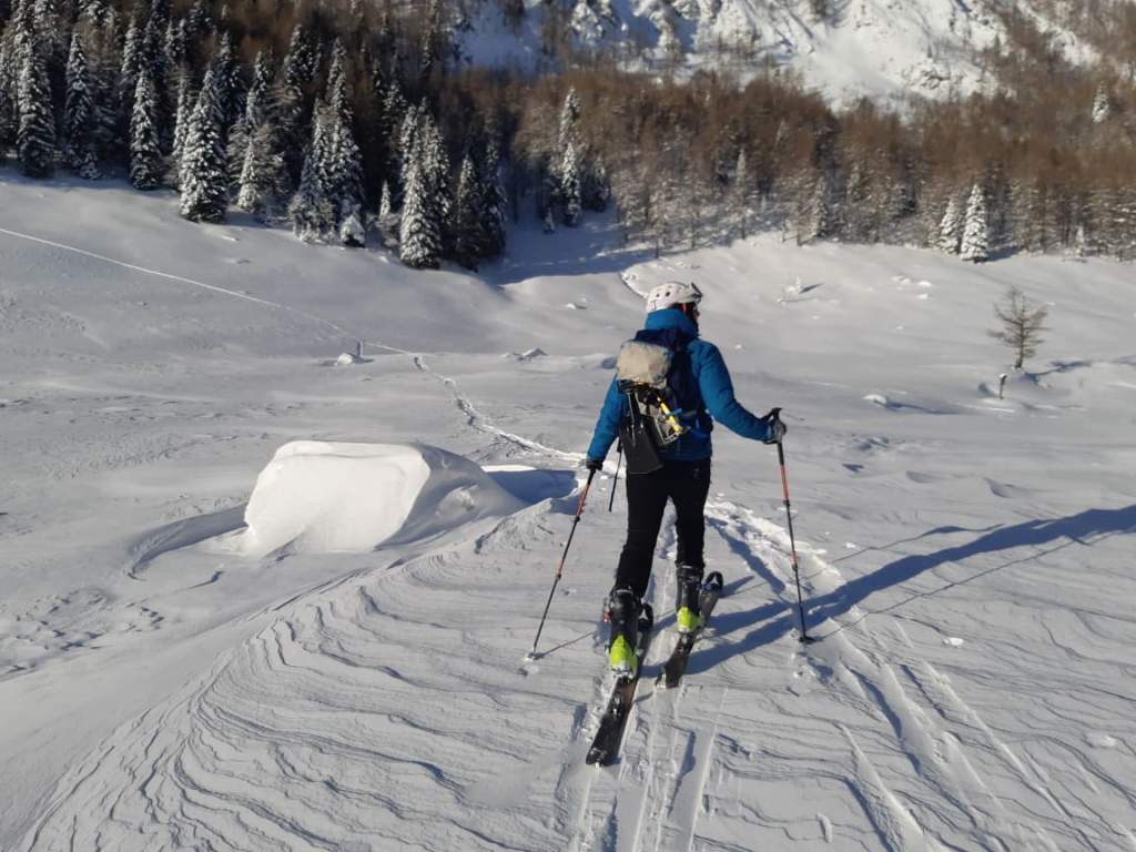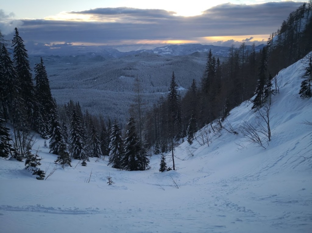 Začel sem na Rudnem polju ob tako zgodni uri, kot je bilo zaradi korona pravil to mogoče. Kljub temu se je že ob tej uri kar trlo turnih smučarjev. Med prvimi sem zagrizel proti Viševniku. Gaz so potegnili že včeraj. Tako, da mi gre hitro. Nekoliko me le zaustavljata mraz in veter. Na srečo je najbolj pihalo na Plesišču. Višje pa potem niti ne. Obrnil sem na vznožju plazovin na višini 1900 m. Odsmučal sem po pobočju in neki grapi na planino Konjščico (glejte GPS sled). Sneg je bil idealen – pršič je neslo čez ušesa. S Konjščice sem sledil špuri na Mesnovo glavo. Potem sem pod grebenom prečil desno proti vrhu Slemena (1823 m). Smučal sem naravnost navzdol po zelo strmem gozdu. Zgornjih 100 višincev je bila že rahla skorjica, potem do Konjščice pa spet uživaški pršič. S Konjščice sem se vnovič povzpel na Plesišče. V tem času so bila vso pobočja od Konjščice že čisto razrita. S Plesišča sem nadaljeval proti Viševniku do višine 1950 m in nato odsmučal po gozdu na Rudno polje. Nabralo se je 1700 uživaških višincev smučanja pršiča. Na Rudnem polju pa me je pričakalo še eno presenečenje: prometni kaos. In sicer ker je na Rudnem polju že zdavnaj zmanjkalo parkirišč, so avtomobile puščali ob glavni cesti v obliki nepretrgane kolone, ki je segala od vojašnice pa vse do Šport hotela, kar znese 4 km!
