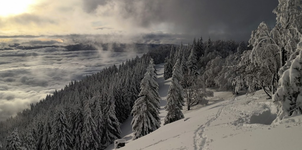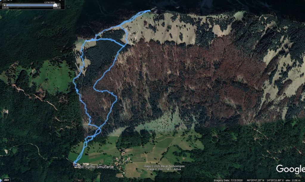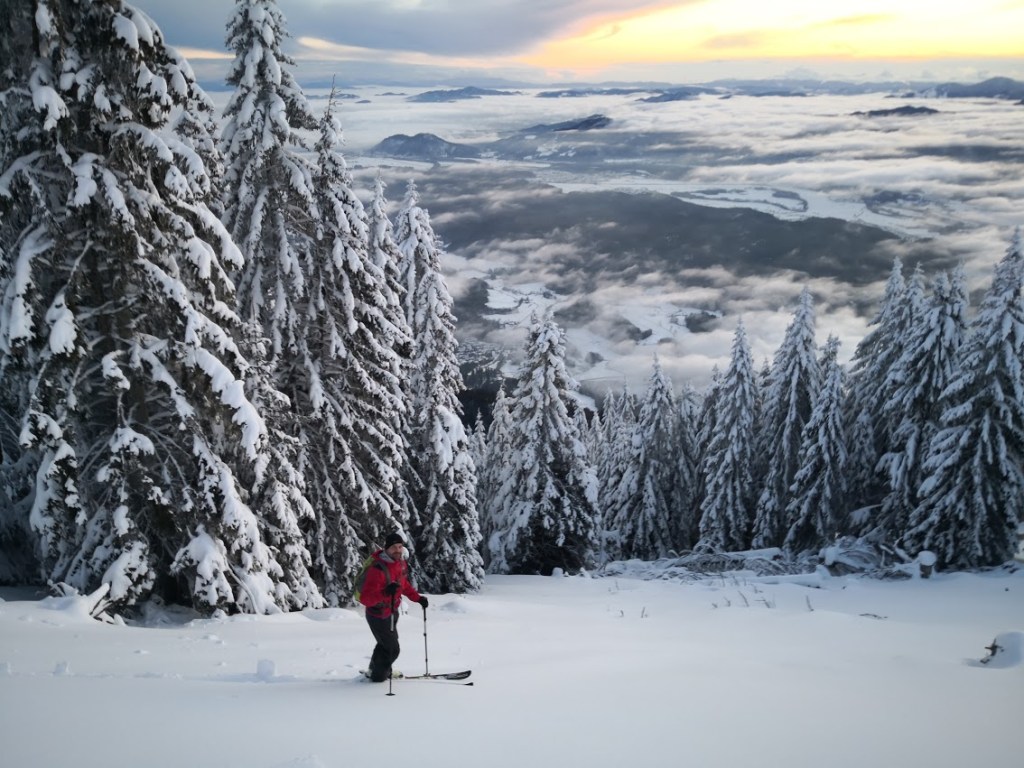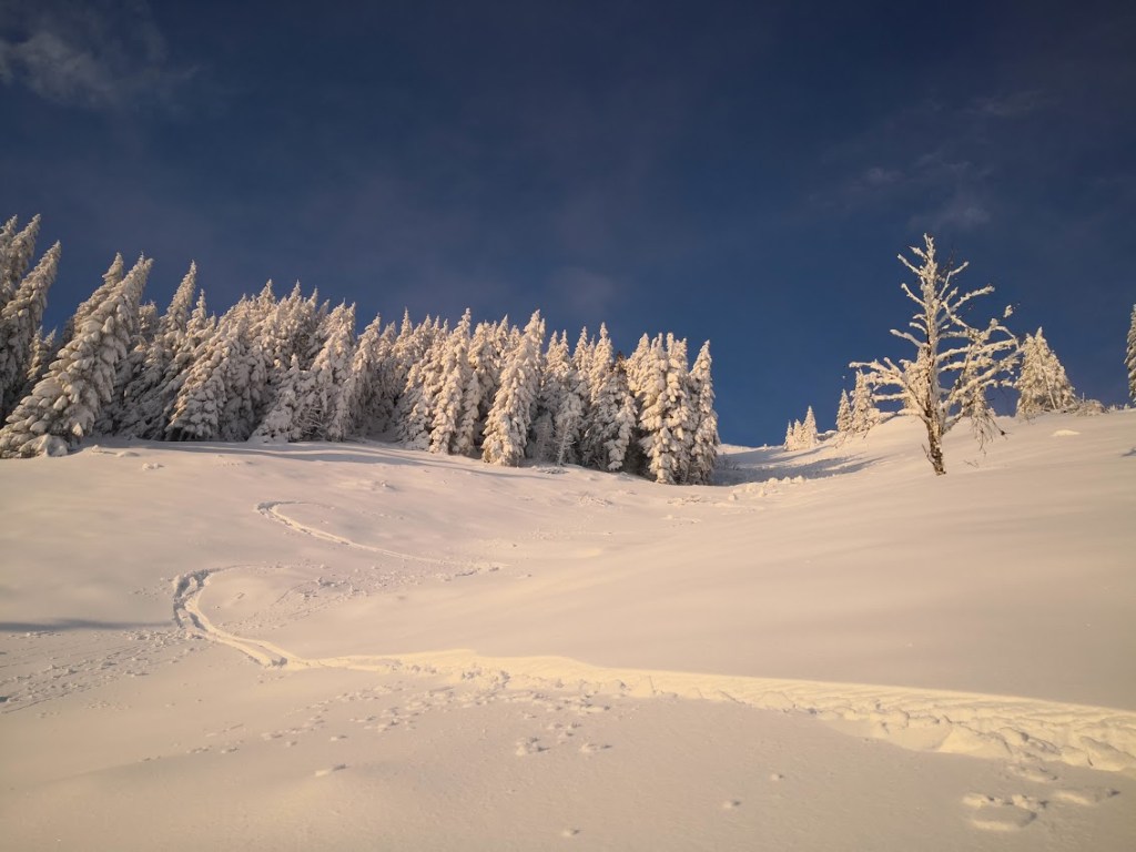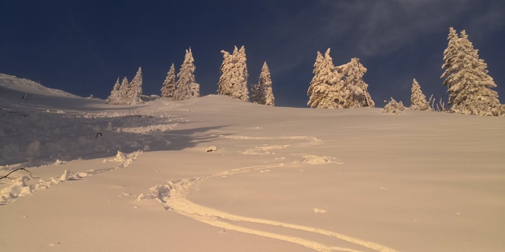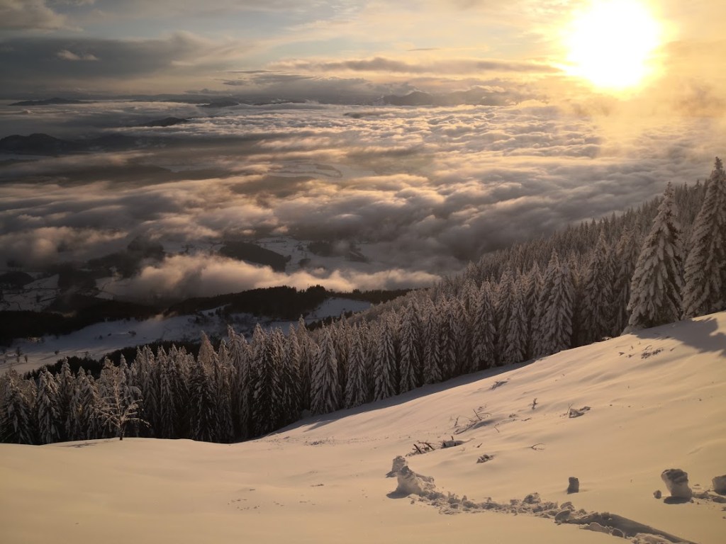 Trenutno je tako obilo snega, da so običajne turno smučarske destinacije prenevarene (npr. Zelenica). Poleg tega pa obilica snega omogoča, da smučamo kjer se v resnici zelo redko da. Ena izmed takih gora je Kriška Gora. Do Koče na Kriški Gori (1471 m) sem se povzpel iz Gozda (891 m). Ker gre za zelo obiskan hrib, je bilo pozno popoldan narejena že zelo dobro utrjena gaz. Pešcem celo priporočam pohodne dereze. Od koče sem nadaljeval po grebenu na vrh Vrata (1591 m). Naprej na Tolsti vrh pa ni bili smiselno iti s smučmi, ker bi bilo nazaj grede preveč gor-dol. Zato sem čez travnik in ob gozdu odsmučal do zadnje serpentine poti na Kriško Goro. Sneg je bil presenetljivo že precej predelan in že rahlo skorjast. Nato pa sem se povzpel peš nazaj gor do koče. S koče pa sem odsmučal pod tovorno žičnico do avta. Tik preden se pride na jaso že rahlo manjka snega.
