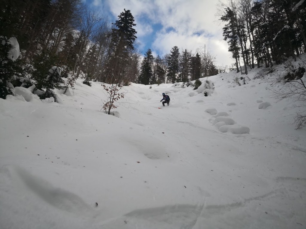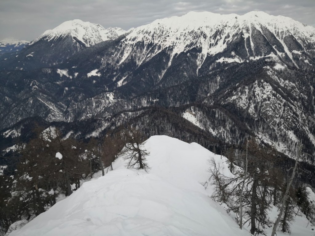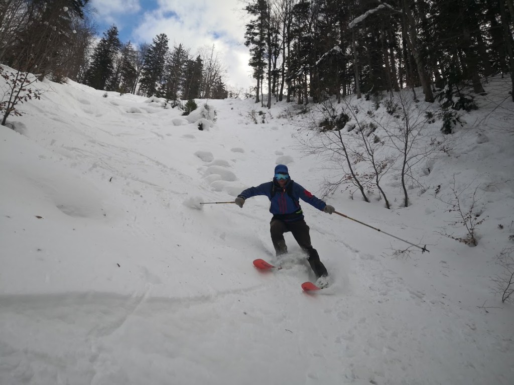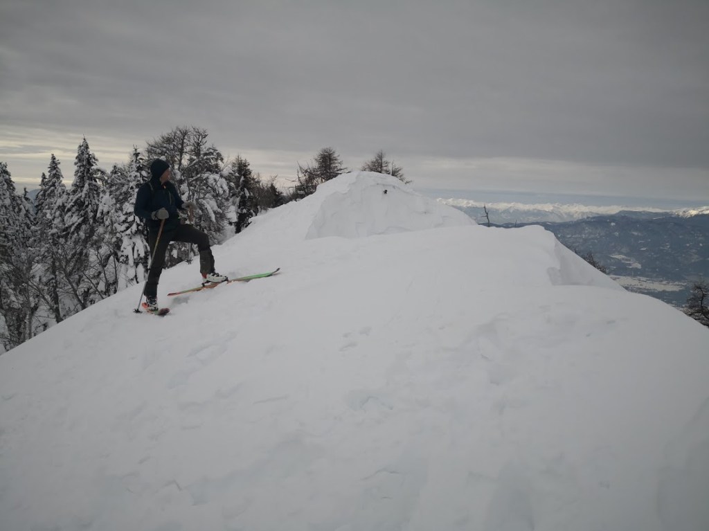 Dobrča je gora, ki je najbližje mojemu domu. Vendar, ker so izhodišča na nizki nadmorski višini, jo le redko smučam. Letos pa je snega dovolj, da sem jo smučal že dvakrat in to iz dveh različnih izhodišč. V nedeljo sem jo smučal iz smeri Drage prek Ledene trate. Tod sem bil s smučmi že decembra, vendar je bilo snega samo za silo dovolj, da sem se lahko peljal izključno le po cesti. Od takrat je zapadlo še najmanj 2 m novega snega. Zato sem se tokrat cesti skorajda povsem izognil z vzponom po grapi. Od konca ceste sem nadaljeval na markirano pot Prevala-Koča na Dobrča, katere pa sem se držal le kakšnih 300 m dokler nisem zavil strmo levo navzgor. Poleti je tu čisto brezpotje. Tudi tokrat sem rahlo zašel, ker sem se držal preveč levo, zaradi česar nisem prišel na glavni vrh Dobrče (1634 m), ampak en meter višji Šentanski vrh (1635 m). Pa nič zato, ker je s Šentanskega vrha lepši razgled, kot z galvenga vrha. Smuka z Dobrče je bila srednje dobra. V gozdu je bil sneg skorjast, na njem pa je bilo tudi veliko odpadlih vejic. Na jasah (ki je jeh na turi žal bolj malo) pa je bil sneg uležan pršič, ki ni bil še čisto nič zvožen, ker relativno malo planincev pozna ta predel Dobrče.