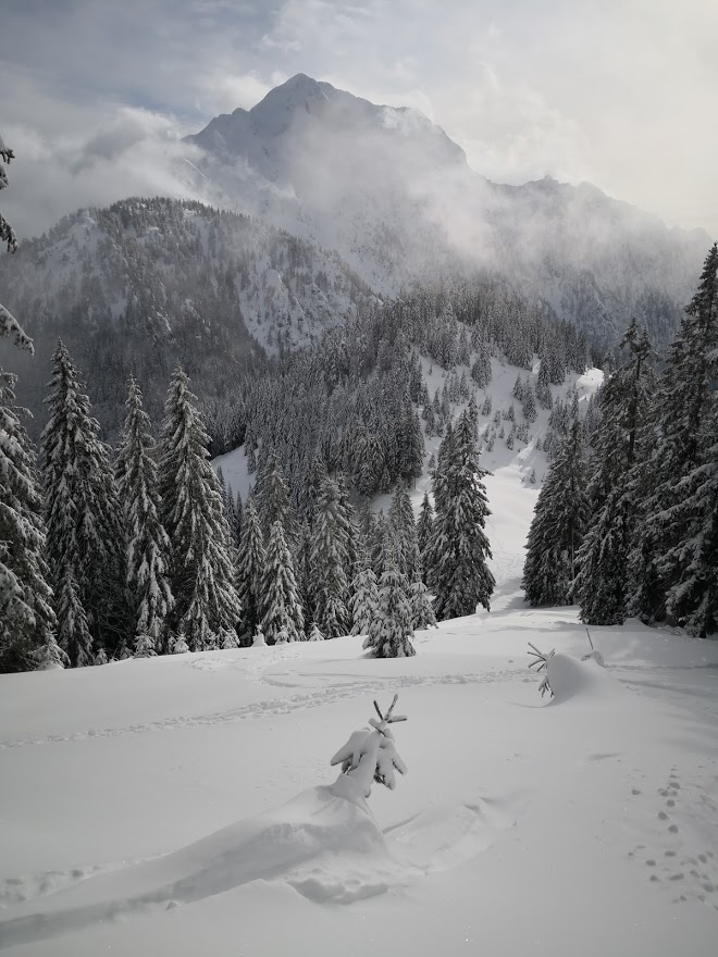 Veliki Javornik (tudi Ženiklovec) je najvišji vrh v širokem pasu gozdnatih hribov med Storžičem in Košuto. S turo sem začel na velikem parkirišču pri kamnolomu v Grahovšah. Na začetku nisem pričakoval presežka v količini snega, pa tu to niti ni toliko pomembno, saj se tod smučati v vsakem primeru ne da, ker je skorajda povsem ravno. Po dveh kilometrih pa se cesta končno začne vzpenjati proti Domu pod Storžičem. Vendar sem naletel na pravo turno-smučarsko razočaranje, saj je cesta od vode povsem razrita, s polno presledki brez snega. Kjer pa je sneg bil, pa je voda nanj nasula pesek. Skratka nesmučljivo. Šele 1 km naprej je snežna odeja postala neprekinjena. Od Doma pod Storžičem sem nadaljeval na Javorški preval in nato na vrh Velikega Javornika (1715 m). Odsmučal sem na drugo stran – proti planini Javornik (ojužen pršič). Nato pa sem sledil smučinam do vikenda in naprej po cesti do samotnih kmetij (glejte GPS sled). Sicer mi je uspelo neprekinjeno prismučati čisto do avta. Vendar je snega spodaj res zelo malo.