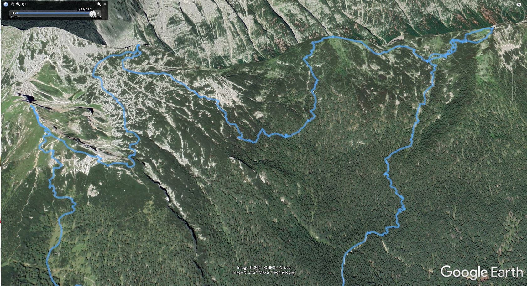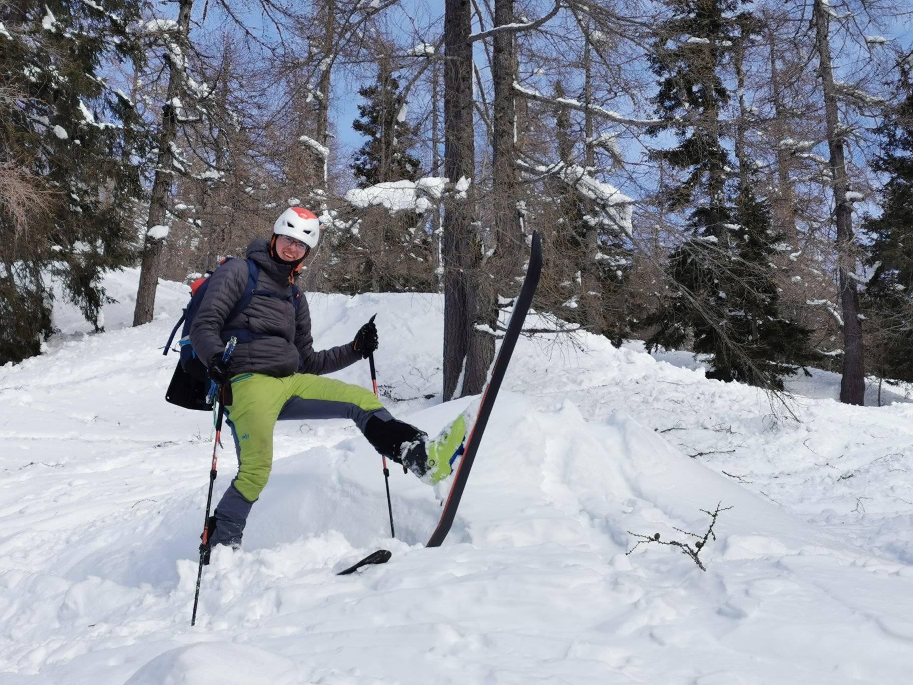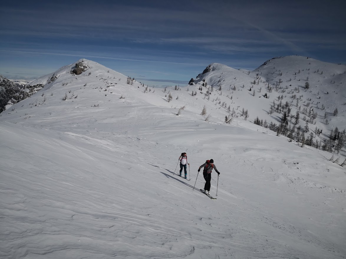 Z Rudnega polja sem se najprej namenil prioti Mrežcam. Špura je bila široka in utrjena. Zato sem napredoval precej hitro. Potem pa nenadoma zaslišim zvok, podoben tistemu, ko se zlomi suha veja. Brez da bi pogledal pod noge sem takoj vedel kaj se je zgodilo – zlomil sem leseno sredico smuče. Po podatkih s Strave sem z njimi smučal 130-krat, kar pomeni, da je do zloma najverjetneje prišlo zaradi utrujenosti materiala. Odslej je samo še karbonski ovoj smučo držal skupaj, da ni razpadla na dva dela. Z nekaj previdnosti sem se uspel povzpeti na vrh Mrežc (1965 m). Na vrhu sem z izolirnim trakom in lavinsko sondo “imobiliziral” smučo. Upal sem, da bo smuča za silo zdržala smučanje do avta. Smuka z Mrežce je bila dobra – po zelo predelanem snegu. Moje imobilizirane smuče pa so se tako dobro odnesle, da sem se odločil, da s turo nadaljujemo proti Debelemu vrhu (1959 m). Smuka z Debelega vrha je bila še boljša – po ravno prav odjenanem srenjcu. Po planoti okoli Velikega Selišnika sem se povzpel še na Draški rob (1981 m). Z njega sem se čez planoto spustil pod Kačji rob, s koder sem se povzpel še na vrh Viševnika (2050 m). Vršnih 20 m smuke z Viševnika sem se zaradi zlomljene smuče odpovedal. Sem pa potem zavil levo v grapo, ki me je pripeljala direktno na Zlate vode. Zanimivo, bilo je še povsem nezvoženo. V grabnu pod Zlatimi vodami pa mi je počil še karbonski ovoj smuče. Dilo mi je sedaj držal skupaj samo še robnik. Na srečo je bilo smučišče Viševnik poratrakirano, kar mi je precej olajšalo sestop (smuko) do avta. Navkljub polomu, sem v celi turi skupaj presmučal 1450 višincev.