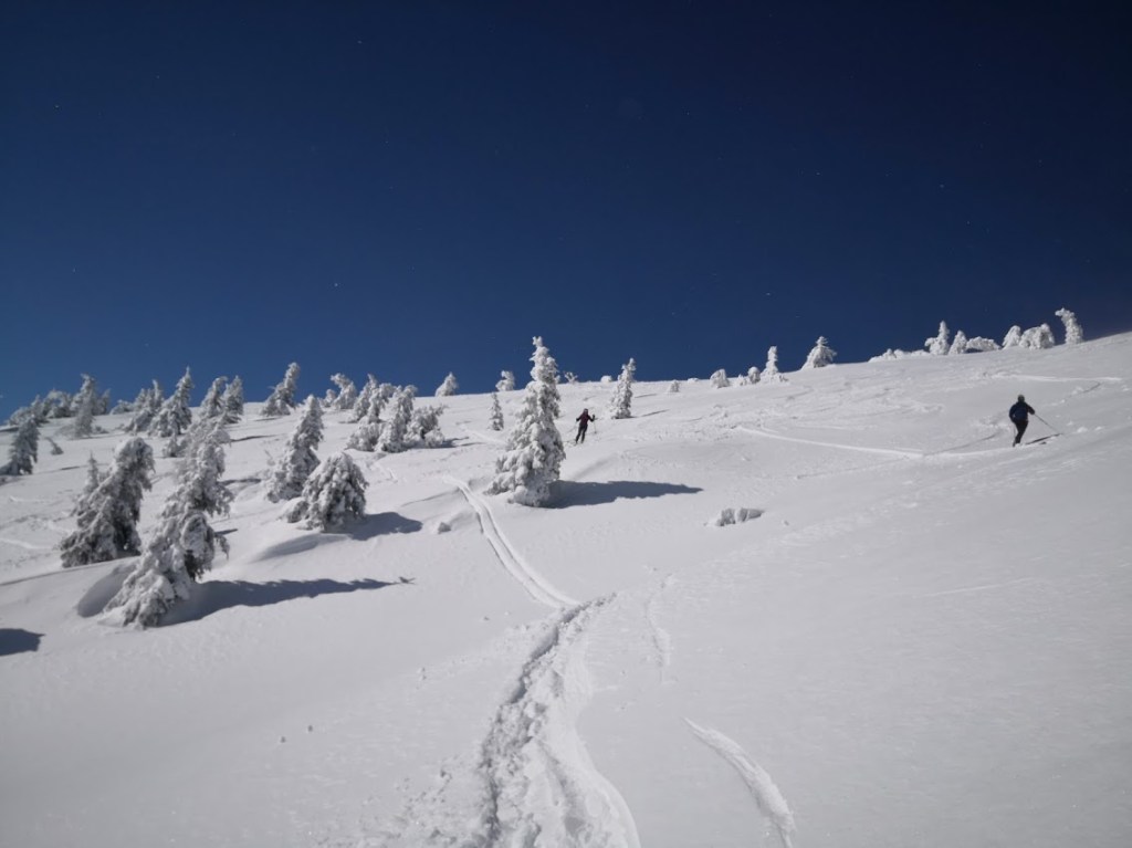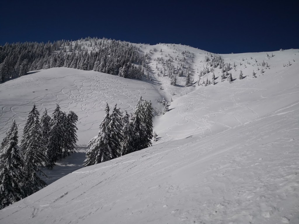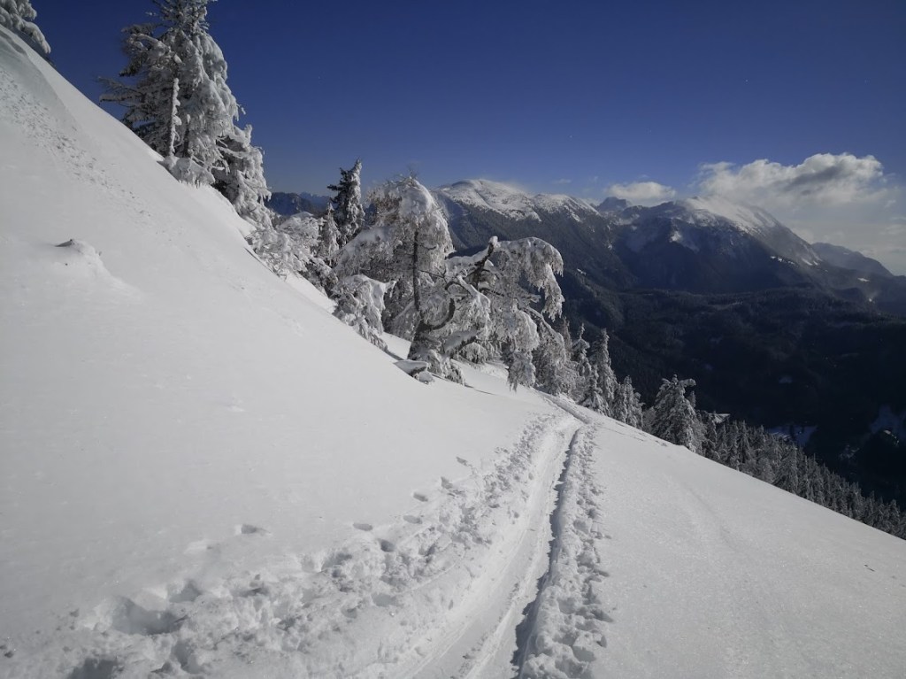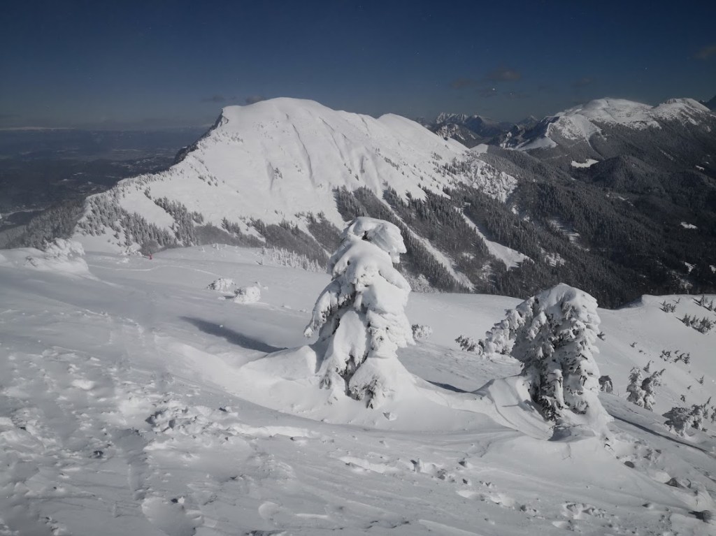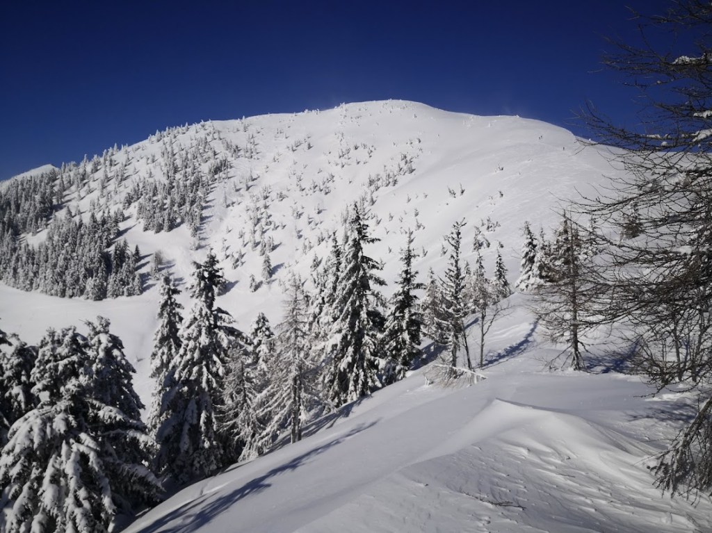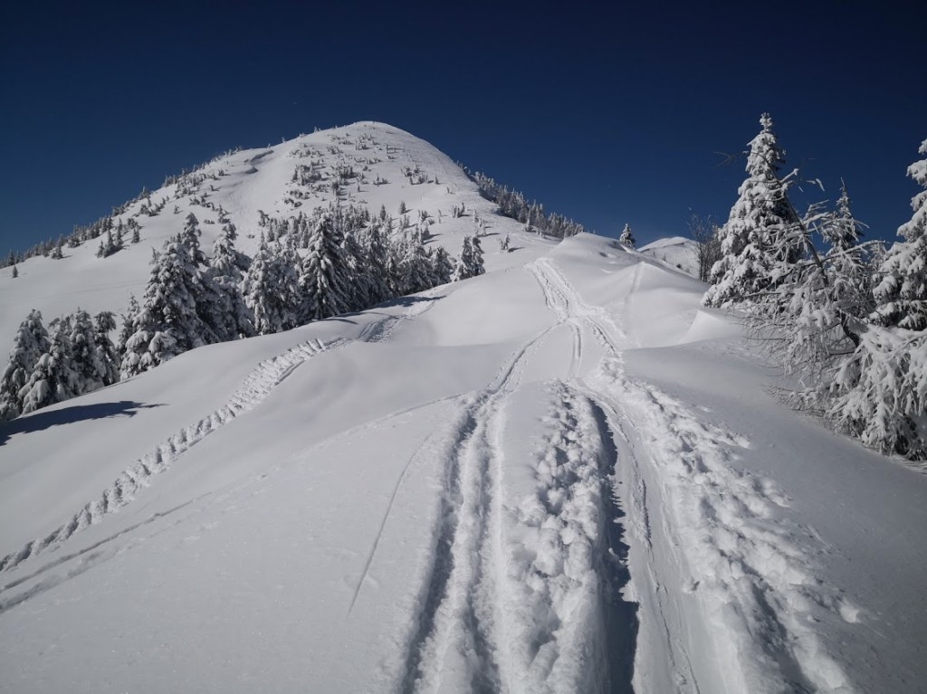 Ker je bil napoved severozahodni veter, sem se odločil za Klek, ker sem upal, da bom vsaj nekaj časa hodil v relativnem zavetrju. Poleg tega je bil najverjetneje to najbolj mrzel dan v letošnji zimi. V sredogorju so bile temperature okrog -15 °C, v visokogorju pa pod – 20 °C, in to brez učinka vetra, ki je še dodatno hladil. Na izhodišču (Planini pod Golico) je snega le še za silo dosti za vzpenjanje s smučmi, za spust vsekakor premalo. Na vrh Kleka (1753 m) sem se povzpel po desni varianti (čez Javorje). Z vrha sem odsmučal po večinoma še nezvoženem pršiču na Jeseniško planino. Nato pa sem se prek sedla Rožca (1587 m) vzpel še na Hruški vrh (1776 m). Ves čas je pihal veter, ki pa je vmes na trenutke tudi pojenjal, da sem se lahko malo nadihal. S Hruškega vrha sem odsmučal nazaj. Baje pa je bil v Avstriji še pršič. Nato pa sem se še enkrat povzpel na vrh Kleka. Druga smuka s Kleka je bila že bistveno slabša, saj je v tem času (dveh urah) zaradi sonca na snegu že nastala rahla skorja. Pod Jeseniško planino pa je samo še za silo vozno. Zadnjih 100 višincev sem šel zato raje peš. Skupaj se je na turi nabralo 18 km in 1850 višincev.