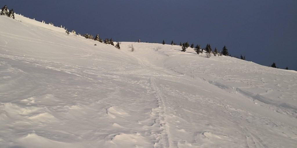 Dan se je že toliko podaljšal, da se popoldne že da kam skočit v hribe. Ponavadi grem na meni bližnjo Zelenico. Vendar, ker je tam senca in mraz, sem tokrat raje zanemaril kakovost smučanja in izbral Struško, ki je bolj izpostavljena sončnim žarkom. In res je bil celoten vzpon prijetno toplo. Na vrh sem prispel ravno ob sončnem zahodu. Smuka po grebenu Struške je bila po ledu, na Belski planini je bil sneg ravno prav zmehčan, spodaj v gozdu pa je bila čofta. Sneg se pospešeno tali in najbrž čez teden dni smuka do avta (na Pristavi) ne bo več mogoča.