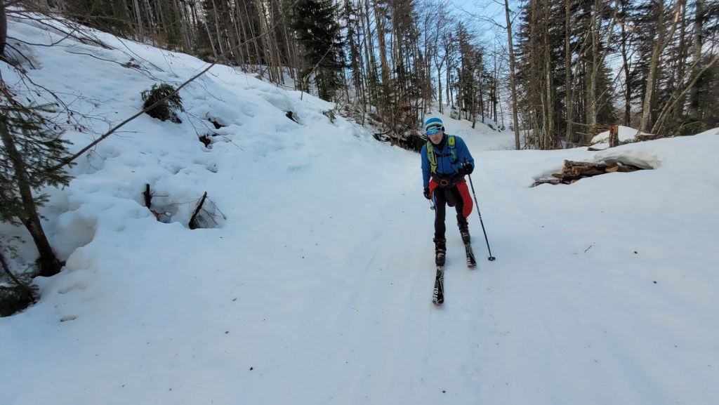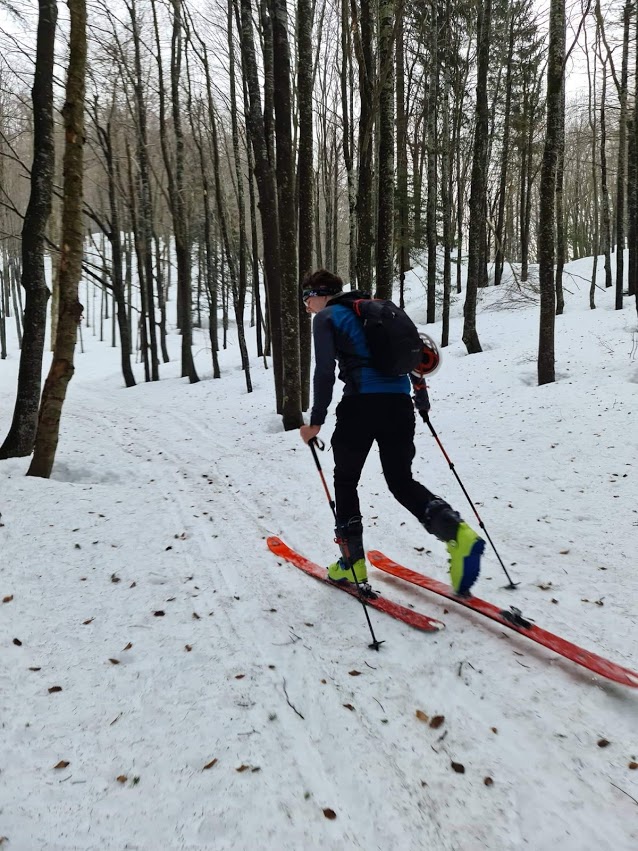 Moja želja je, da bi vsaj enkrat nastopil na turnosmučarski tekmi. Vem, da v primerjavi s tekmovalci nimam možnosti, ker nimam posebne (zelo lahke) opreme za turno smučanje. Vseeno pa bi s pomočjo tekme rad dobil neko primerjavo z njimi. Tokrat sem šel na trening z Marjanom Zupančičem, ki v turnem smučanjem tekmuje že več kot 15 let. Iz Bohinjske Bistrice sva se povzpela na Možic, kar znese 7,5 km z 1200 višinskimi metri vzpona. Jaz sem bil celoten vzpon na rdečih obratih, med tem ko se je Marjan zraven le malce hitreje sprehajal. Praktično cela Slovenija je imela na ta dan kristalno jasno vreme s temperaturami po nižinah okrog 15 °C. Na Možicu in Soriški planini pa je bila megla, mraz, difuza in veter. Ampak to naju ni preveč motilo, saj sva bila na treningu, kjer ustavljanja ni. Ker se v turnem smučanju tekmuje tudi na dol, je bil tudi spust temu primeru vratolomen. Smuka je bila kljub vsemu zelo uživaška. Sploh zgoraj po gozdu je bilo super (edini minus so vejice in iglice na snegu). Na smučišču Kobla pa je ravno še dovolj snega, da se pripelje do dna. Vendar bo tako ostalo le še nekaj naslednjih dni. Za razpeljavo po treningu, pa sem prvič letos obrnil nekaj (deset) kilometrov na kolesu. Dober trneing je bil.