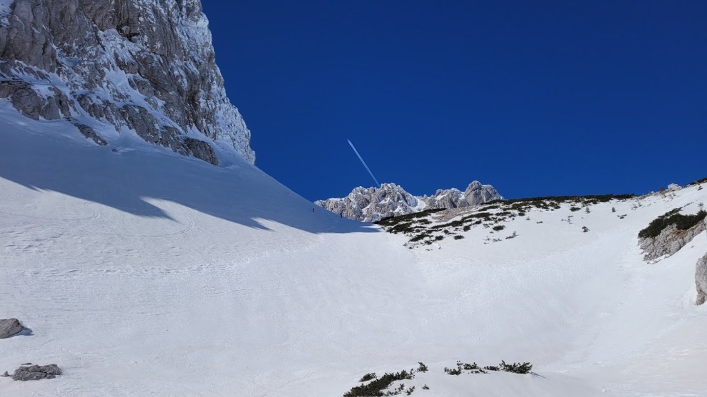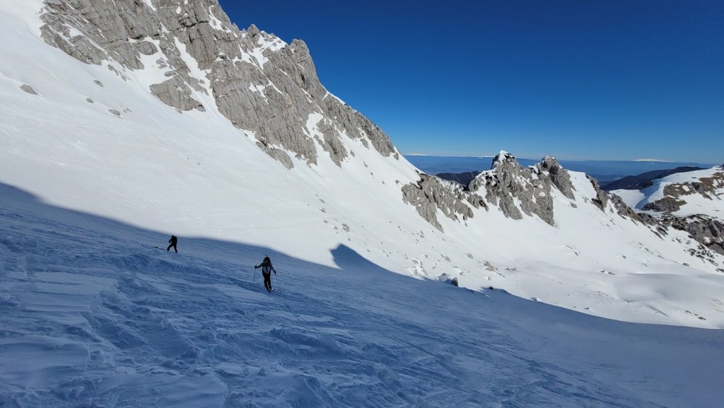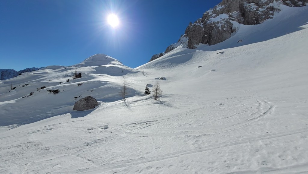 Cesta skozi Završnico je prevozna do konca zadnje planine pod Tinčkovo kočo v Završnici. Nato je na cesti led in mestoma tudi sneg. Hkrati pa je snega premalo snega za vzpon na smučeh. Tud višje se je snežna odeja le počasi debelila. Smuči smo na nahrbtnikih nesli skozi celoten Zagon, vse do spodnje markirane poti, ki pride z Zelenice. Do vrha Stola smo nadaljevali na smučeh s srenači, saj je bil sneg trd. Temperature pa so bile danes v visokogorju cel dan dovolj nizke, da se snežna odeja ni zmehčala niti popoldne. Smučali smo po grabnu med Orličjem in Srednjo pečjo. V zgornjem delu je bil sneg trd, a “grifig”. V spodnjem delu do gozdne meje pa je bil srenjec. Žal pa je v gozdu snega hitro konec – prismučali smo približno do višine 1400 m. Zadnji teden februarja je bil zame po športni plati zelo uspešen, saj sem premagal kar 6600 višinskih metrov, kar je hkrati tudi že tretji zaporedni teden s premaganimi več kot 6000 višinci.