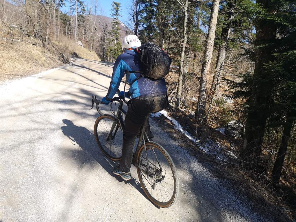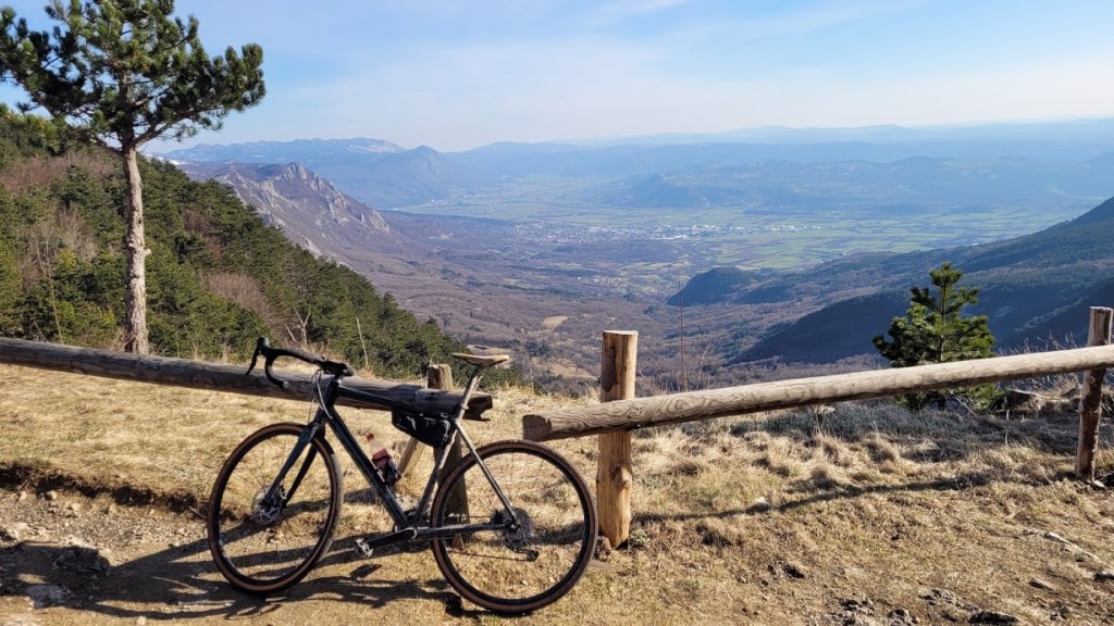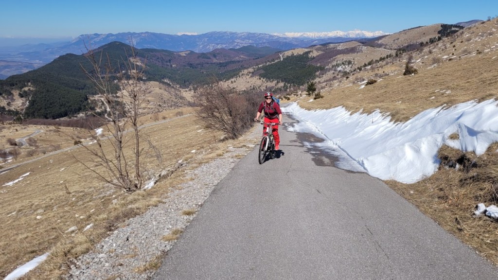 Vedno sem mislil, da je Nanos gora na Primorskem. Vendar uradno sodi v Goriško statistično regijo. Zato je obisk nanj (po trenutnih korona pravilih) dovoljen. S kolesarsko turo sva začela v vasi Podnanos (175 m). Po slikoviti in zelo ovinkasti cesti sva se najprej povzpela na Plešo – najvišji vrh Nanosa (1262 m). Cesta je dolga 16 km in je v večji meri asfaltna, le zadnje 2 km je makadamska. V tem delu je bila cesta tudi popolnoma zasnežena. Gor grede zaradi tega ni bilo težav. Dol grede pa sem sploh jaz moral zelo paziti, da me ni kje na ledu odneslo. Nadaljevala sva prek Abrama (900 m) do vasi Podkraj (798 m). Cesta je na tem delu pretežno makadamska; bila pa je skorajda v celoti zasnežena, kar naju je upočasnjevalo na številnih spustih. Nato sva se spustila v vas Col (627 m). Sabina je imela dovolj in se je prek Vipave spustila nazaj na izhodišče. Sam pa sem nadaljeval še 13 km čez Trnovski gozd do Predmeje. Sledilo je 11 km uživaškega spusta do Ajdovščine. Nazadnje pa sem še 15 km užival v makadamskih cestah med vipavskimi vinogradi nazaj do Podnanosa. Skupaj se je nabralo 82 km in 2100 višincev.