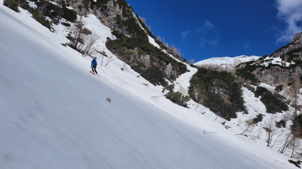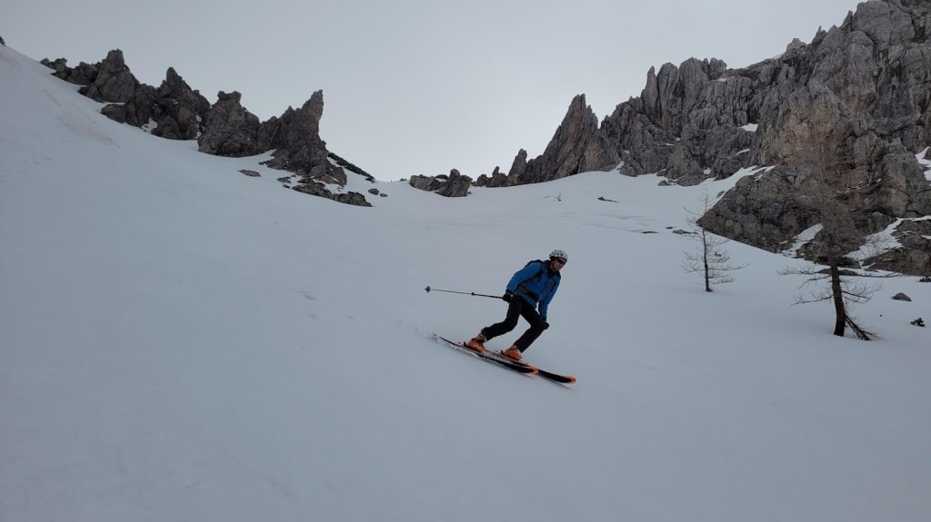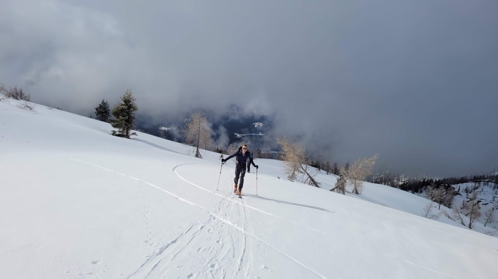 Nabralo se je 19 km in 1900 višincev. To je bil moj 92. turni smuk v tej zimi. Cilj je seveda, da jih zberem vsaj okroglih 100 in pri tem premagam vsaj sto tisoč višinskih metrov. Zaenkrat sem na smučeh zbral 96.000 v.m. in 1100 km.