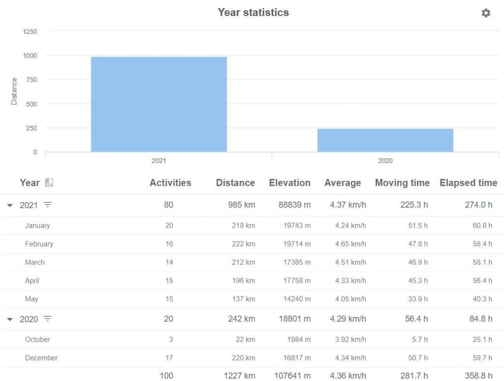 Nekaj statistike stotih turnih smukov (vir: Statshunters.com)