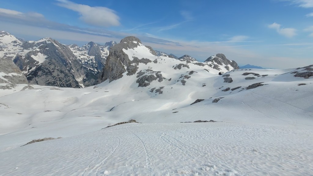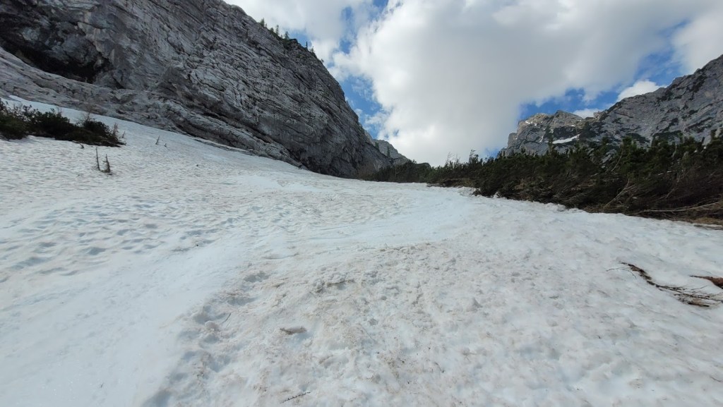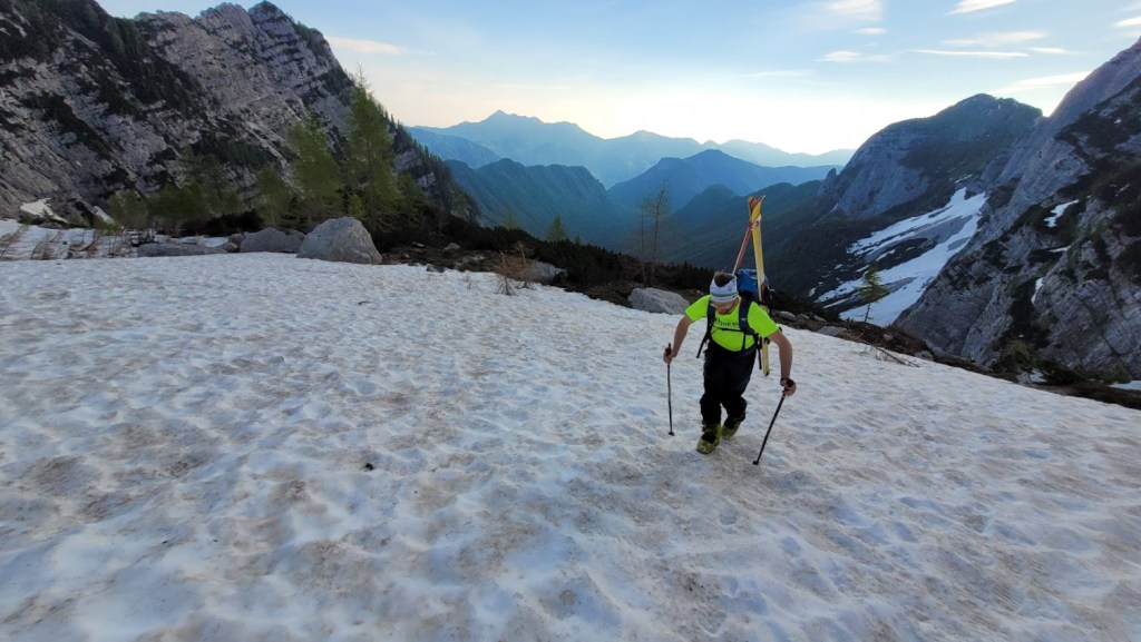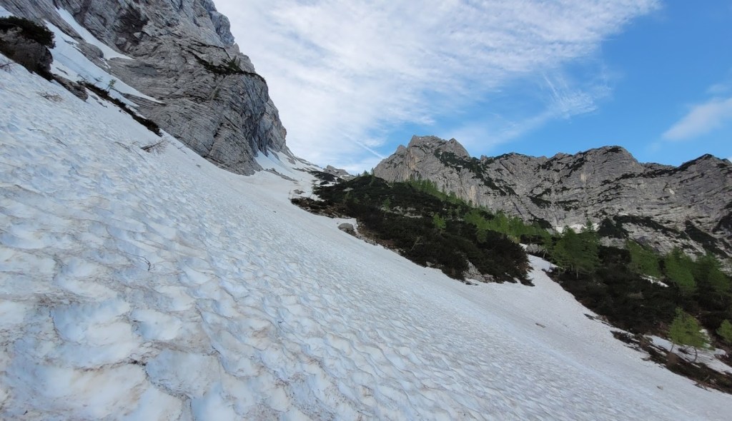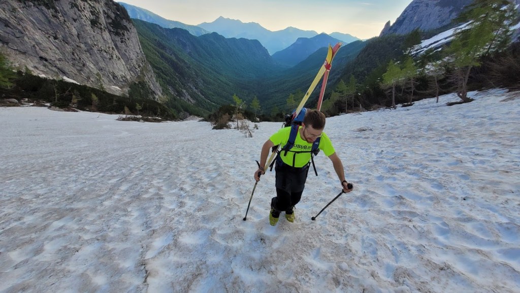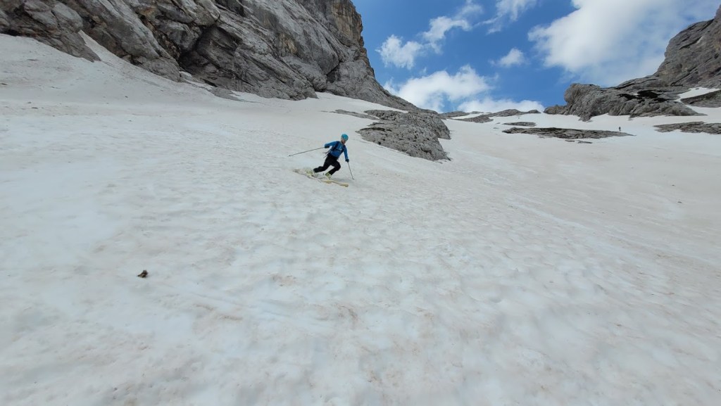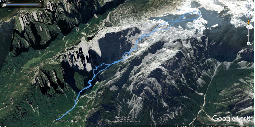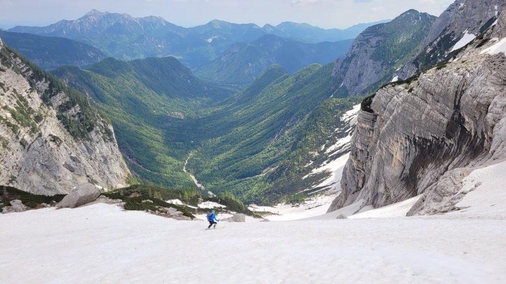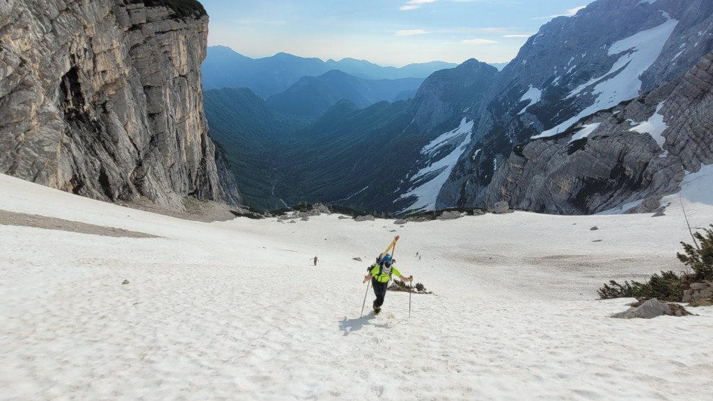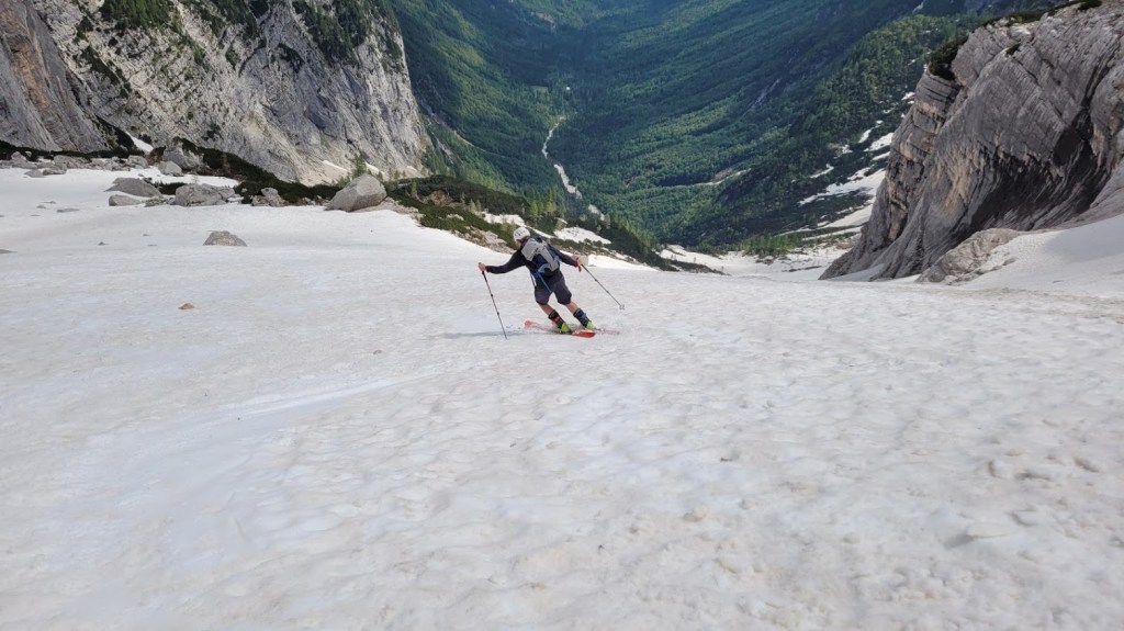 V Turkovem Rovtu v Kotu sva začela hodit malo čez 6. uro. Do snega, ki se začne pri studencu (višina 1330 m) sva potrebovala slabih 45 min. Tu sva se iz superg preobula v pancarje in v njih nadaljevala vse do začetka odcepa poti za Rjavino. Nato sva se na smučeh v dolgi prečnici nad Peklom in mimo Staničeve koče vzpela od Kredarice. Snega je tod še zares veliko. Od koče sva se vzpela na vrh Kredarico in čez njo odsmučala do Staničeve koče. Sneg je bil tu že ob 10. uri zjutraj gnil. Pod Staničevo kočo je sneg zaradi koprenaste oblačnosti ostal razmeroma trd, kar je omogočalo za junij vrhunsko smuko. Zaenkrat se prismuča še čisto do studenca. Edina izjema je na koncu Pekla, kjer je 10 m dolga prekinitev. Prav tako je na snegu zelo malo kamnov. Zaradi velike količine snega bo smuka v Kot možna še kakšen teden dni. Vendar se na značilnih pragovih že delajo (zelo globoke) krajne zevi, ki predstavljajo potencialno nevarnost. 5 ur gor-dol z daljšo pavzo na Kredarici, 105. turni smuk v tej zimi. S tem sem bil to zimo na Kredarici z vseh treh dolin: Krme, Kota in Vrat (Za Cmirom).
