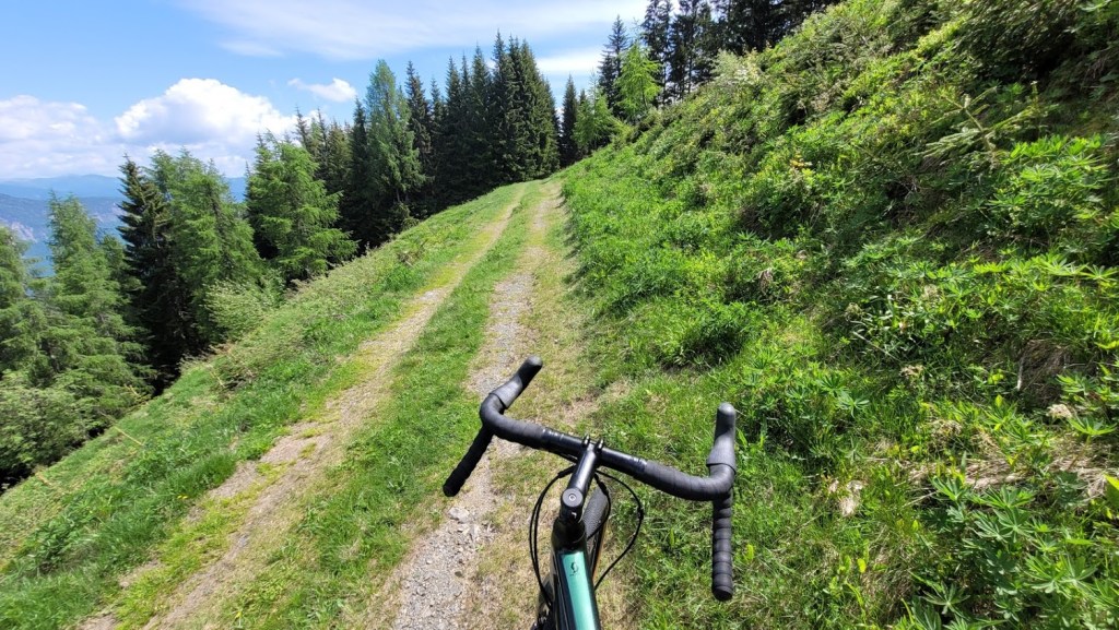 Cilj ture je bilo v kolesarski krog povezati Tromejo in Trupejevo poldne. S kolesarjenjem sem začel v Kranjski Gori. Kolesarski stezi sem sledil do Rateč. Nato pa sem se po makadamski cesti vzpel na Peč nad Ratečami (Tromejo). Klanec je dolg 7 km s 650 višinci in je v prvi polovici kar pošteno strm. V drugem delu se strmina na srečo nekoliko položi. Cesta je zelo dobra in brez težav prevozna tudi za osebna vozila. Na vrhu Tromeje sploh še nikoli prej nisem bil. Zato sem bil toliko bolj navdušen nad razgledom. S Tromeje sem se spustil na prelaz Korensko sedlo. Gre za zelo lepo makadamsko cesto, ki pa je večinoma zelo strma. Zato sem bil vesel, da sem jo vozil navzdol. S Korenskega sedla sem se po glavni cesti spustil še slab kilometer proti Kranjski Gori. Nato pa sem zavil levo na makadamsko cesto proti Železnici. Ta cesta je dolga kar 11 km, a se v tem času vzpne zgolj za 500 višincev. Zato je klanec (in vmesni spusti) ves čas zelo blag. Prav tako je prevozna za osebna vozila. Meni najpomembneje pa je, da se celo pot odpirajo res čudoviti razgledi na Julijce. V Železnici je dobre ceste konec in se začne (vse slabši) kolovoz, ki pelje do lovske koče. Žal je bilo že kmalu neprevozno zaradi podrtih dreves. Tako sem od tu dalje rinil in nesel kolo vse do vrha Trupejevega poldneva. Nagrada za napor je bil čudovit razgled na vrhu gore. Za spust v dolino sem imel dve možnosti: po dolini potoka Jerman ali pa čez planino Grajščico. Izbral sem drugo možnost, ker pot pripelje na lepšo cesto. Pol ure sem kolo rinil čez korenine, skale in sneg do Grajščice. Pot je res lepa za tek oz. hojo, za kolo (sploh gravel) pa ni primerna. Od planine dalje pa sem se ves čas spuščal na kolesu. V prvem kilometru je spust na meji voznosti z gravelom, nato sledi strm kolovoz, ki po dveh kilometrih pripelje na lepo makadamsko cesto – po kateri sem se z užitkom hitro spustil do vasi Srednji vrh. Sledil je še spust po v Gozd Martuljek in vožnja po kolesarski stezi nazaj do Kranjske Gore. Nabralo se je 55 km in 1900 višincev. Zaradi zahtevnosti trase pa sem za turo potreboval kar 7 ur.