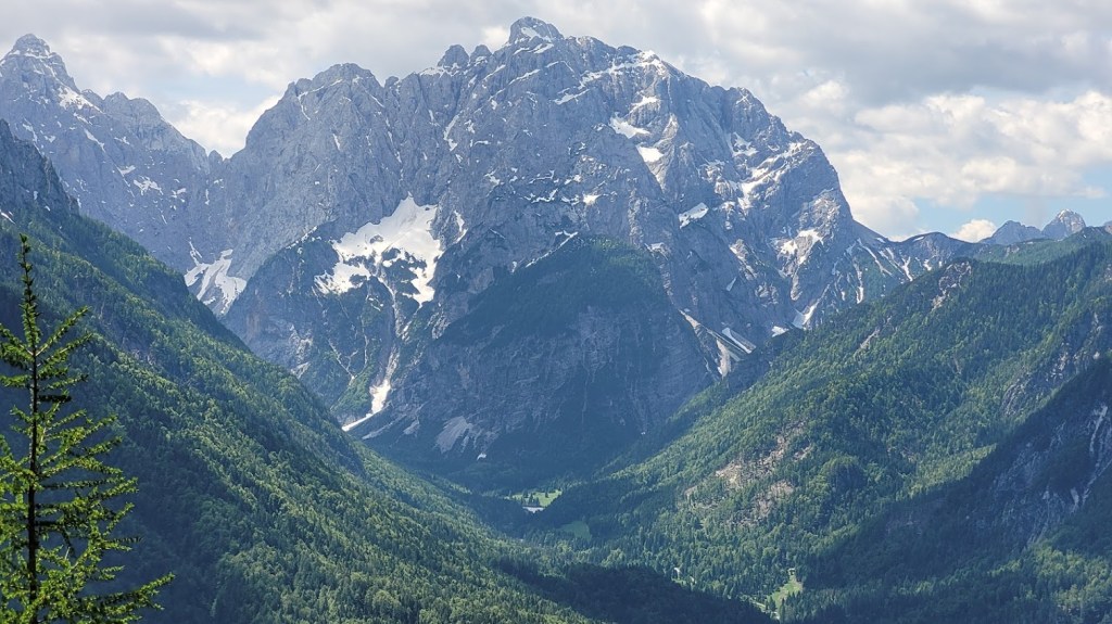 Pogled na Martuljške gore, kjer smo smučali en teden dni nazaj