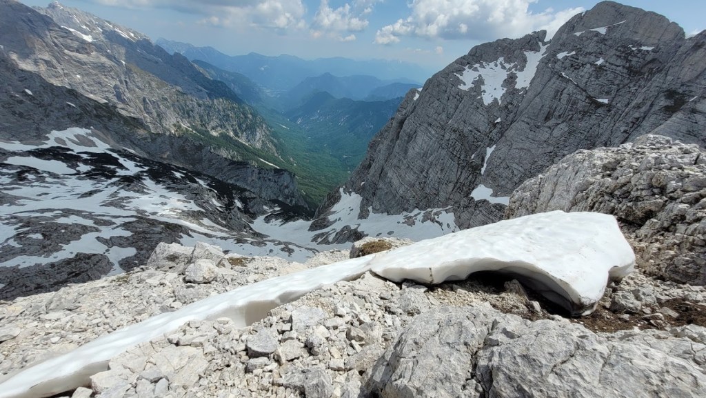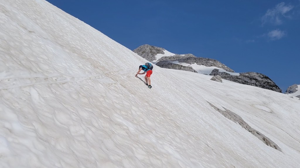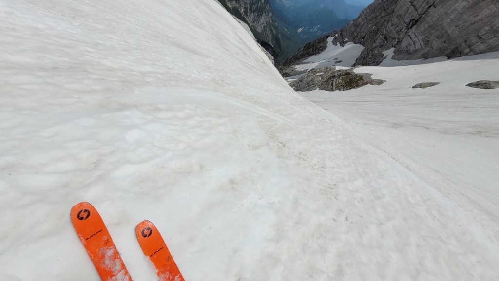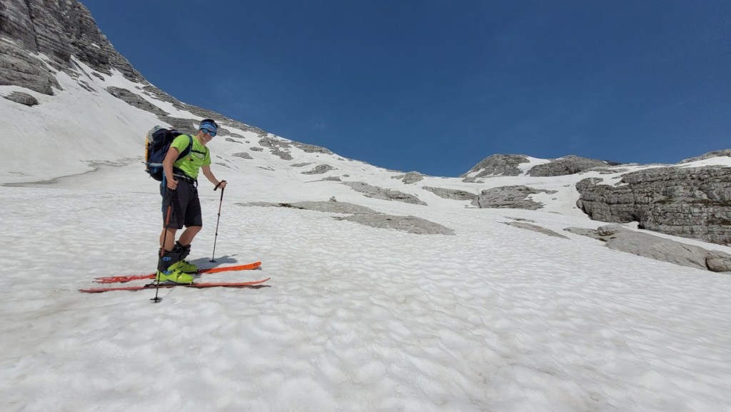 Končno je nastopilo poletje – zame, ki imam zelo rad vročino – najljubši letni čas. Rad pa imam tudi turno smučanje. Vročina in smučanje pa se običajno med seboj izključujeta. Zaradi letošnje hude zime pa se je v gorah nabrala tako velika zaloga snega, da je smuka še vedno možna. S kolegico sem se danes odpravil na smuko na Križ.