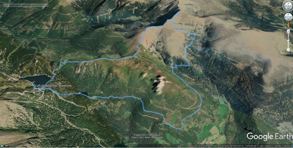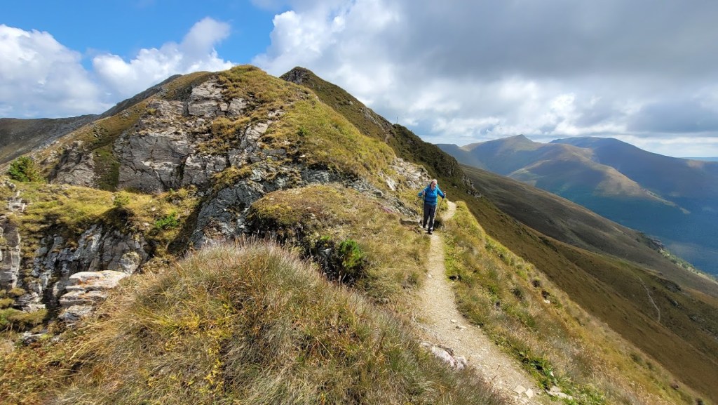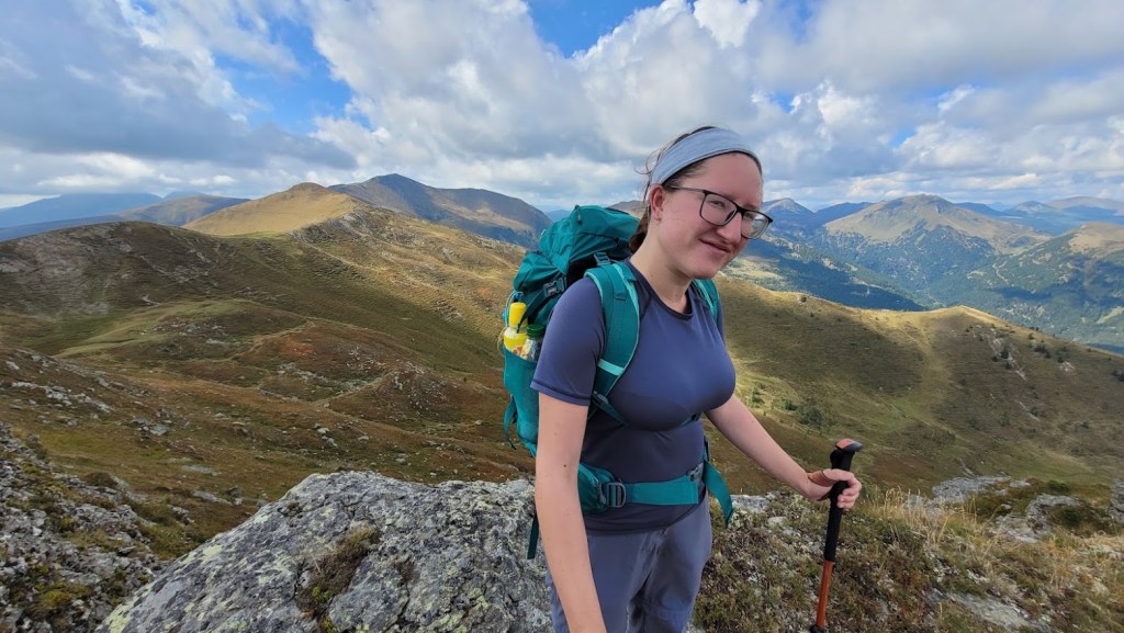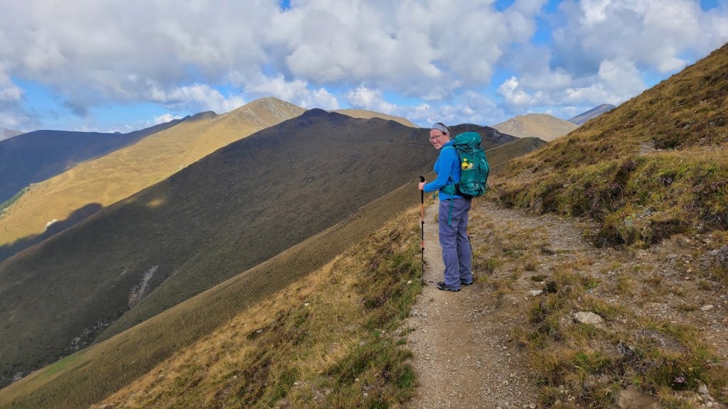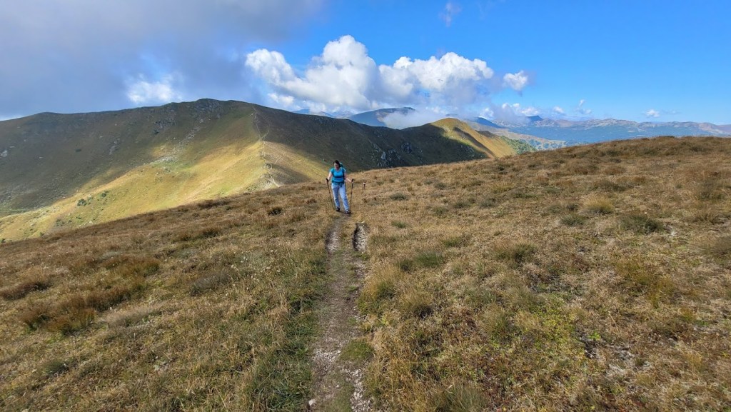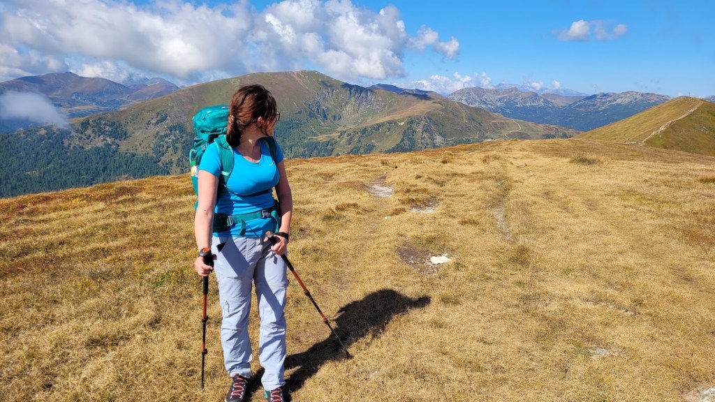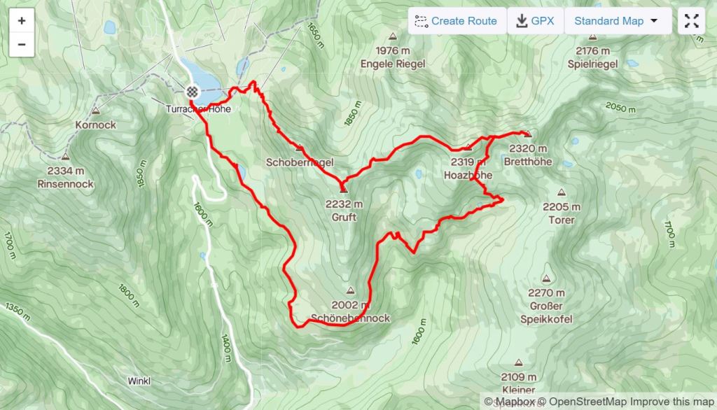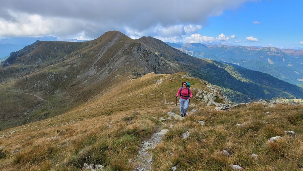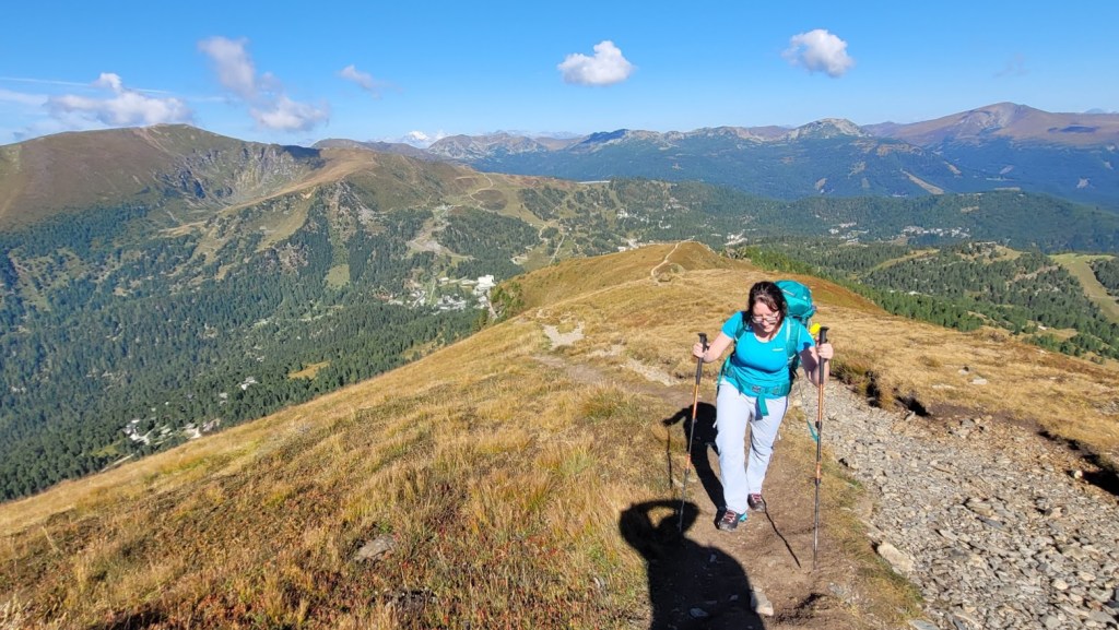 Nockberge so pogorje v Krških Alpah, ki je znano po čudovitih travnatih “kupčkastih” hribih. Pobočja teh gora pozimi ponujajo skorajda neomejeno možnosti za lovljenje pršiča. Zato sem bil doslej v Nockbergih večinoma samo v mrzlem letnem času. Tokrat pa sva se s punco odpravila raziskovat te gore poleti. Za prvi dan sva si za izhodišče izbrala prelaz Turracher Höhe (1795 m). Najprej sva se po smučišču povzpela na Schoberriegel (2208 m). Nato sva dalj časa sledila gorskemu slemenu sledila prek vrhov Gruft (2230 m), Kaser Höhe (2318 m), Hoazhöhe (2319 m) na goro Brethöhe (2320 m). Pot je ves čas čudovita in zelo razgledna. Zaradi mahu in borovničevja pa je pot neverjetno mehka. Zato ni presenetljivo, da sva srečala planince, ki so hodili bosi. Tudi jaz bi, če bi bilo kakšno stopinjo toplejše vreme. Nazaj na izhodišče sva se vrnila prek planin Zgartenalm in Hochkaser. Prehodila sva 19 km in se vzpela samo za 1100 višincev, kar pomeni da sva res večinoma hodila samo po ravnem.