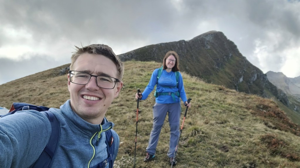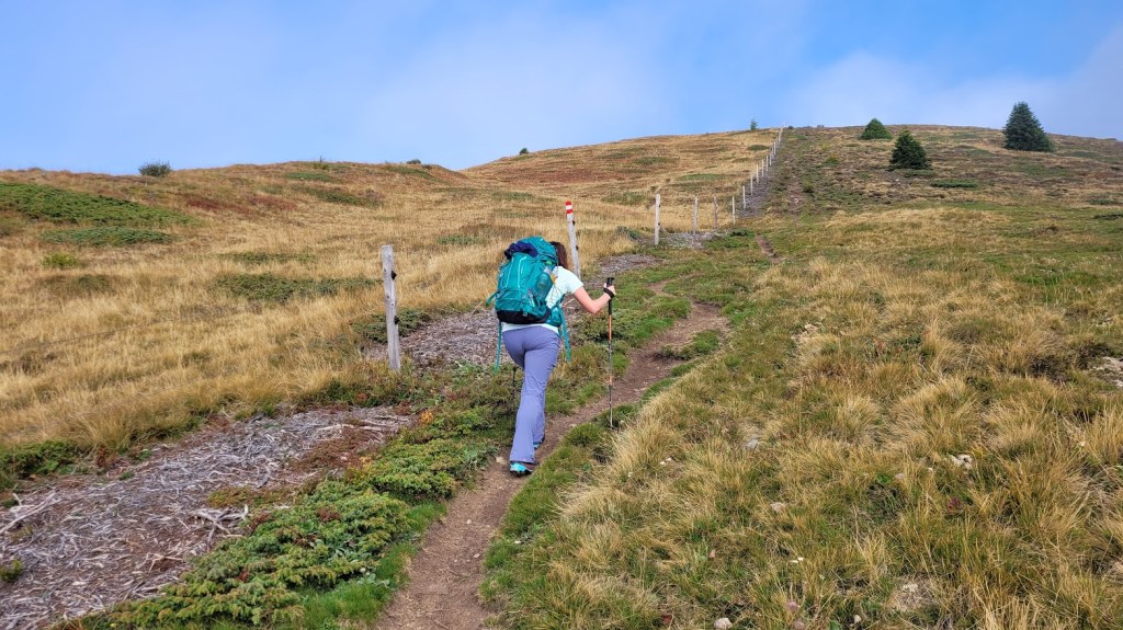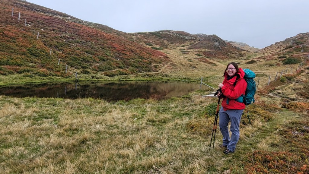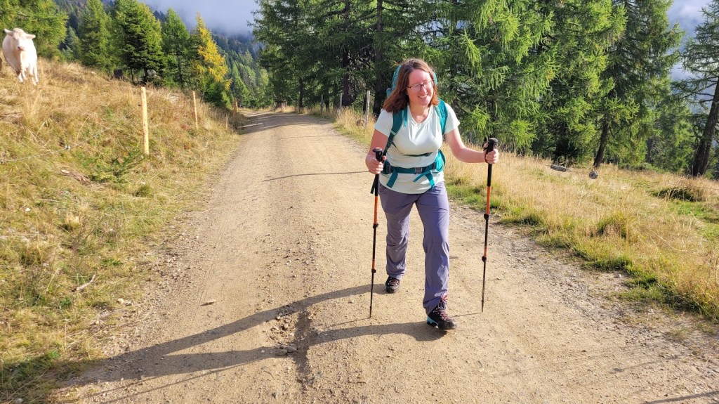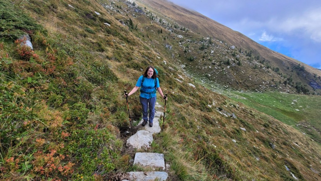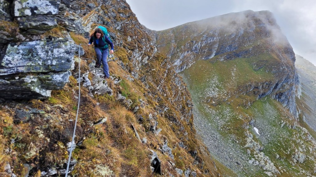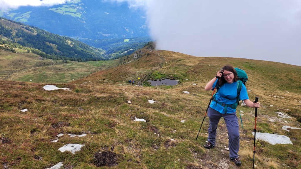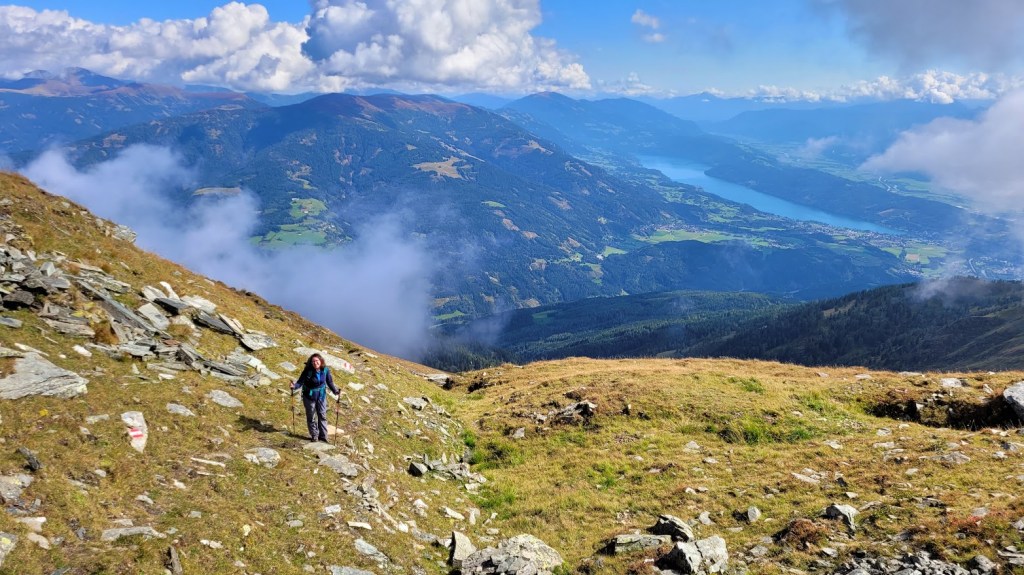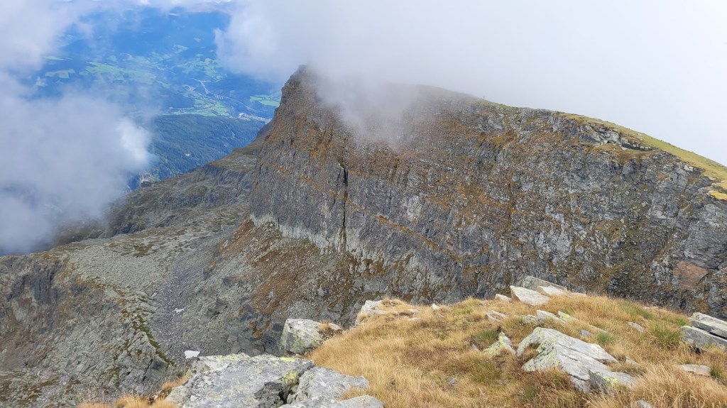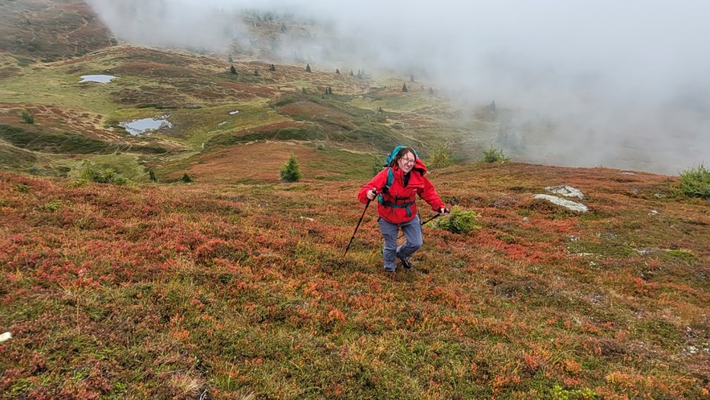 Končno spet za vikend “na lepše” v Avstrijo v hribe. V soboto sva si za cilj izbrala Gmeineck, 2592 m visoko goro na jugovzhodnem delu pogorja Ankogelgruppe, ki sem jo pozimi že smučal. Gore v poletno-jesenski preobleki, pa še nisem obiskal. Za izhodišče sva izbrala vas Neushitz (1150 m) nad Gmündom. Tik nad vasjo je zapornica, kjer je treba plačati 6 € cestnine za (makadamsko) gorsko cesto do koče Bergfriedhütte (1775 m). Midva se nisva želela peljati po cesti, ampak sva cestnino vseeno plačala, ker pred zapornico nisva našla parkirnega prostora. Po bližnjicah in kolovozih sva se tako peš odpravila do omenjene koče. Nato pa naprej po običajni markirani poti do vrha Gmeinecka. Žal pretiranih razgledov zaradi megle nisva bila deležna. Z vrha gore sva sestopila po poti čez Stoder (2433 m). Do Stodra vodi čudovita grebenska zavarovana pot. Vmes se je vreme tudi toliko izboljšalo, da sva končno lahko uživala v razgledih. Tudi gorski travniki so se odeli v značilne rdeče barve jeseni.