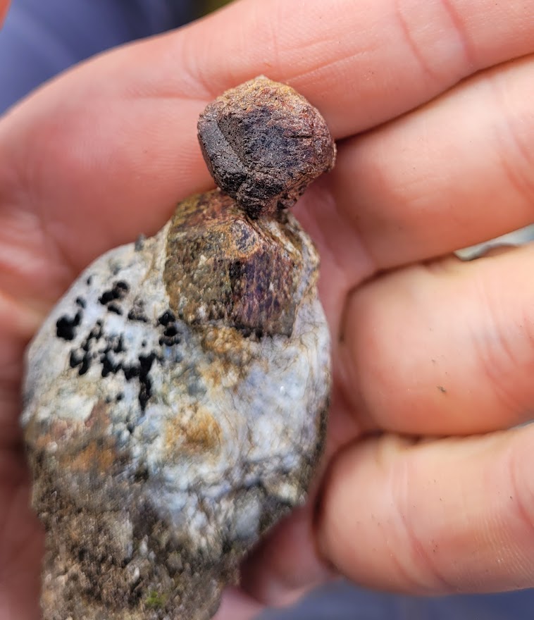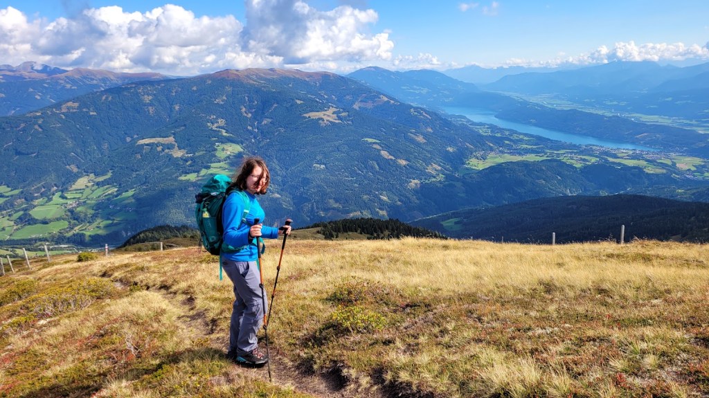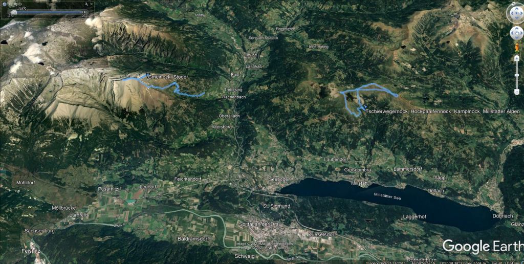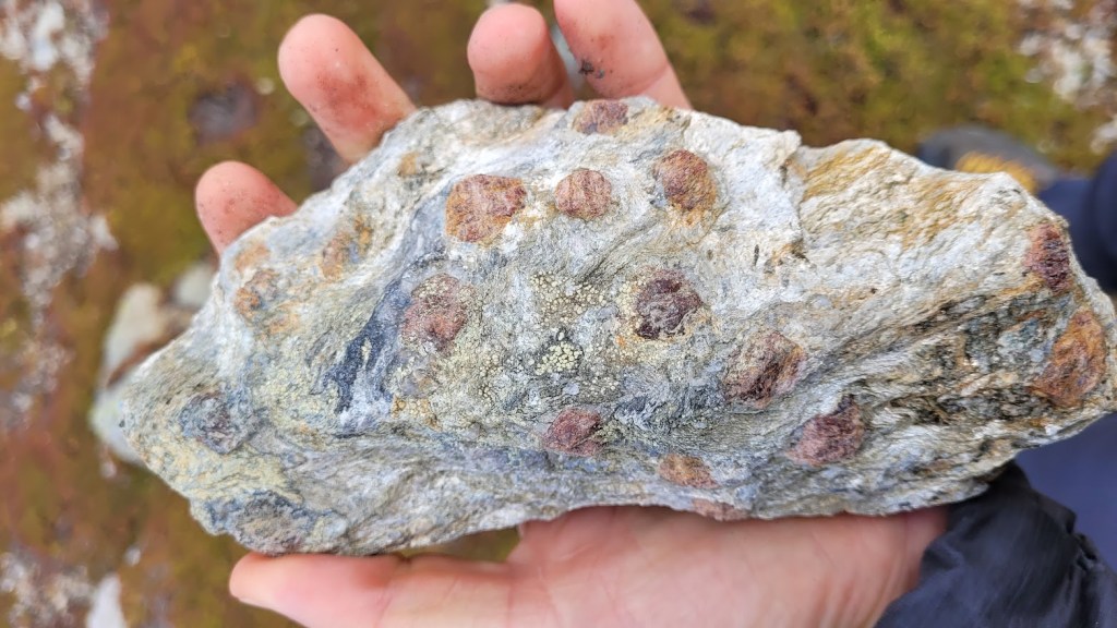 Po nočitvi v penzionu v Gmündu sva se v nedeljo zaradi slabšega vremena odpravila v pogorje Milštatskih Alp v Nockbergih. Iz vasi Millstatt sva se po gorski cesti (8 € cestnine) pripeljala do koče Schwaigerhütte (1623 m). Nato pa sva se obredla venec vrhov: Tschierweger Nock (2010 m), Hochpalfennock (2099 m), Kamplnock (2101 m) in Millstätter Alpen (2091 m), po katerem celotno pogorje nosi ime. Zaradi megle spet nisva mogla pretirano uživati v razgledih. Je bilo pa zato toliko bolj zanimivo gledati pod noge, saj je na tem območju mogoče najti zelo veliko število granatov različice almandin. Granati so minerali – poldragi kamni, ki nastanejo v visoko metamorfnih kamninah pri zelo visokih tlakih. Ker je granat zelo trd mineral in se pojavlja v kombinaciji s sljudo, ki je bistveno mehkejša, granat v procesu preperevanja izpada iz kamnine. Zato je tod granata toliko, da dobesedno leži kot pesek, povsod po tleh.
