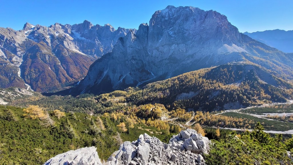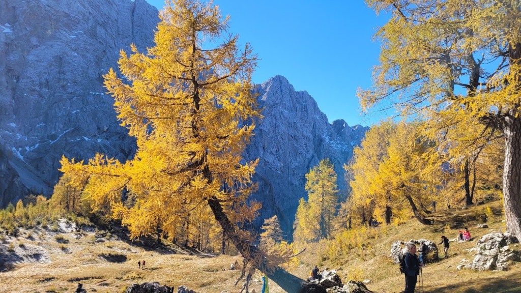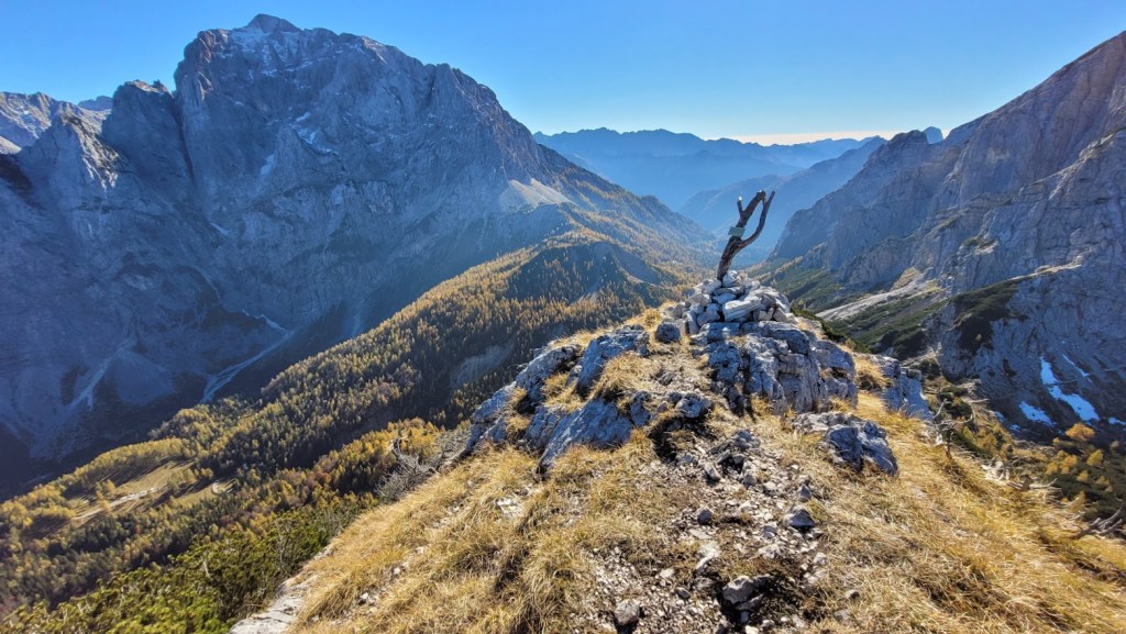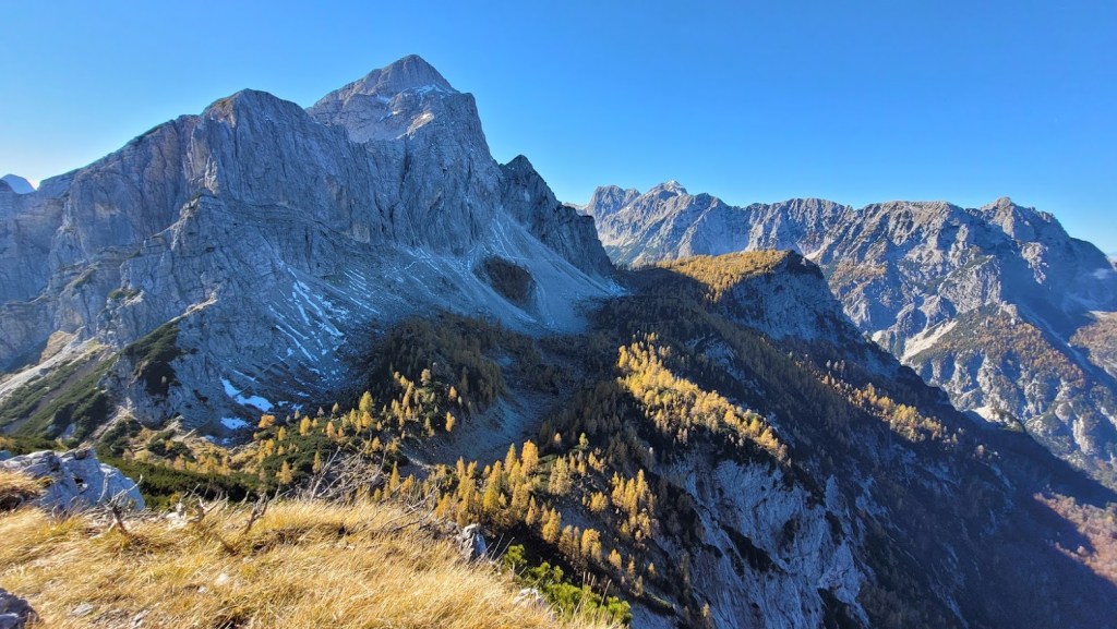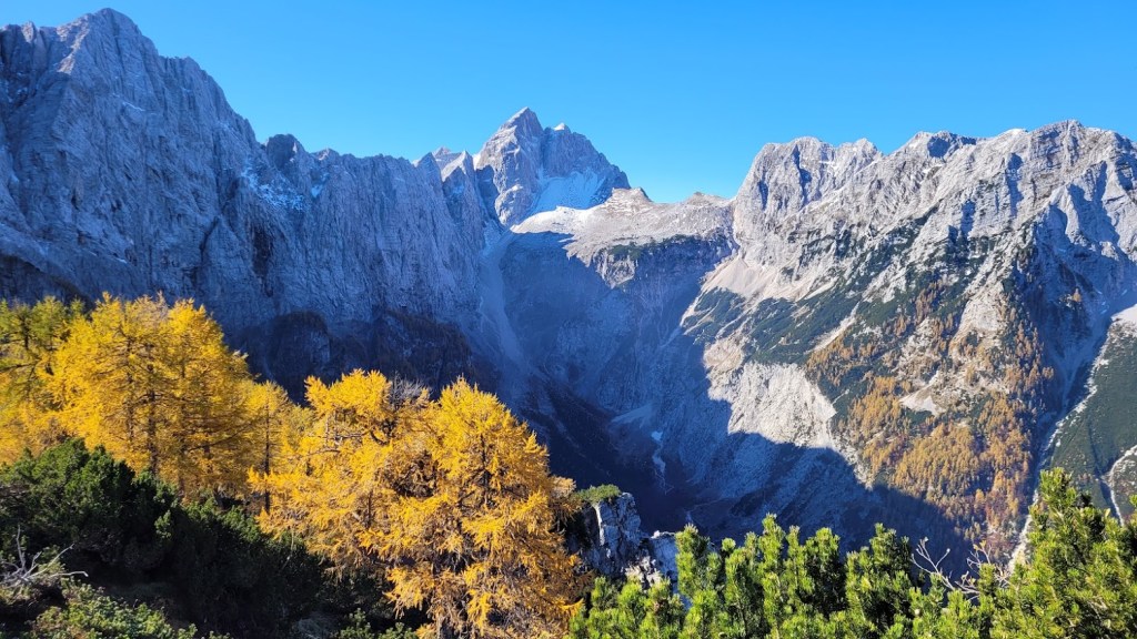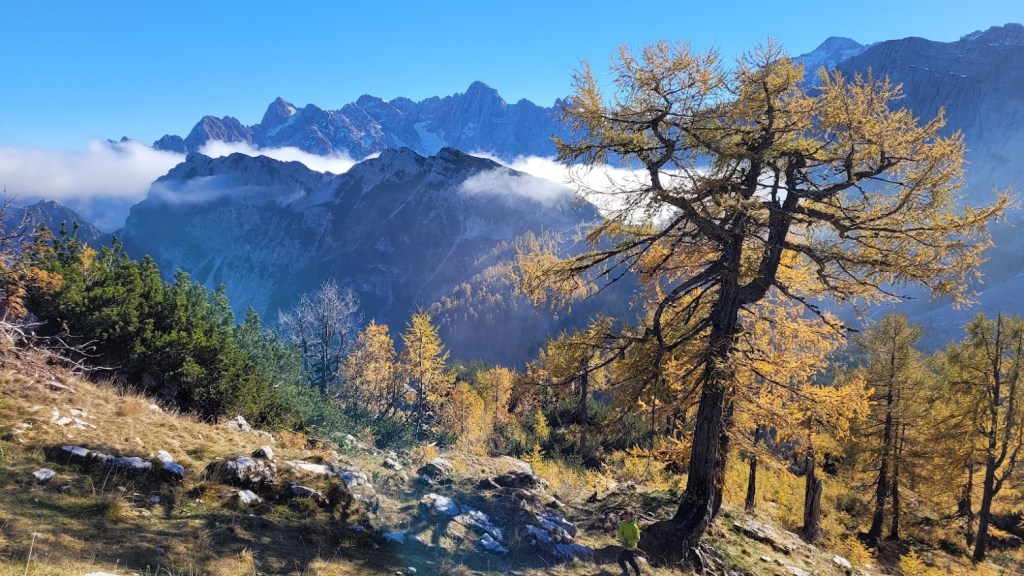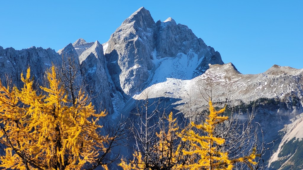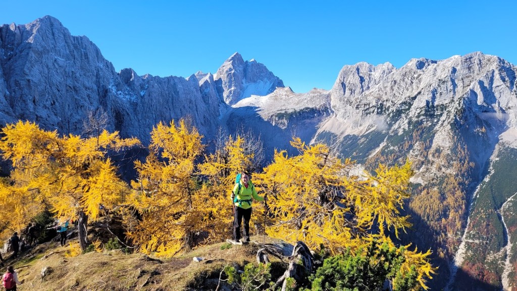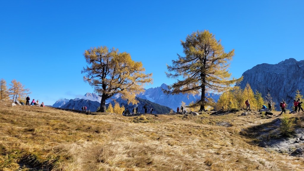 Ne hodim namenoma v gnečo v hribe. Ampak, ker sem prebolel virozo (na srečo ne korono) drugega kot kratkega sprehoda na Slemenova špico niti nisem bil sposoben. Gneča na poti je bila taka, da smo od Vršiča do nekdanjih jezerc pod Slemenov špico ves čas hodili v koloni. Na srečo so vsaj macesni izpolnili pričakovanja. Nazaj grede sem skočil še na Prednje Robičje, kjer ni bilo nikogar. Razgled pa je skorajda enako lep kot na Slemenovi špici. Sicer pa za izognitev gneče priporočam, da se na to turo podate s Planice po poti čez Črne vode.