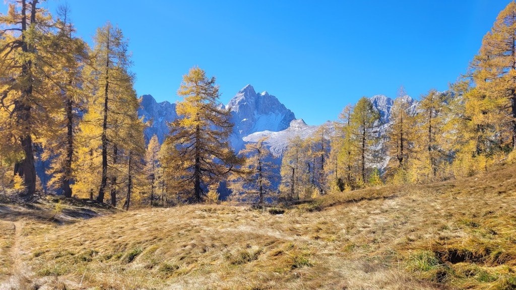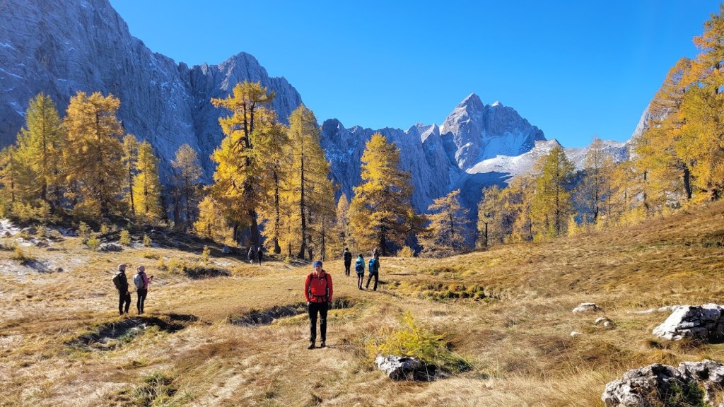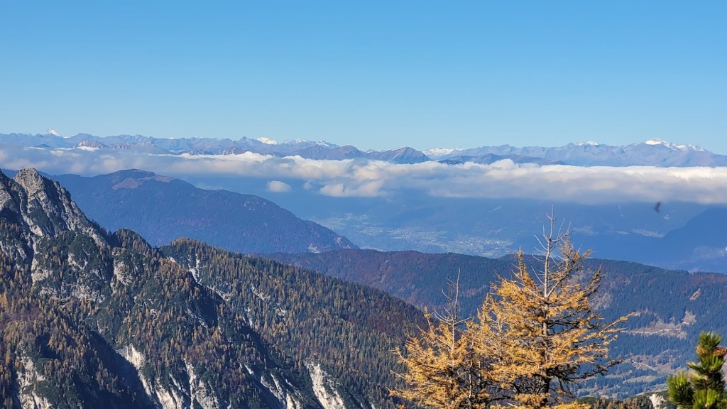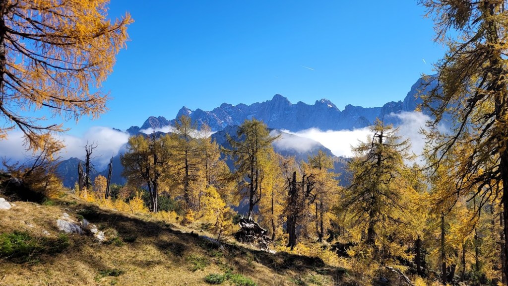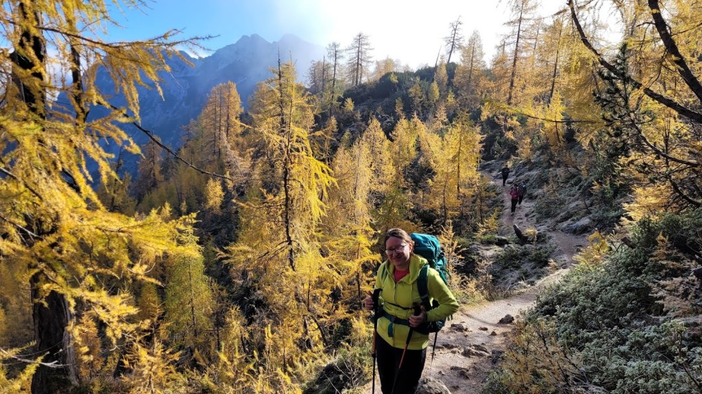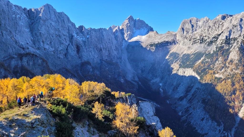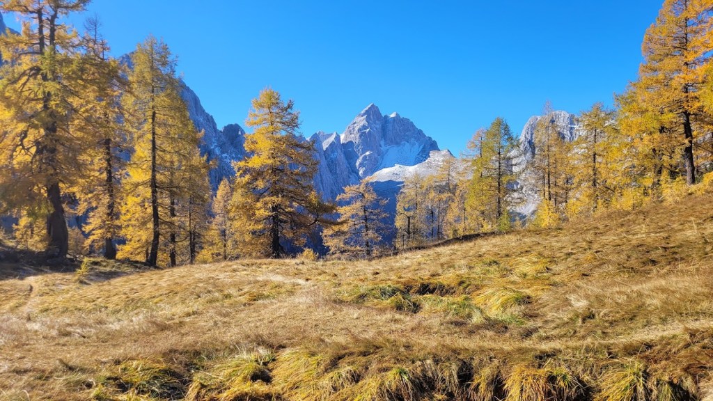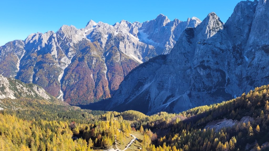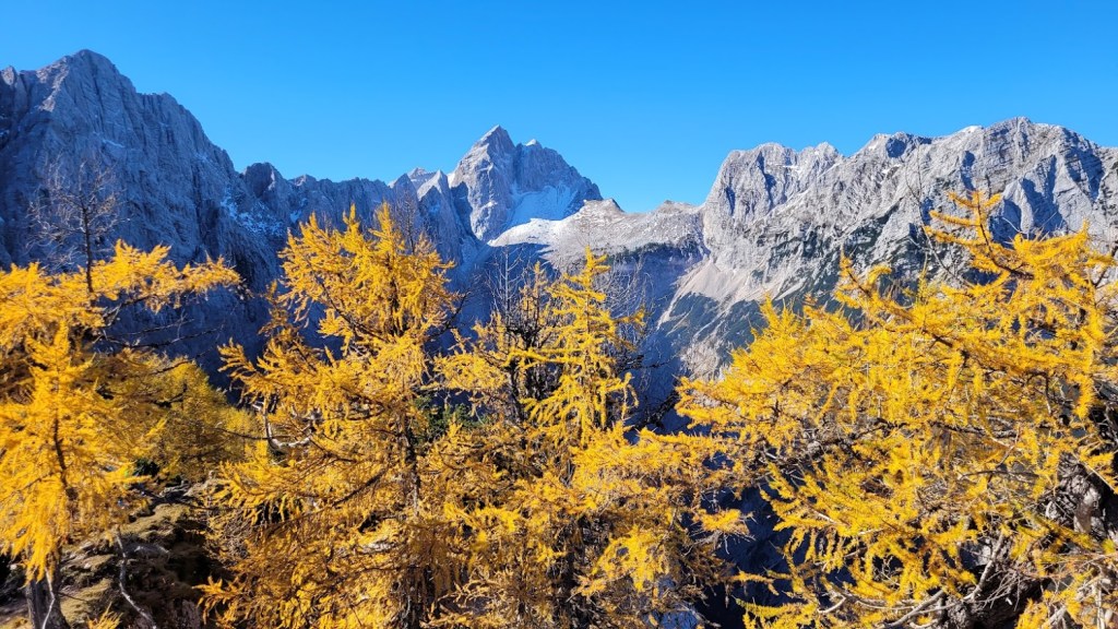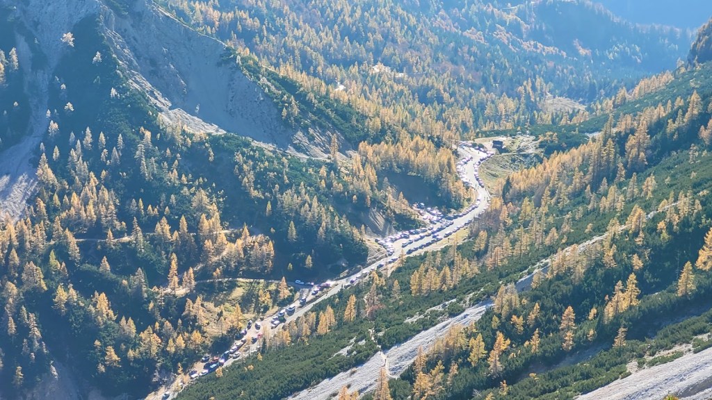 Ne hodim namenoma v gnečo v hribe. Ampak, ker sem prebolel virozo (na srečo ne korono) drugega kot kratkega sprehoda na Slemenova špico niti nisem bil sposoben. Gneča na poti je bila taka, da smo od Vršiča do nekdanjih jezerc pod Slemenov špico ves čas hodili v koloni. Na srečo so vsaj macesni izpolnili pričakovanja. Nazaj grede sem skočil še na Prednje Robičje, kjer ni bilo nikogar. Razgled pa je skorajda enako lep kot na Slemenovi špici. Sicer pa za izognitev gneče priporočam, da se na to turo podate s Planice po poti čez Črne vode.