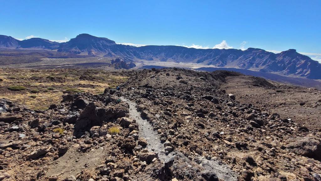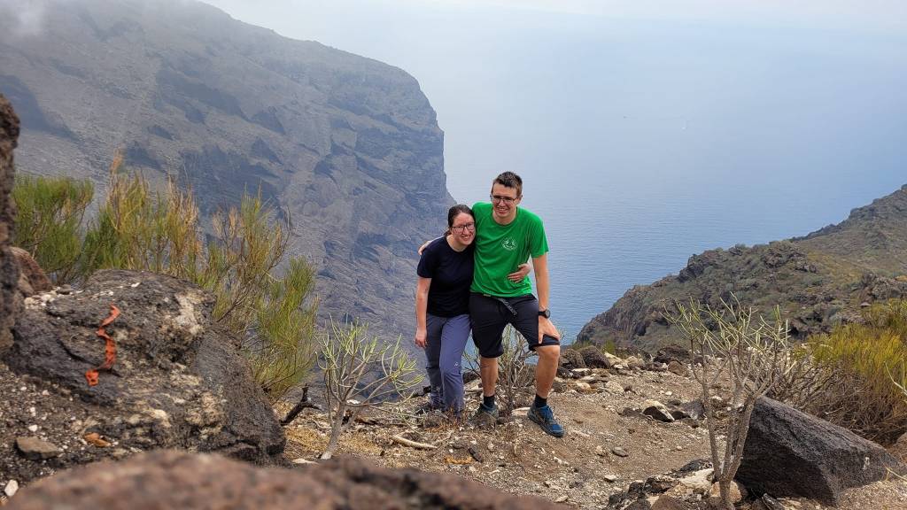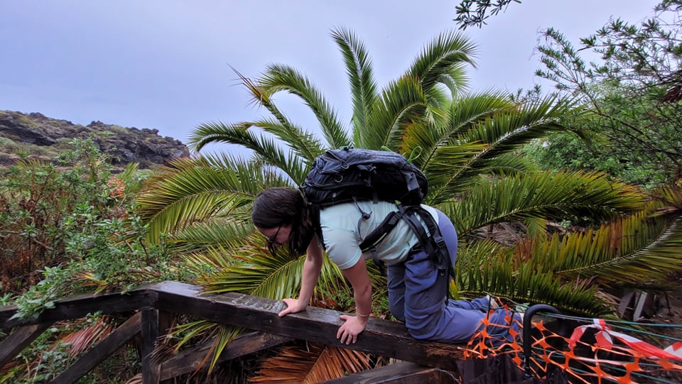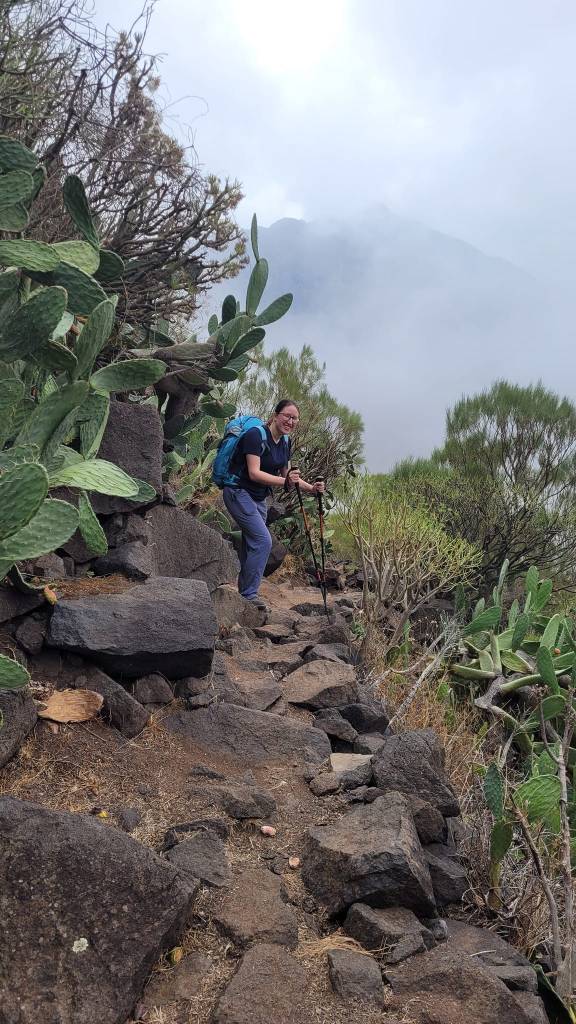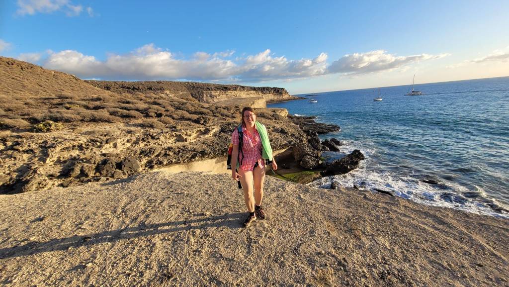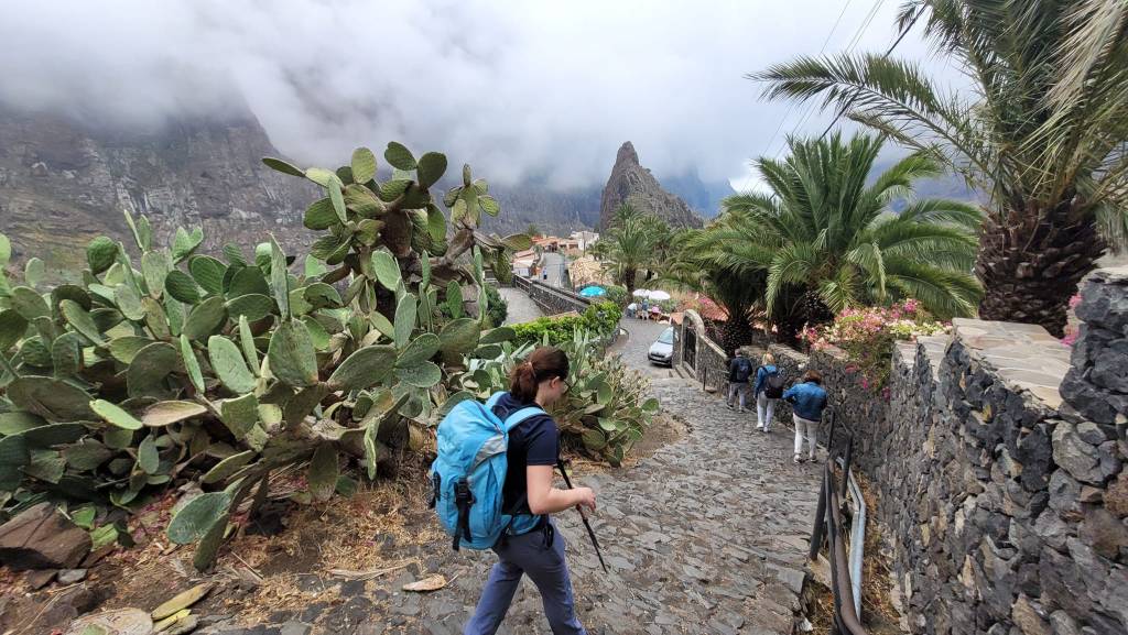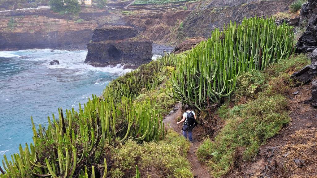 Prvi dan je bil najin cilj, da se od znane vasice Masca spustiva po poti do plaže pod njo. Vendar je pot zaprta. Našla sva obvoz, vendar naju je lokalni ranger spodil nazaj. Zato sva šla na drug trail: in sicer iz miradorja (razgledišča) Cruz de Hilda čez greben gore Pico Yeje. Pot je zelo slikovita in samotna. Najprej poteka po ozkem grebenu, nato pa se ošiljenim hribom izogne po desni strani. Žal pa se kar naenkrat zaključi 300 višincev nad zalivom Masca. Ker so povsod okoli klifi in strme stene ni druge možnosti kot povratek (nazaj navzgor) po isti poti.