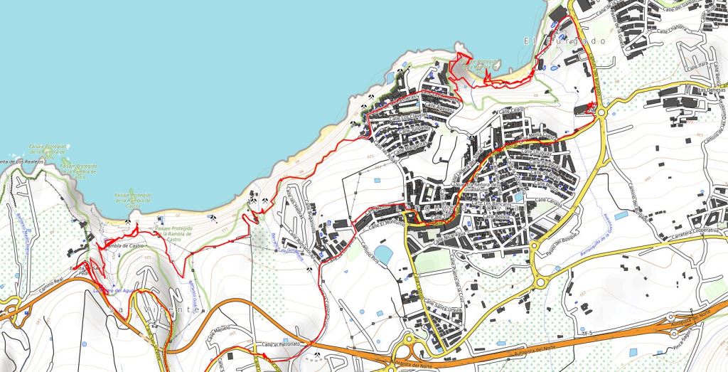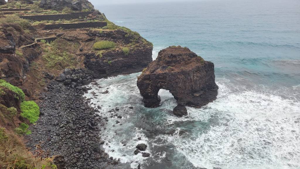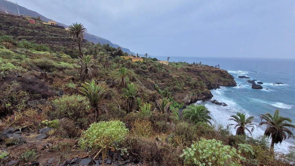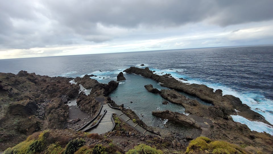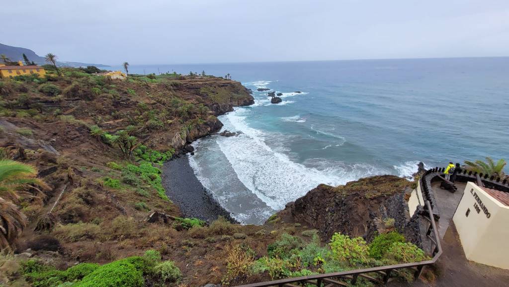 Naslednji dan sva imela obupno slabo vreme. Zato sva se na pot odpravila kar od najinega hotela v kraju Los Realeju. In sicer sva šla po poti med Playo de los Roques in Mirradorjem San Pedro. Znamenitost te poti so strmi klifi, plaže in naravno okno. Ker je močno padal dež pa so marsikje čez stene tekli slapovi. Dejansko je bila pot čez Playo de Los Roques v tem vremenu kar precej nevarna, saj sva bila oblegana z nevarnostjo z dveh strani: s strani morja z zelo visokimi valovi, na drugi strani pa so se klifov krušile skale. Pogojno varno je bilo samo nekje vmes. Sicer pa je to zelo lepa pot, ki jo priporočam. Žal je zaradi valov pod klifi povsod prenevarno za kopanje. Sva se pa popoldne zapeljala do rtov Charco del Viento in Charco De La Laja, kjer so veliki naravni bazeni do katerih visoki valovi ne pridejo. Kljub dežju je imelo morje prijetnih 22 stopinj.