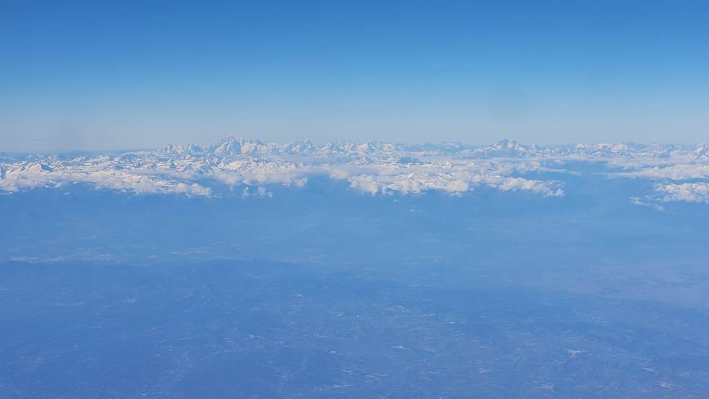 Na Tenerife sva letela z letališča v Trevisu. Med 4 ure in 15 min trajajočim letom sva imela čudovit razgled na zasnežene Alpe: med drugim lepo se je videlo Mont Blanc in Monte Roso. Ker sva oba (trikrat) cepljenja, z izjemo duhamornega izpolnjevanja obrazcev za vstop v Italijo in nato Španijo, nisva na poti imela nobenih težav.