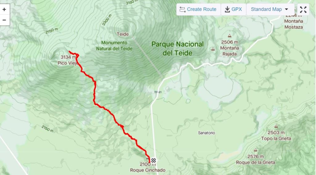Četrti dan sva se odpeljala v kaldero Las Canadas in opravila vzpon na vulkan Pico Viejo (3135 m). Petra vrha žal ni dosegla, ker je imela težave z višino. Treba je upoštevati, da sva se v le nekaj urah dvignila z morja na višino prek 3000 m, kar lahko predstavlja šok za organizem. Zaradi tega razloga sva se tudi odločila, da se ne povzpneva na Teide. Sicer pa so bile razmere na vrhu zimske (sneg, veter, mraz).