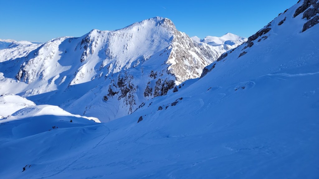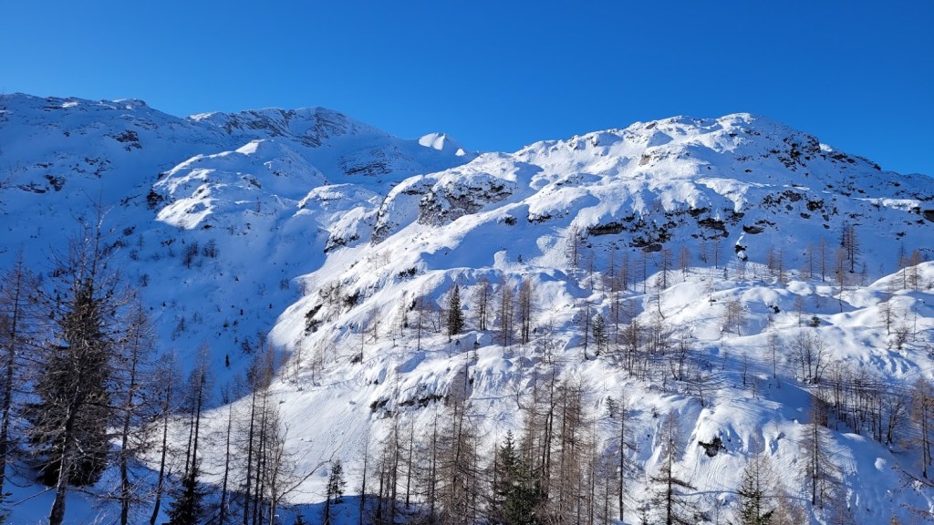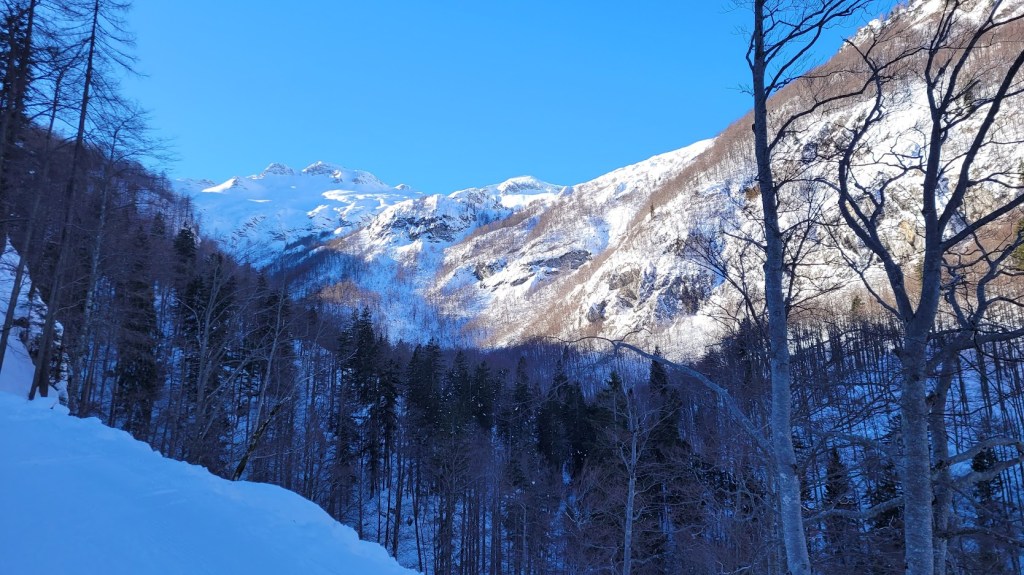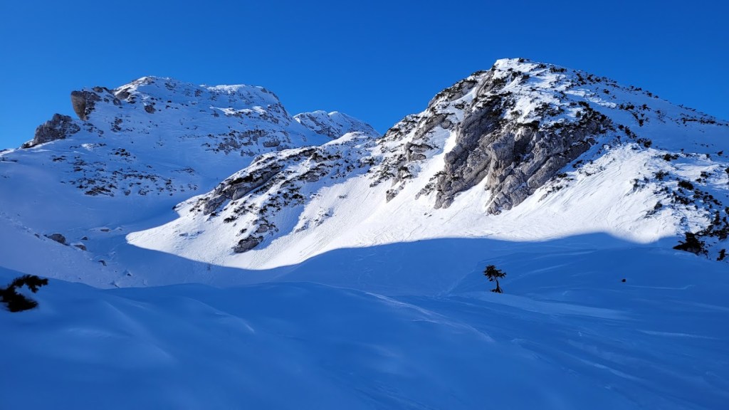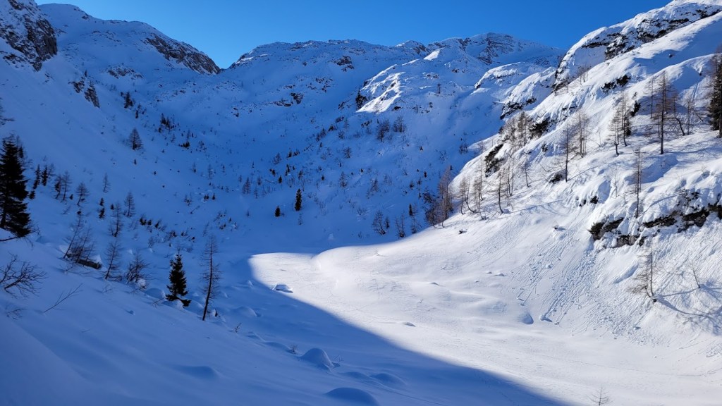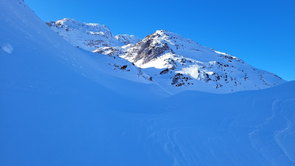 Zaradi odjuge preteklega tedna smo se najbrž vsi spraševali kje iskati dobre razmere za turno smuko. Odločil sem se za Vogel. In ker sem bil pozen (9:30) sem dobil predzadnje uradno parkirno mesto v Ukancu. Nazaj grede sem sicer ugotovil, da so danes občinski redarji zamižali na obe očesi, saj so bili avtomobili parkirani povsod ob glavni cesti. Občinska računica (hočem reči naravovarstvena) je bila očitno danes drugačna. Žagarjev graben je bil danes zratrakiran (zjutraj so bila še reberca). Na planini Zadnji Vogel sem zavil desno proti Voglu. Od tu naprej sem hodil sam, pred mano pa ni bilo niti gazi. Po trasi markirane poti sem se prek Vratc (1668 m) povzpel do Kote 1794 m, ki leži tik pod vršno zgradbo Vogla (1923 m). Naprej pa nisem upal, saj je bila pod Voglom strma prečnica, ki bi bila lahko nevarna za kak kložast plaz. Kasneje sem sicer ugotovil, da se na Vogel pozimi ne hodi po trasi letne markirana poti, ampak da bi moral že spodaj zaviti desno, da bi prišel na greben pri Vrhu Krnic. Odsmučal sem po isti poti nazaj do Zadnjega Vogla (večinoma skorja, ampak sploh ne tako slaba smuka). Nazadnje pa sem se za trening po smučišču vzpel še na Šijo. Skupaj se je nabralo 1850 višincev in 22 km.