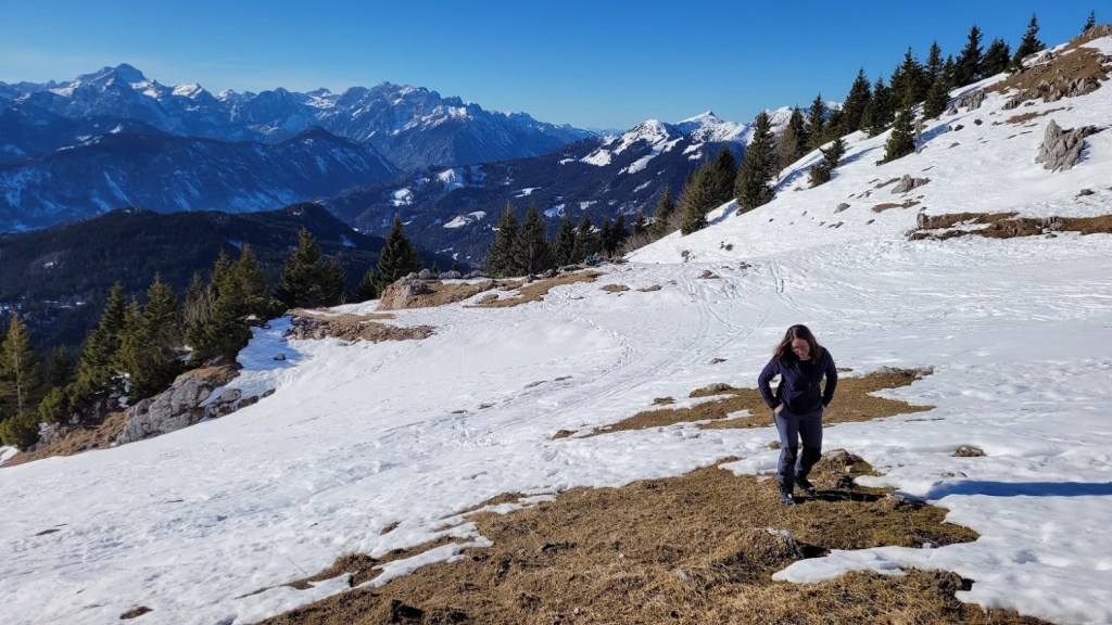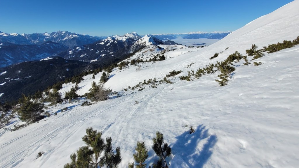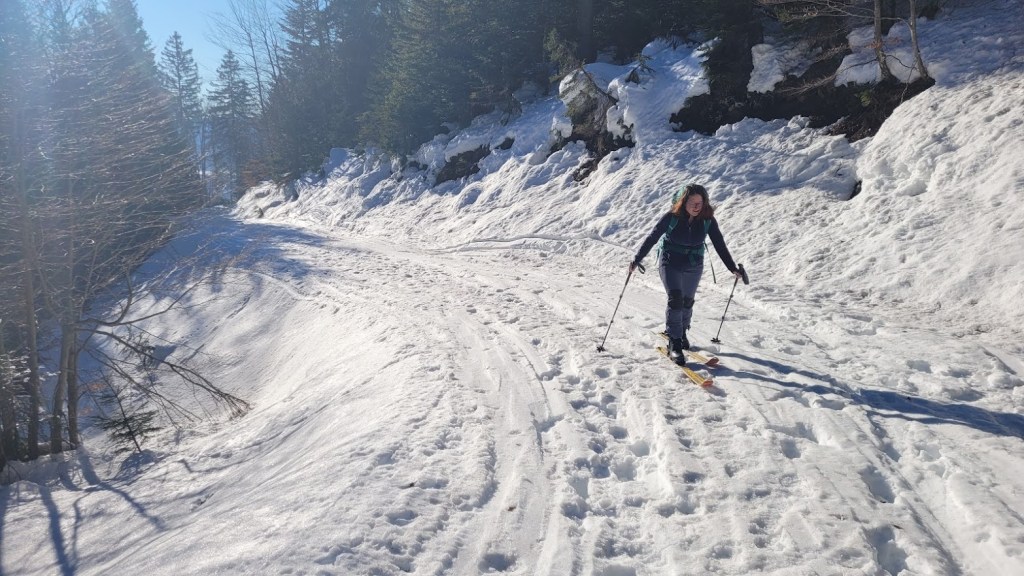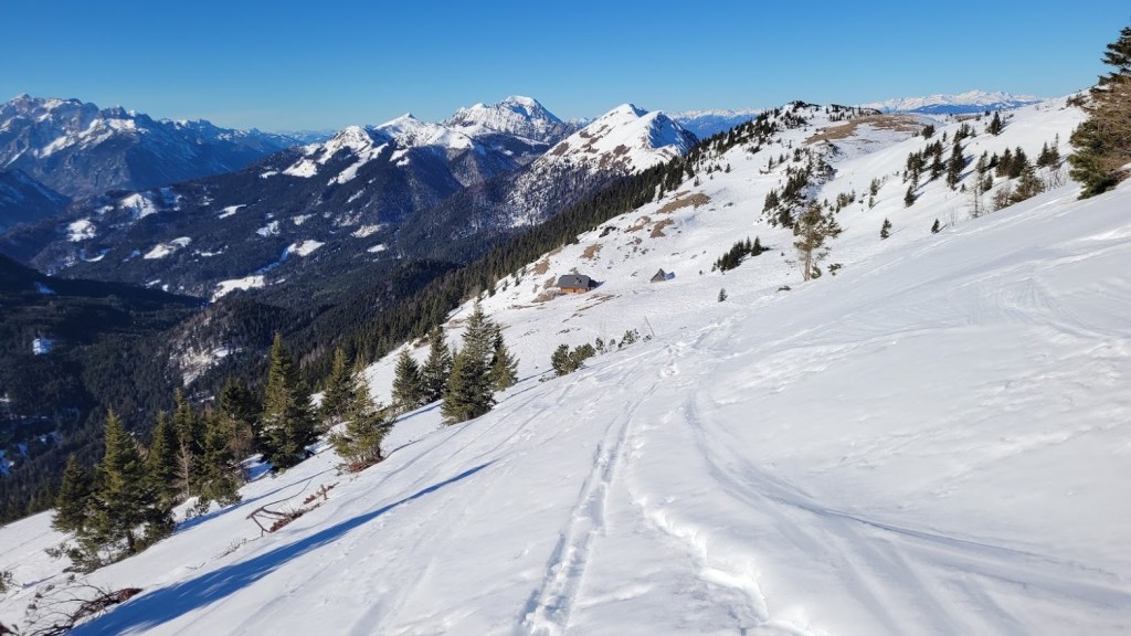 Od Pristave sva se za avtom zapeljala do Križovca: cesta je ledena, s kolesnicami. Na dveh mestih pa jo seka nevaren jarek, ki ga je v snegu izdolbla voda. Vseeno sva nekako prilezla gor brez uporabe snežnih verig. Nato sva nadaljevala na smučeh. Sneg je bil že zjutraj gnil in južen, saj je bilo prek 10 stopinj °C. Povsem pomladanske (majske) razmere. Višje pa je postalo samo še bolj toplo. Vse povsod je tekla voda in prav videlo se je kako se tali sneg. Na Belski planini je bilo za kratke rokave. Na Velikem vrhu Struške pa je ravno toliko pihalo, da je bilo za flis. Zanimivo, da je bila v Avstriji po nižinah megla, med tem ko jo pri nas ni bilo. Smuka je bila na vršnem delu zelo dobra. Nato pa je sneg postal tako gnil, da je postalo nevarno, da bi ob zavoju priletel na skalne mine skrite pod snegom. Od koče na Belski planini sem se vzpel še na Korenščico. Smučal sem po slemenu levo od grape, ker je bilo tu še relativno varno. Vseeno sem sprožil veliko kepo sega, ki je s sabo potegnila manjši plaz južnega snega.