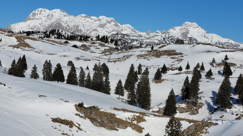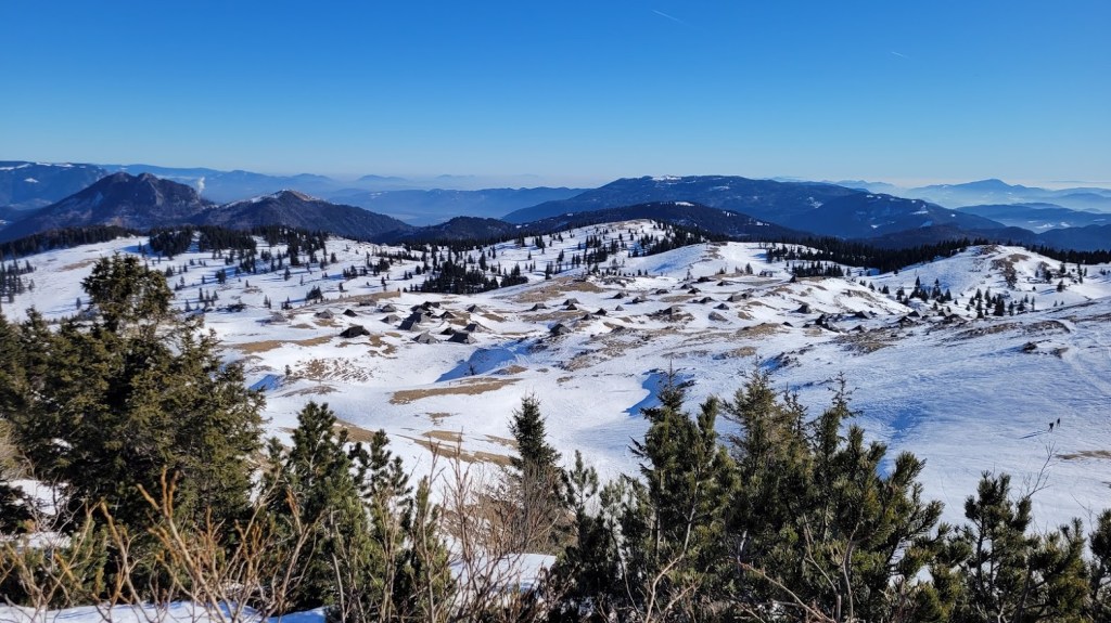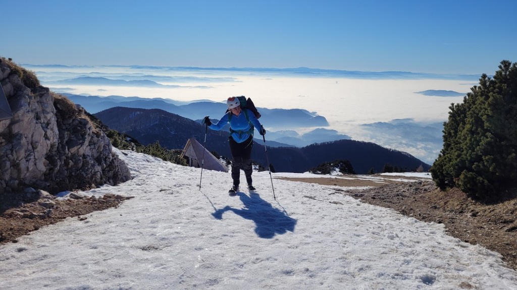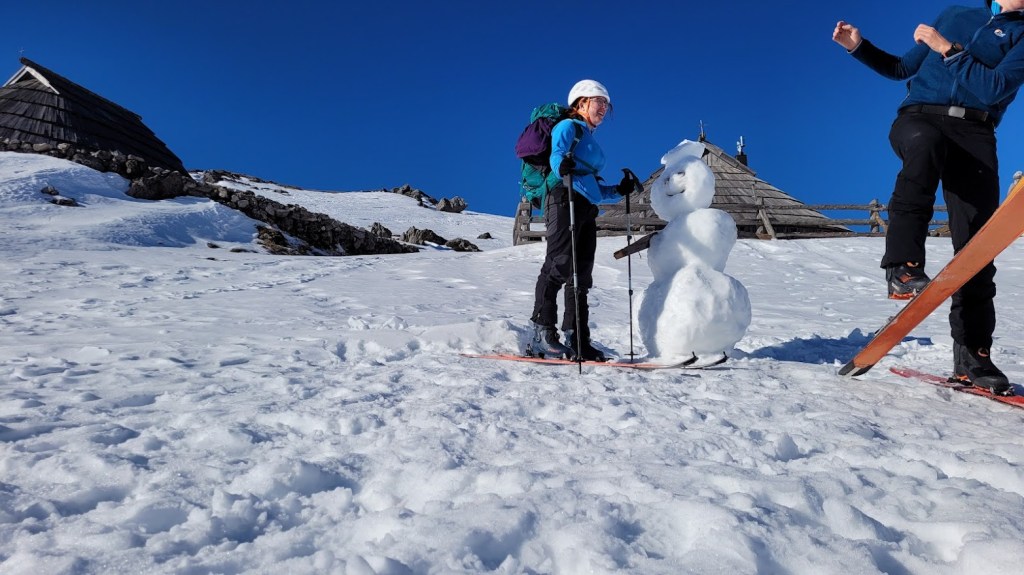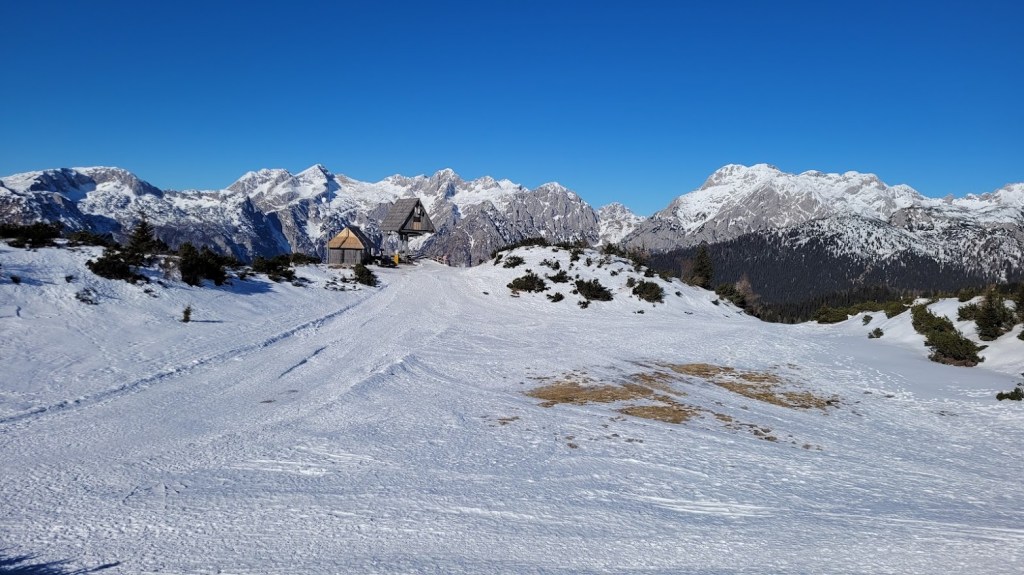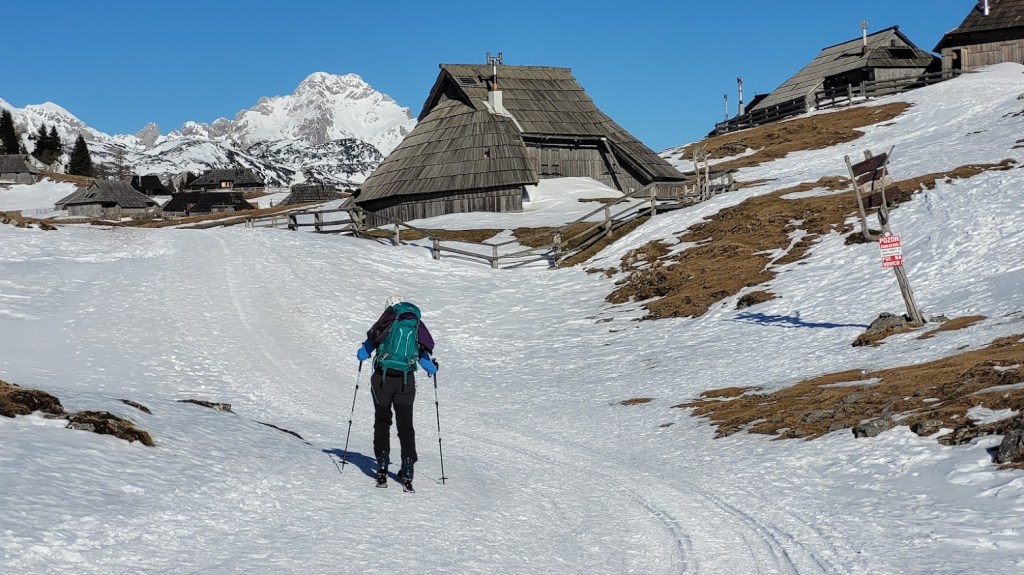 Začela sva na parkirišču Za Ušivcem (10 €/dan). Smuči sva nosila skorajda do Male planine, saj je na širšem območju Velike planine snega zelo malo – v povprečju le 10-15 cm. Vmes pa je tudi že precej kopnin. Zato niti ni presenetljivo, da sva bila edina turna smučarja. Mimo Jarškega in Domžalskega doma sva oddrsala do stanov na Veliki planini in nato na Gradišče. Smučanje je bilo še zvezno. Ampak je res v zadnjih izdihljajih. Z nekaj prestopi se prismuča 15 min hoje do avta.