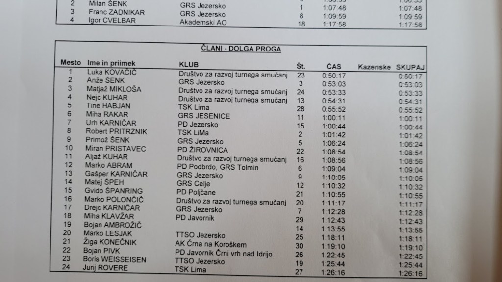 Po tekmi vzponu na Zelenico, sem se odločil, da nastopim še na turnosmučarski tekmi na Jezerskem. Tekma je v preteklih letih potekala v smeri Dolge njive in Plešivca. Letos pa je bila trasa zaradi pomanjkanja snega prvič speljana v dolini Ravenske Kočne. Štart tekme je bil na začetku tekaških prog, v bližini lovskega doma. V prvem delu smo šli kar po tekaških progah, nato pa po kolovozih v smeri Visokega vrha. Nato je sledil odsek, kjer smo morali smuči nesti na nahrbtniku. Jaz tekmovalne turne opreme nimam (beri, je astronomsko draga). Nimam niti primernega nahrbtnika. Po naključju sem tik pred tekmo v avtomobilskem prtljažniku našel star kolesarski nahrbtnik, ki je imel pri strani dovolj dolge jermene. Z improvizacijo tik pred tekmo sem ga uspel prirediti, da sem nanj lahko zasilno pripel smuči. Še sreča, saj je bila pot po kateri smo tekli poledenela in bi bilo res nevarno, če bi smuči nosil v roki. Od peš odseka smo šli še 500 m na turnih kožah; do menjave na Štularjevi planini. Če sem imel občutek, da mi v klanec gre kar dobro in da sem lahko držal tempo, sem na menjavi izgubil veliko časa. Še več pa potem na spustu, ki sem ga raje odpeljal s previdnostjo, kot pa da bi prišlo do nesreče. Pri spodnji postaji žičnice na Češko kočo smo spet vpregli pse in se vzpeli do druge menjave v zatrepu Ravenske Kočne. Nato je sledil le še uživaški spust do cilja. Sneg na spustu je bil presenetljivo dober in našel se je celo kak zavoj zelo uležanega pršiča oz. sreža. Moram reči, da še na nobeni tekmi nisem tako zelo užival. Proga je bila res dinamična in razgibana. Če bo priložnost, upam, da bom lahko nastopil še na kakšni podobni tekmi. Zaradi poškodbe gležnja (imam počeno kost v gležnju), ki se mi veče že dalj časa, pa bom videl kako bo.