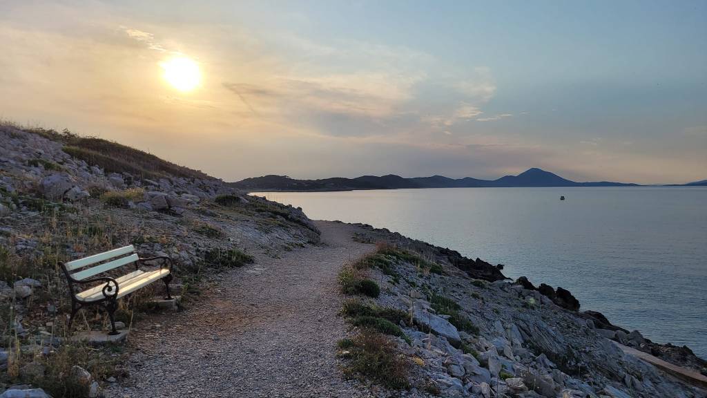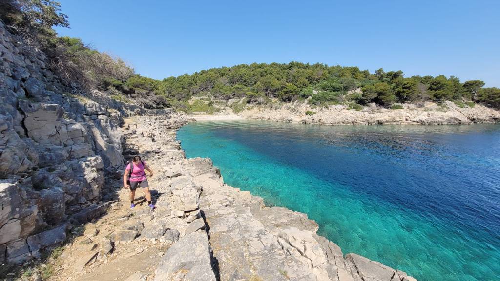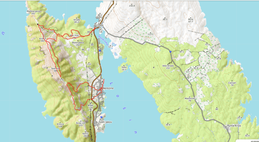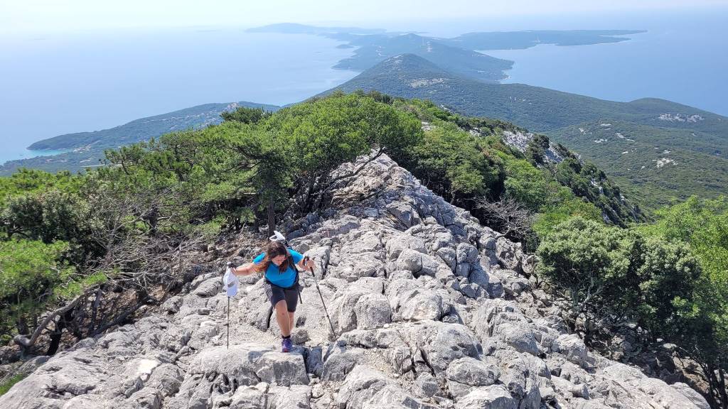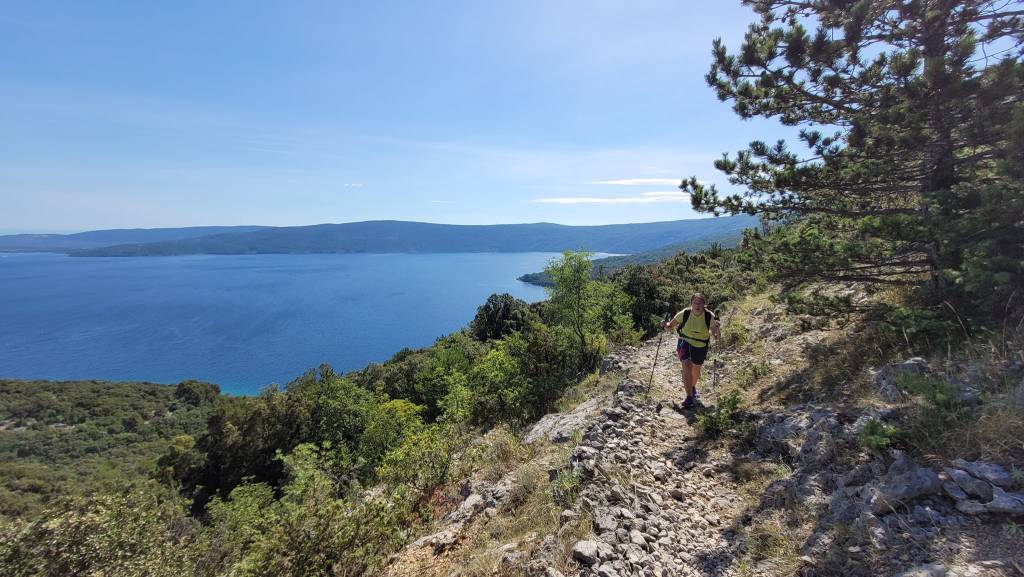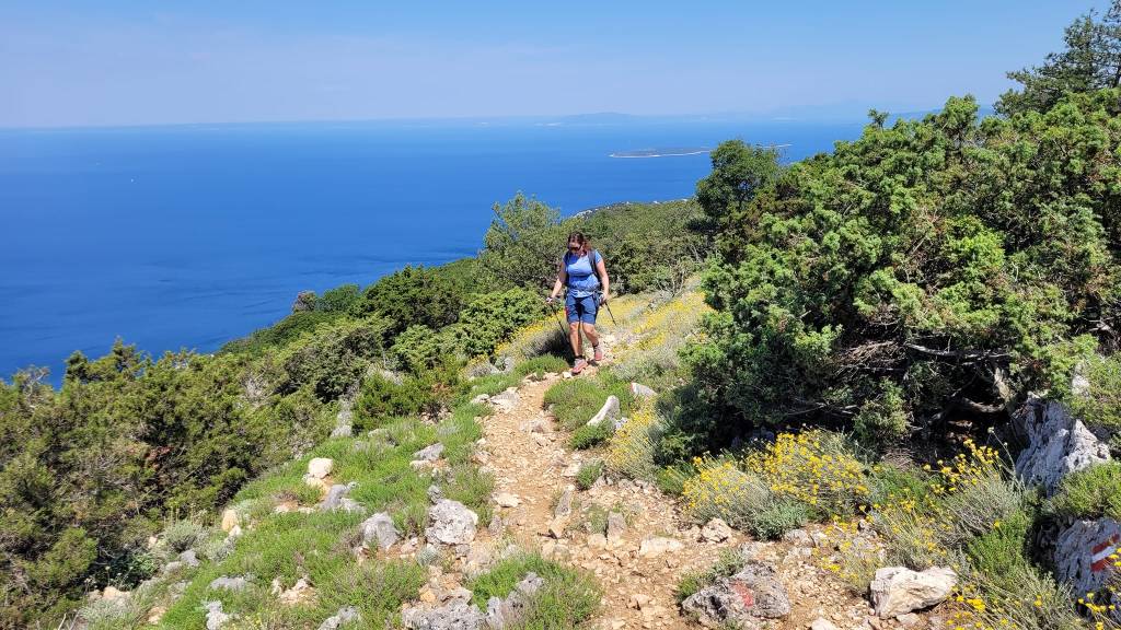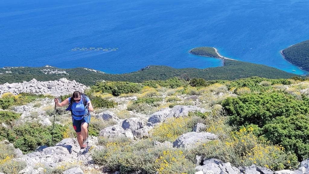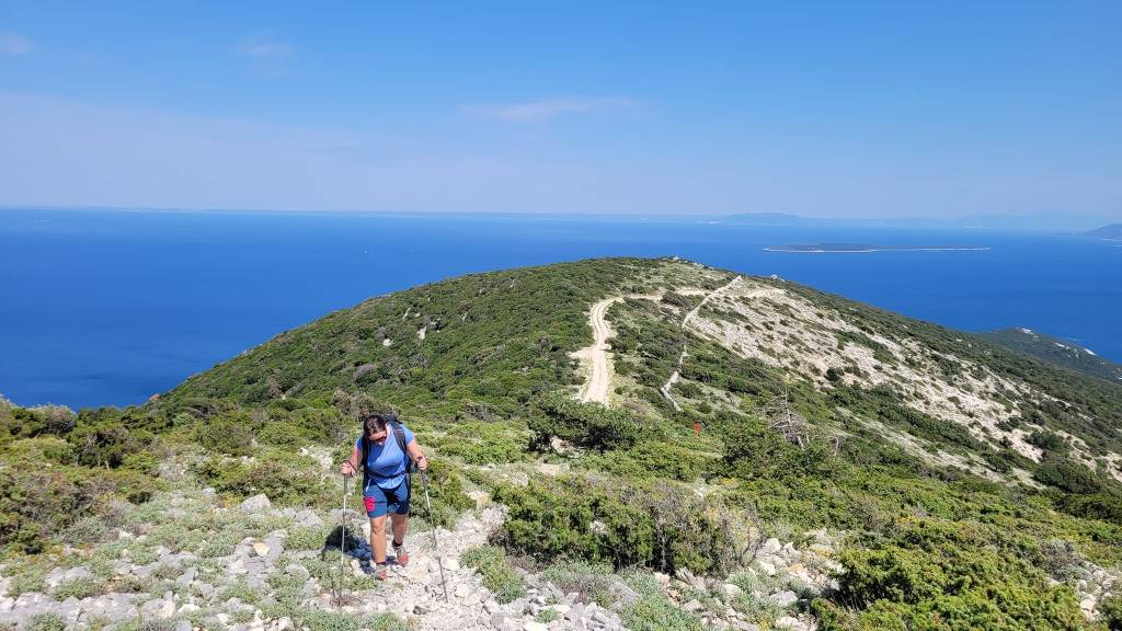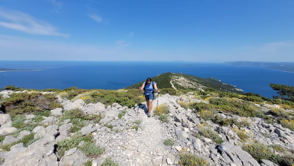 Zaradi mojih in Petrinih težav s poškodbami sva se odločila za bolj ležeren dopust na otokih Cresu in Lošinju. Čez Cres in Lošinj se iz severa proti jugu vleče greben hribov. Po njem poteka pot 150 km dolga pot Via Apsytrides. Tiste dele poti, ki sva jih obiskala, je presenetljivo dobro označeno. Poti so večinoma naporne za hojo. Pa ne zaradi obilja višincev, ampak zaradi apnenca s številnimi škrapljami t.i. »zvinjegleženj kamen«. Med drugim sva se podala na najvišji vrh Lošinja – goro Talevrina (588 m) iz Osorja in na sv. Mikul iz vasi Nerezine. Na obeh vrhovih je lep razgled na Jadranske otoke in Velebit. Vendar nama je bila grebenska pot na Mikul bolj všeč. Poleg tega popotne muke krajšajo številni fosili na poti. Gorski pridih ima tudi skrajni južni del Malega Lošinja. S hribov pa vodijo steze do številnih samotnih plaž. Vreme sva imela ves čas fantastično: brez oblačka na nebu in s temperaturami nad 30 °C. Večini tako vreme za športne v naravi ne ustreza – jaz pa sem neskončno užival, ker res ne maram mraza.