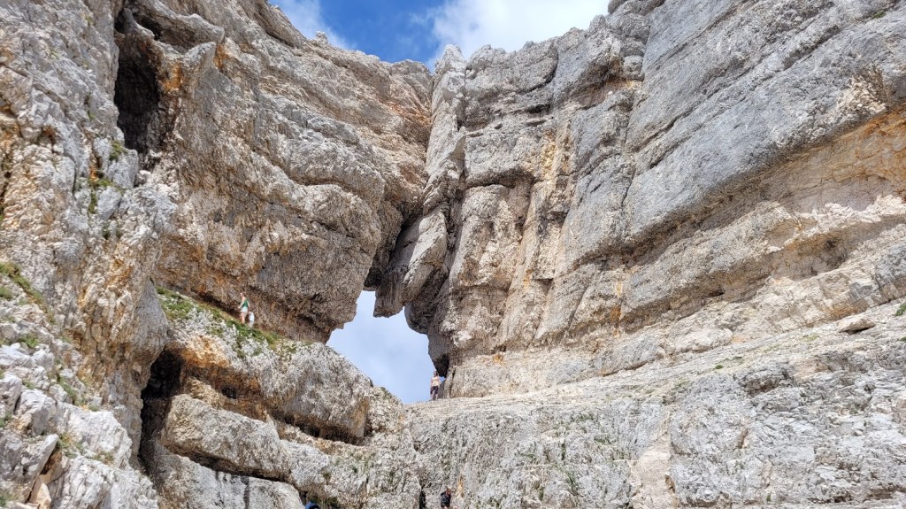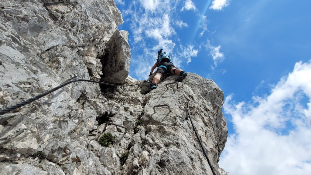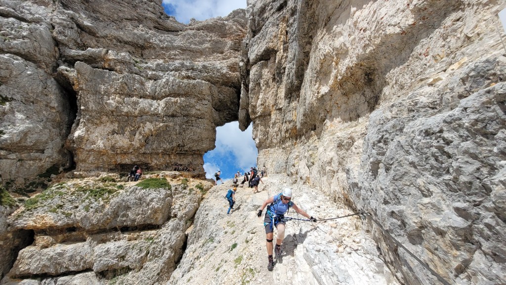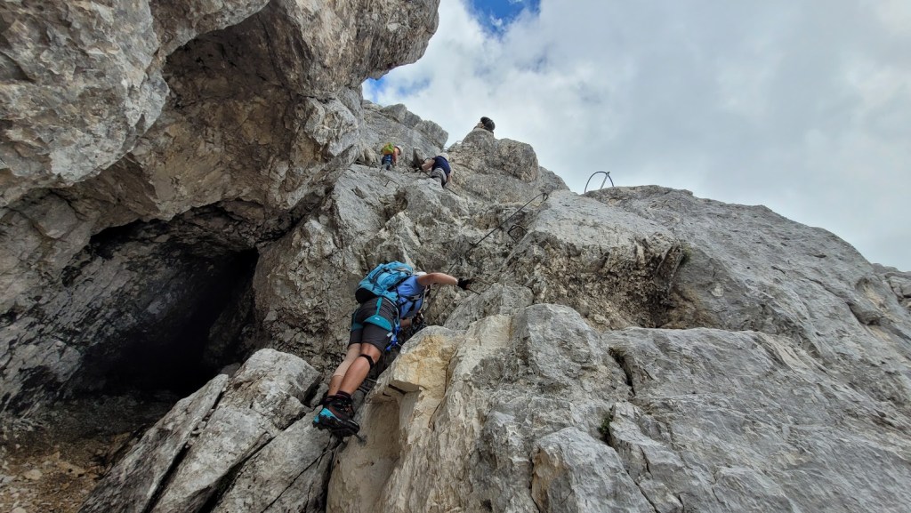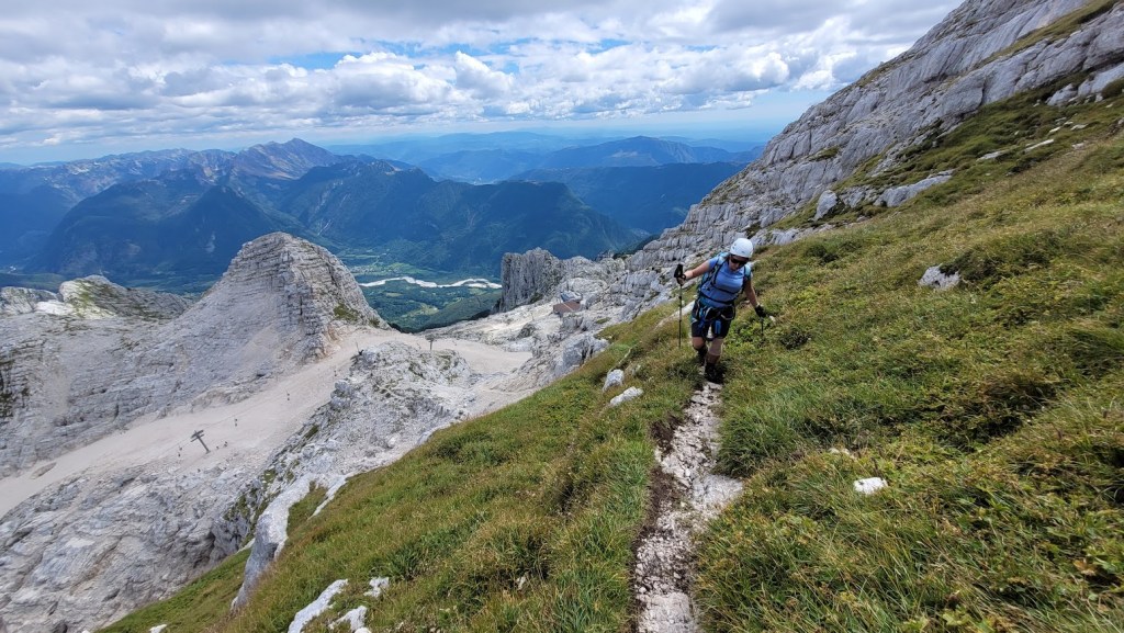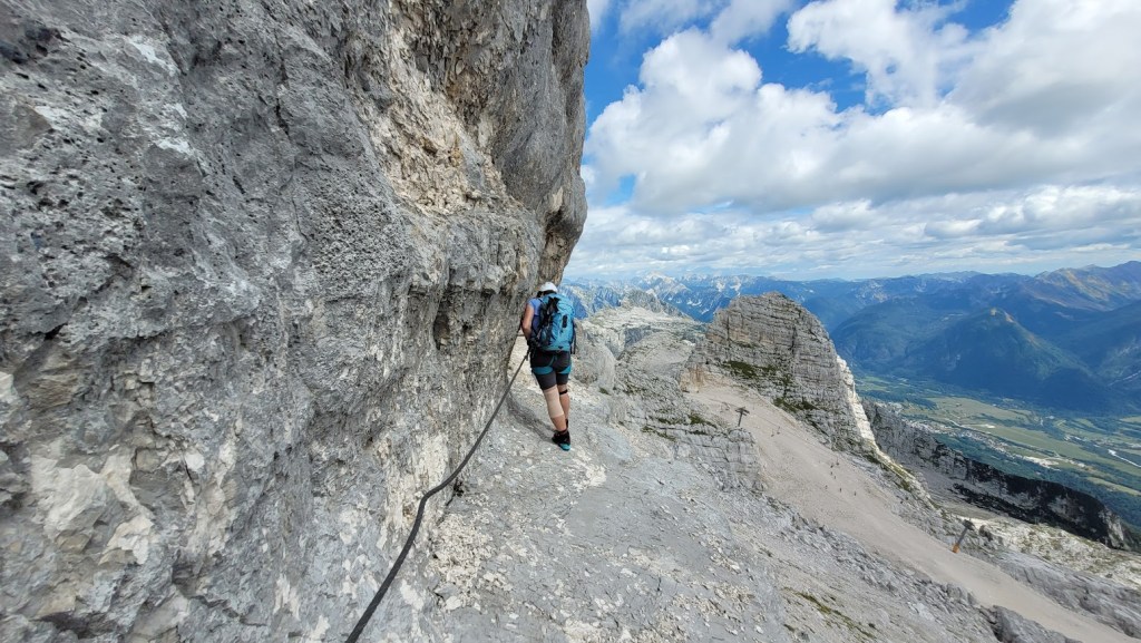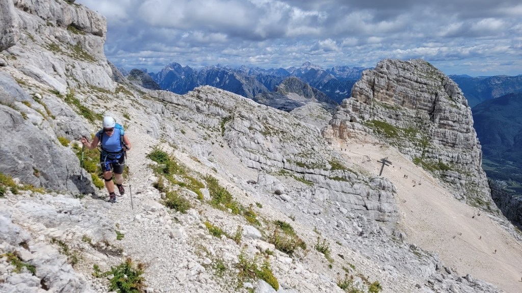 Nedeljska gondola Gilberti plus maska 16€, prejšnjo ne to. S Petrom napadla Rosalbo Graselli na Visoki Kanin čez to isto družinsko feratko na gondolo Prevala in nato do Selle.