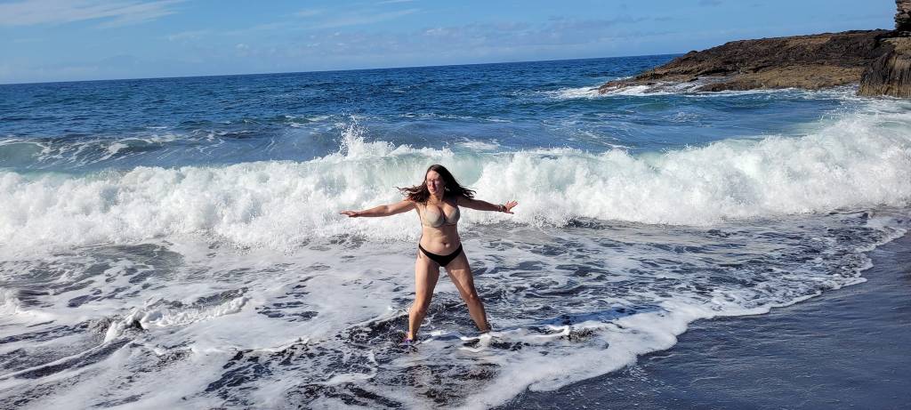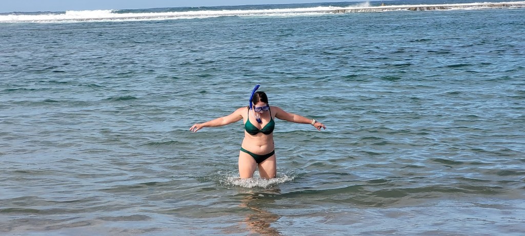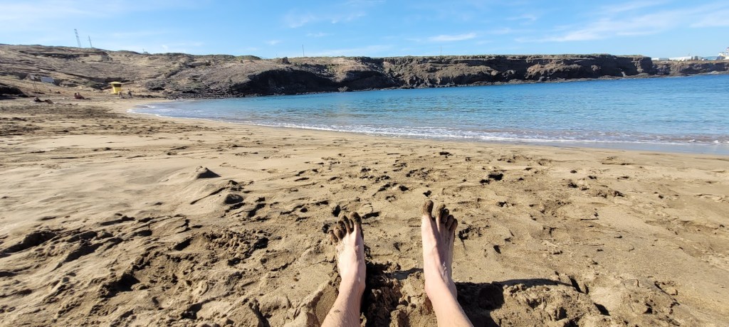 Sva se pa zato toliko več časa zadrževala ob oz. v morju. Morje ima prijetnih 22 °C. Žal pa je na večini (predvsem divjih) plaž plavanje prenevarno zaradi metrskih valov. Plavanje je varno v umetnih zalivih in bazenčkih ob obali (imenujeje jih Piscina natural). Plavanje je varno tudi na ogromni plaži Las Canatares v glavnem mestu Las Palmas, ker tu naravni koralni greben blokira valove. Živopisanih koralnih rib je v morju kolikor jih hočete. No, vsaj meni se je zdelo, da jih je ogromno, saj sem se po 20 letih prvič potapljal z maski in dihalko -a.k.a. snorklal. Na Amazonu sva si pred potovanjem za 36 € naročila potapljaške maske z dioptrijo. Vse skupaj naju je tako zelo navdušilo do te mere, da mislim da sva odkrila nov šport. Med potapljanjem na eni izmed plaž sva celo videla 1 m meter širokega in 2 metra dolgega skata. Noro! Škoda, ker nisva imela GoPro, da bi slikala te velike ribe.