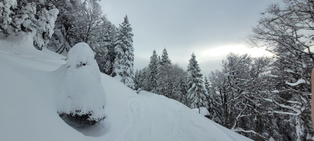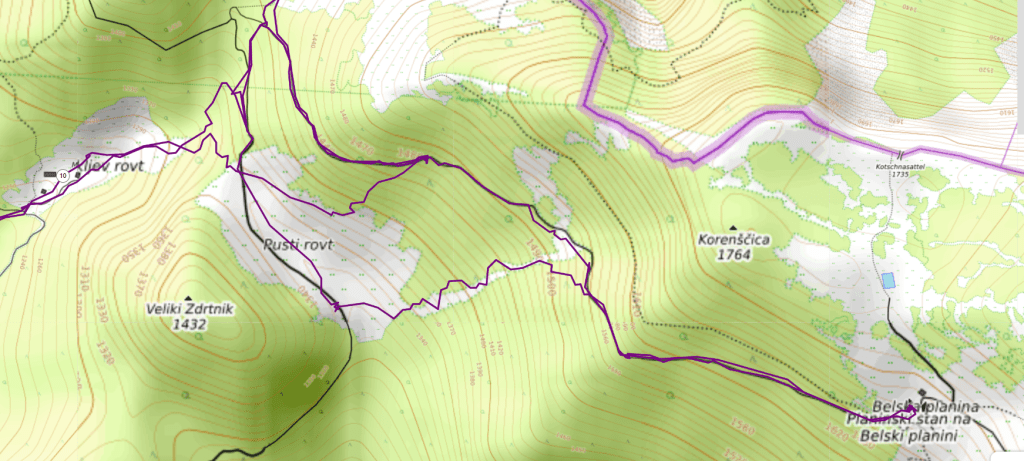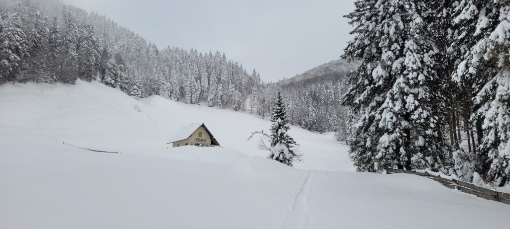 Glede na močan severni veter sem se odločil, da grem smučat Belsko planino iz smeri Savskih jam. In res me je na avtocesti proti Jesenicam kar pošteno prestavljalo, medtem ko na koncu Planine pod Golico skorajda ni bilo vetra. Veter se je za hip pojavil šele v Markljevem rovtu, nato pa ga do Belske planine skorajda ni bilo. Na Belski planini pa so bile take veterne zavese, da nisem videl smisla v nadaljevanju proti Korenščici. Zato sem odsmučal skozi gozd proti Pustem rovtu. V gozdu (ker ni bilo vetra) je bil super pršič (skorajda nič zvoženo). Na jasah med drevesi pa je bil sneg že zbit v mehko kložo. Še slabše je bilo potem na Pustem Rovtu. Zaradi dobrih razmer sem se odločil za še eno furo (vendar sem se tokrat vzpel samo do polovice poti od Belske planine). Predvsem pa sem bil izredno vesel, da sem prvič po več kot treh mesecih (od operacije) lahko končno hodil nekoliko hitreje. Še teden dni nazaj me je na Dobraču tako bolela noga, da sem se komajda privlekel gor in dol. Današnja tura pa je bila prva, da so se bolečine toliko umirile, da sem končno lahko začel uživati. Sedaj me čaka nekaj mesecev intenzivnega treninga, da pridem nazaj v formo. Nazaj grede so že zratrakirali cesto so Savske jame in jo uredili v sankaško progo.