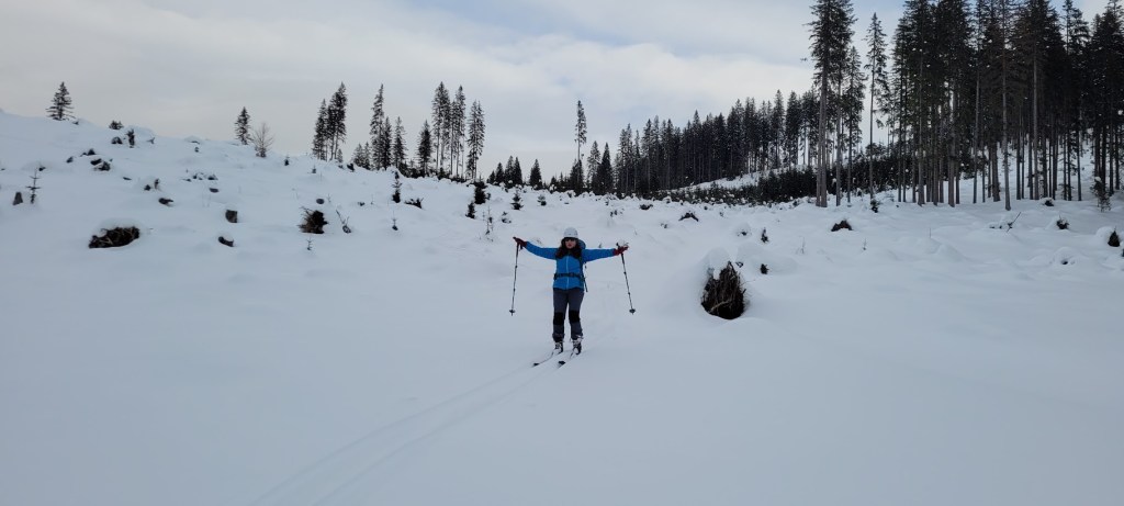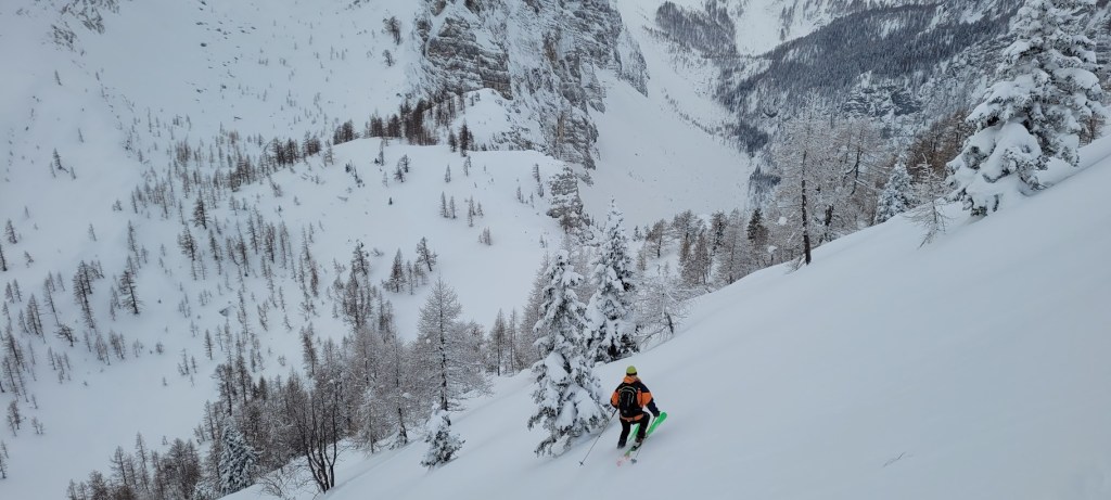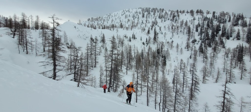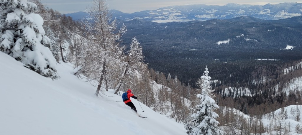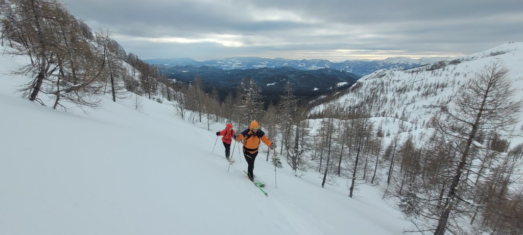 Ker ni bilo nobenih poročil, da bi kdo v zadnjem času smučal Debeli vrh, nas je kar rahlo presenetila avtocestna špura z Rudnega polja na Debeli vrh. Žal smuka prek glavne flanke zaradi tanke skorjice ni bila najboljša. Spodaj v gozdu pa je še ostal super pršič. Z Rudnega polja sem se nato odpeljal z avtom do Šport hotela. Od tam pa sem šel nasproti Petri, ki je šla sama s smučmi na planino Lipanco. Tako, da sem vse skupaj v enem dnevu s smučmi premagal slabih 19 km, kar je moja daleč največja razdalja po operaciji.