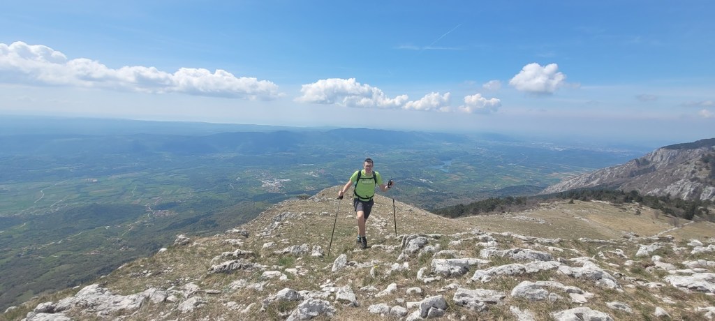 Zelo mi manjka tek. Ampak bom moral še malce potrpeti, ker kirurg meni, da me čaka še 3 mesece okrevanja preden bom spet lahko začel trenirati. Hodim lahko na srečo bolj ali manj brez bolečin že nekaj mesecev. Dobesedno edini dan lepega vremena v celem aprilu sva s Petro izkoristila za krog na območju Čavna nad Vipavsko dolino. In sicer sva se iz Lozarji povzpela na Malo goro. Po robu planote sva nadaljevala do koče na Čavnu in nato prek Kuclja do Velikega Roba. Sestopila sva po strmi, a markirani stezici nazaj v Lozarje. Skupaj 20 km in 1300 višincev.