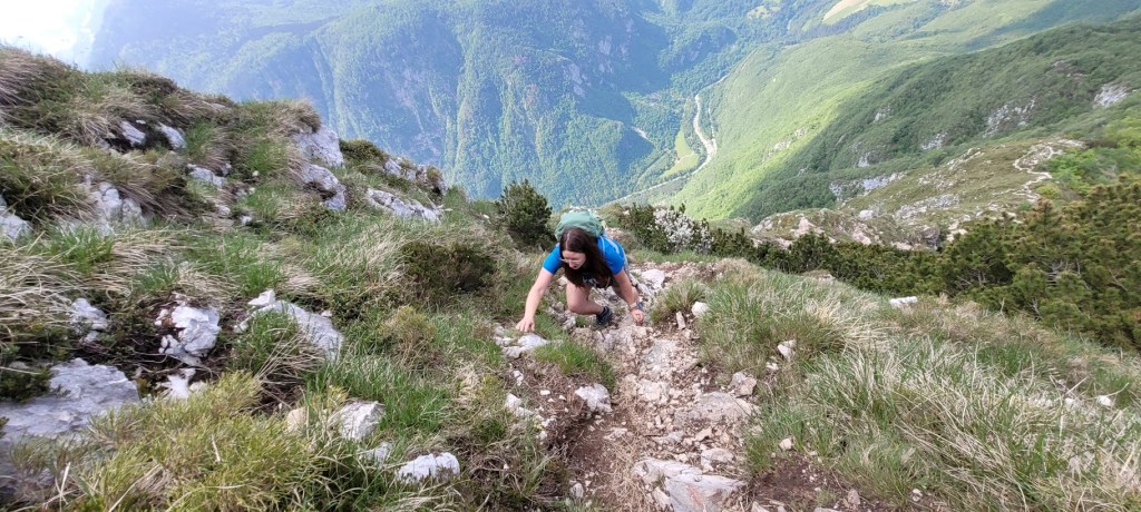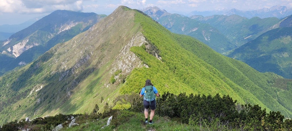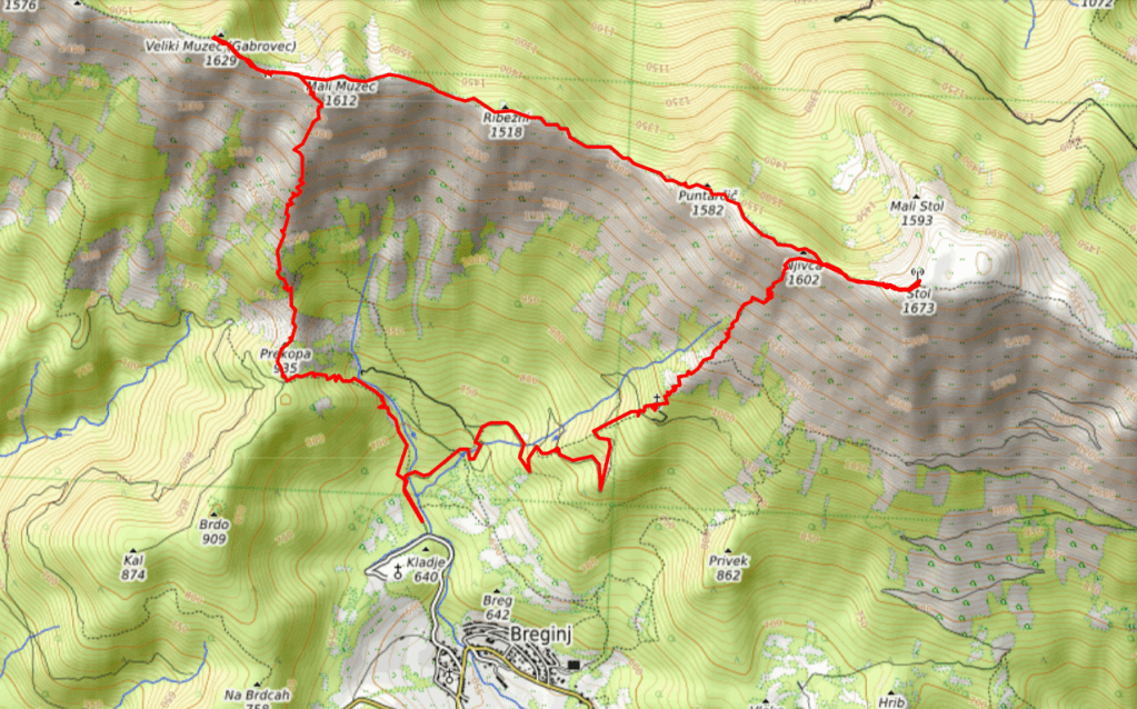 V soboto sva se z Bovca odpeljala v vas Breginj, ki je najbolj zahodna (in najbrž tudi najbolj odročna) slovenska vas. Z vasi sva se najprej povzpela na Kobariški Stol, ki mu sicer domačini pravijo samo Stol. Pot poteka po zelo strmem in čudovito razglednem travnatem pobočju. Nato pa sva sledila grebenu Stola vse do Muzca in Gabrovca. Pot je zelo lepo razgledna, a precej ozka. Ker praktično ni ljudi sva naletela na številne divje živali: divjega petelina, belko; in preproge gorskih rož: npr. jegliča in svišč. Pri Bivaku pod Muzcem sva spet po zelo strmem in mestoma izpostavljenem travnatem pobočju sestopila nazaj v Breginj.