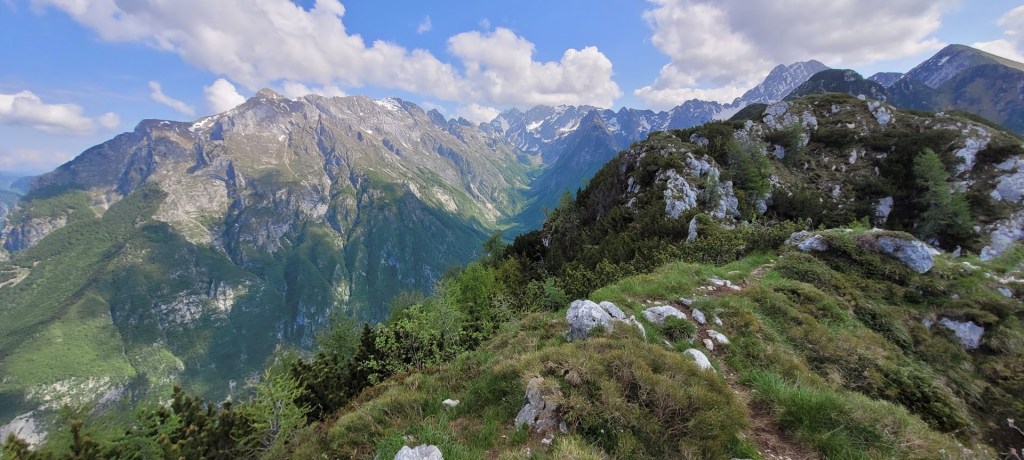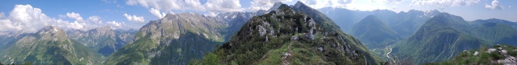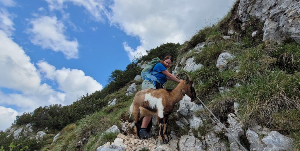 V nedeljo sva šla na t.i. Bovški “Matterhorn” – Svinjak. Pot prvih 800 višincev poteka skozi gozd in je skorajda povsem nerazgledna. Nato pa se z vsakim korakom odpira lepši svet. Pod vrhom pot postane strma in tudi mestoma rahlo izpostavljena. Na delu poti se nama je pridružila koza Pablo, ki je baje na vrhu s planinci skorajda vsak dan. Z vrha Svinjaka je res lep 360° razgled na celotno Bovško kotlino, Bavški Grintavec, Jalovec, Polovnik, Stol, Kanin, Rombon in Jerebico. Žal je slabost ture, da sestop poteka po isti poti. Edini obvoz je čisto spodaj, kjer se gre lahko čez Čelo, kjer je utrdba iz prve svetovne vojne.