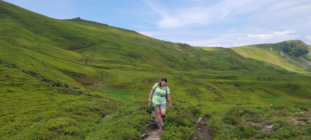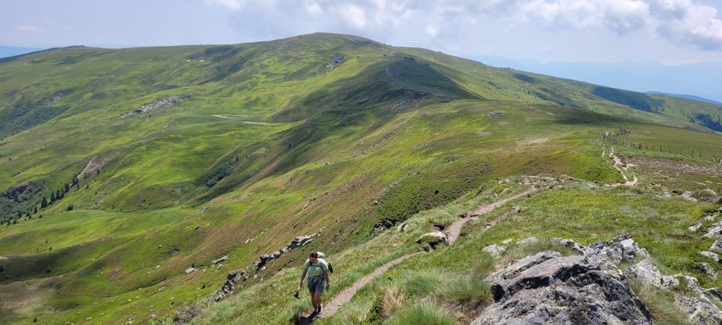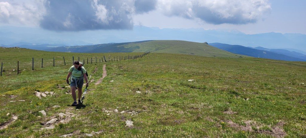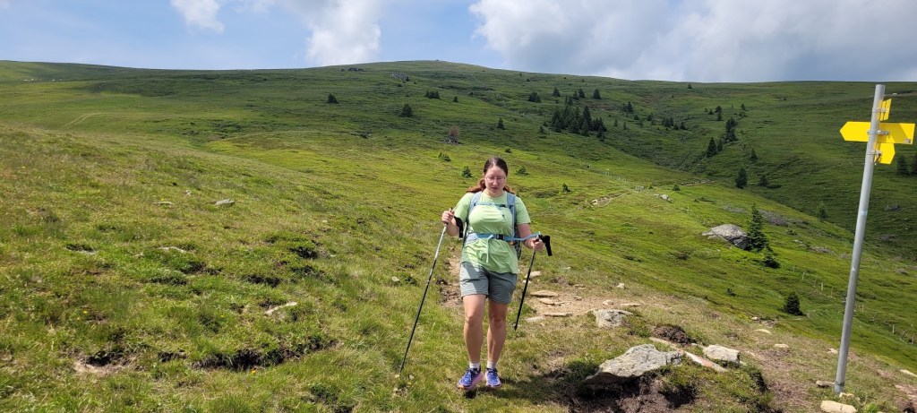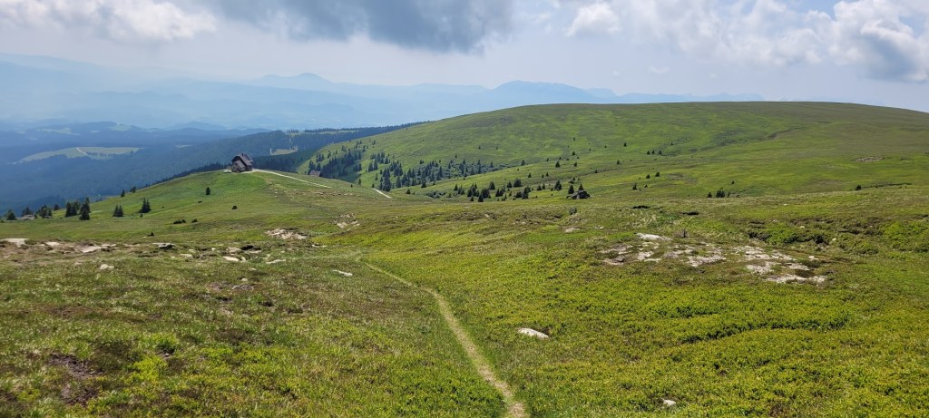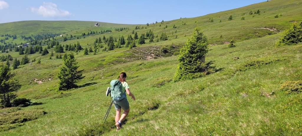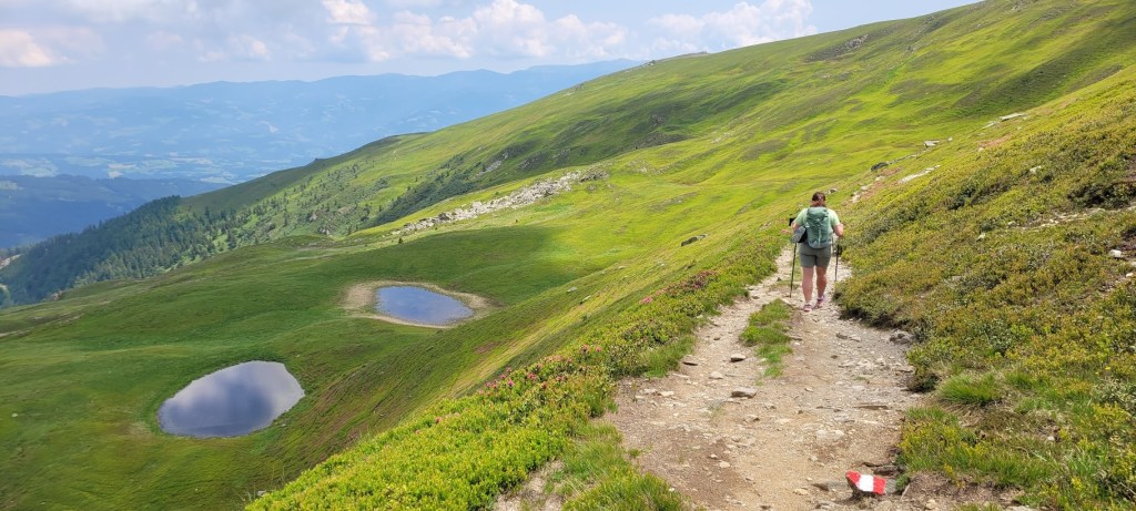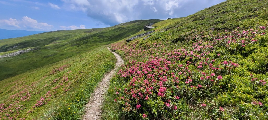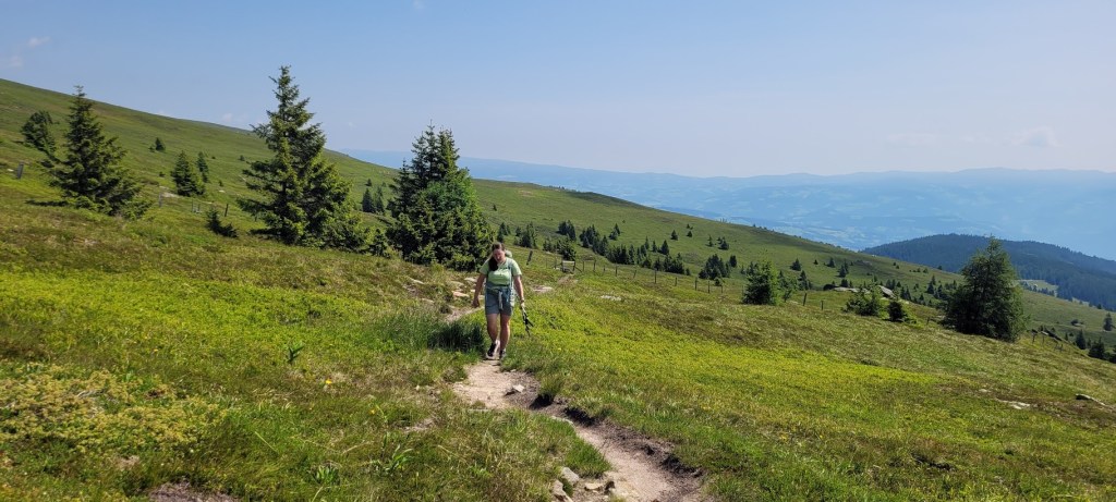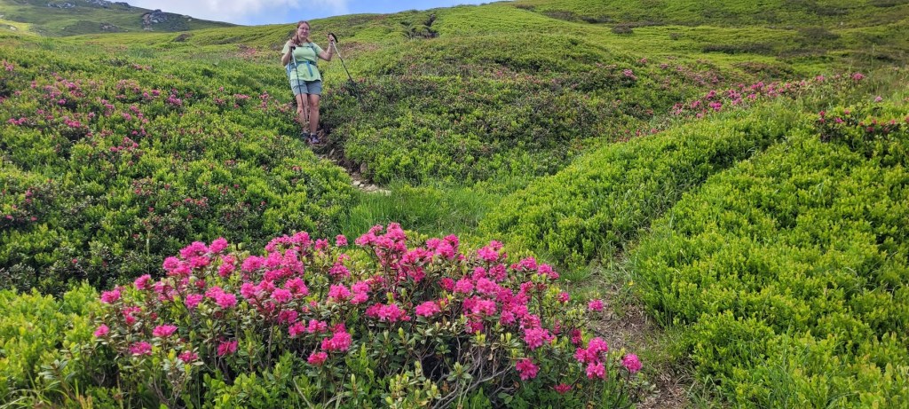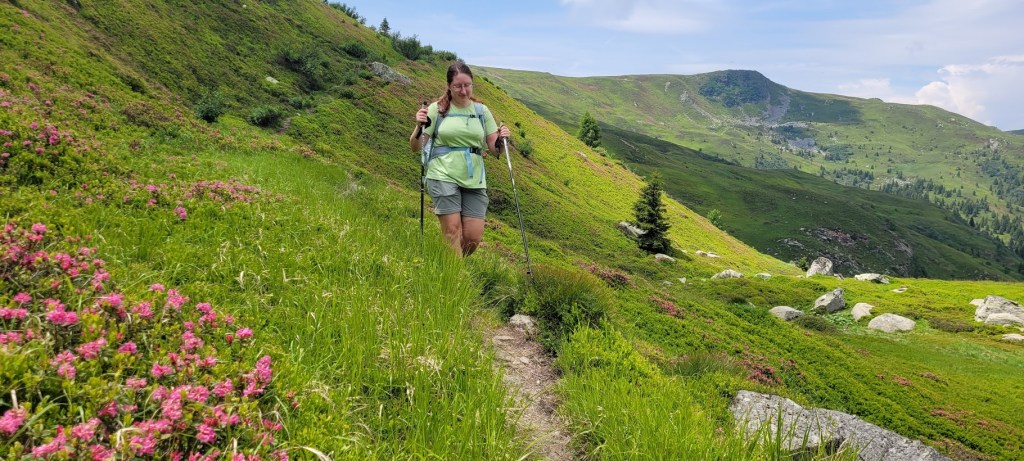 Ladinger Spitz oz. Velika Svinja (2097 m) je najvišji vrh pogorja Saualpe (po naše Svinške planine), ki leži zahodno od Wolfsberga. Na gori je bil prvič najden metamorfni mineral zoisit, ki je edini mineral imenovan po Slovencu (Žigi Zoisu). Za izhodišče sva izbrala gostilno Giesshutte (1350 m), kjer se konča asfaltna cesta. Sicer pa solidna makadamska cesta pelje še dobre 4 km dalje do koče Offnerhutte na višini 1680 m. Od te koče dalje je pokrajina res lepa. Pot pa je sploh super zaradi mehkih trav in mahu. Lepo je bilo tudi zaradi roza cvetenja rododendrona. Pobočja pa so tu kar premalo strma za turno smučanje. Obiskala sva vrhove Speikkogel, Ladingerspitz in Gertrusk, kar je skupaj naneslo 23 km in 950 višincev.