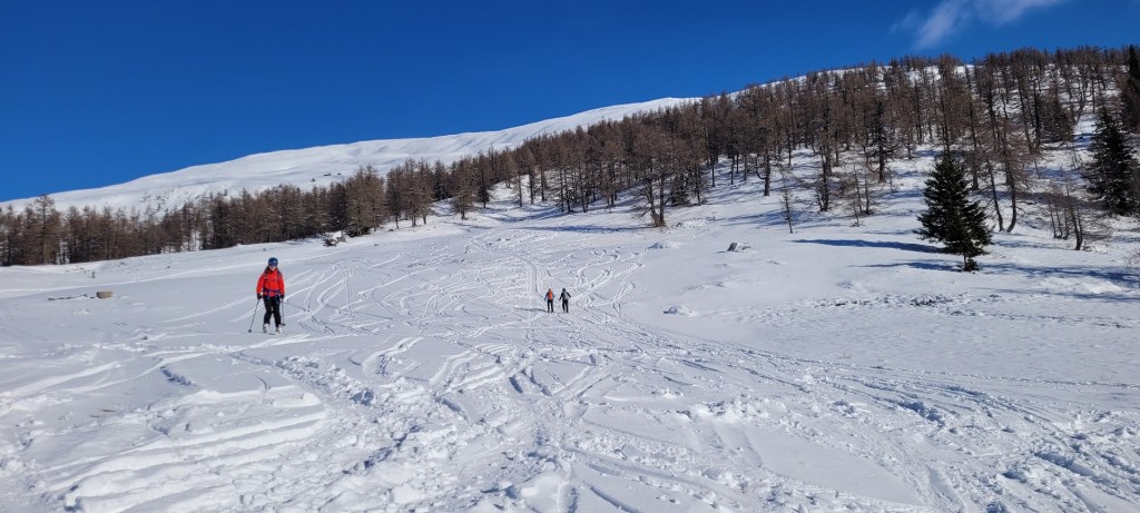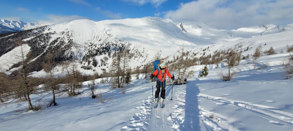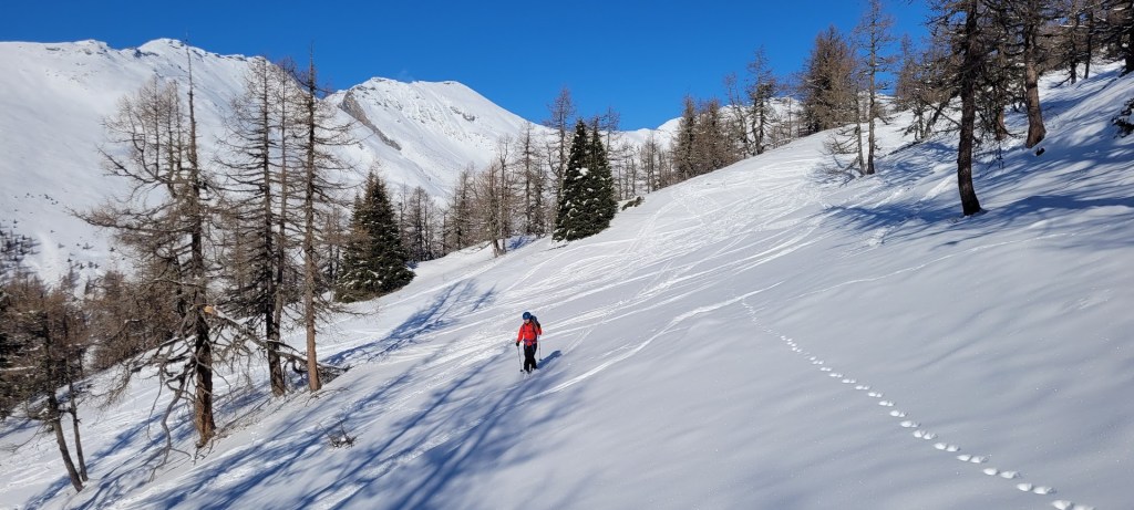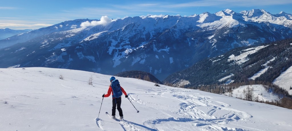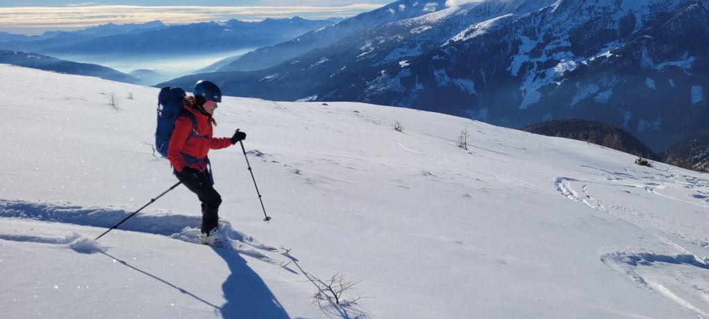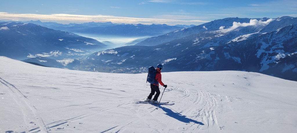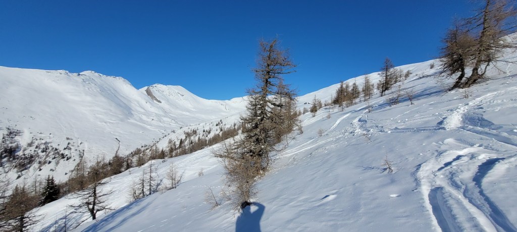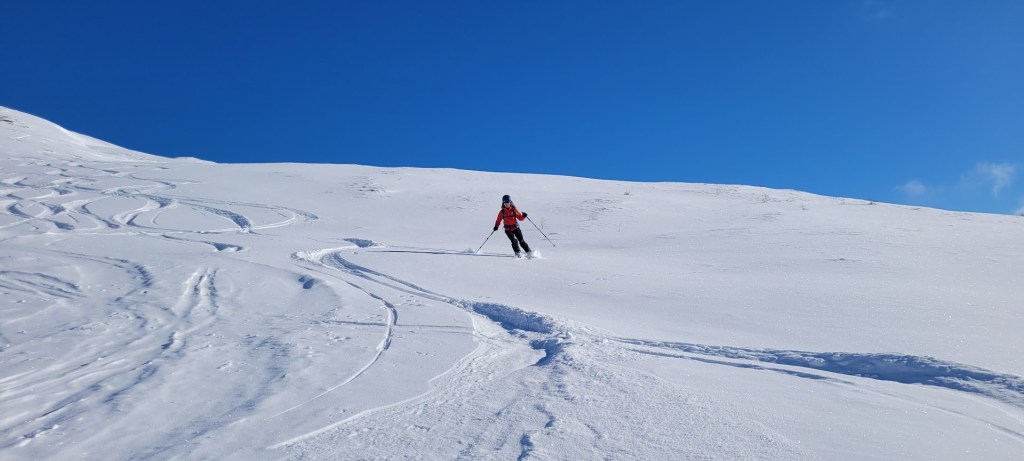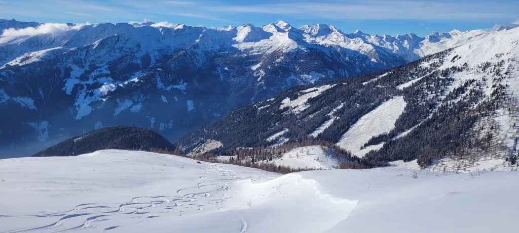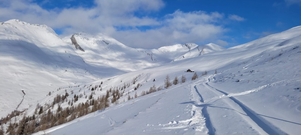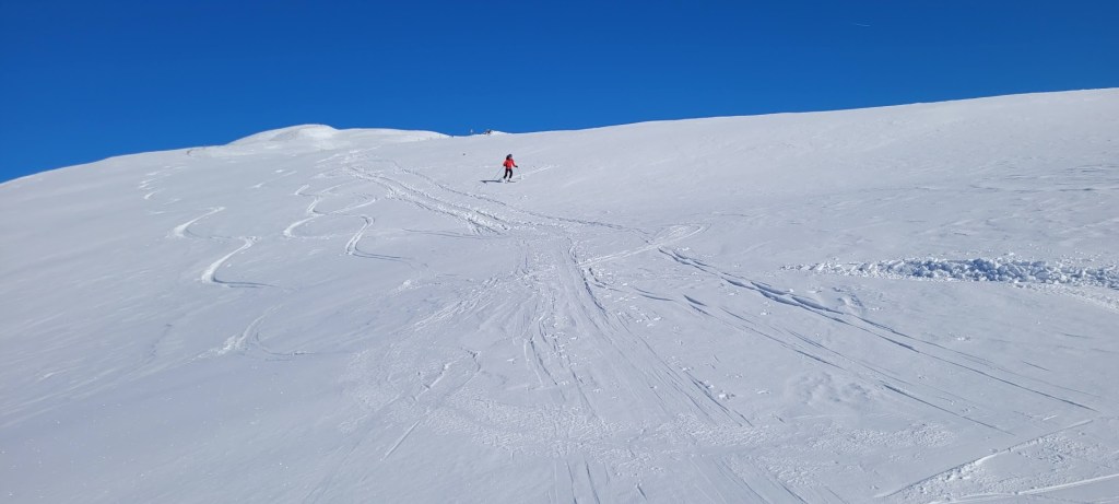 Krasen dan v hribih: toplo in brez vetra. Snega pa je bolj malo. Na srečo je ponoči padlo 5 cm prišča na sicer trdo in spihano podlago. Vršni del Stubecka je bil zato dober za smuko, spodaj v gozdu pa je komajda še dovolj snega, da se ravno še prismuča do avta.