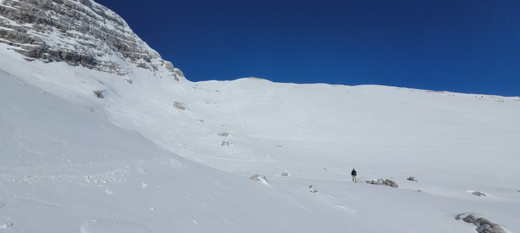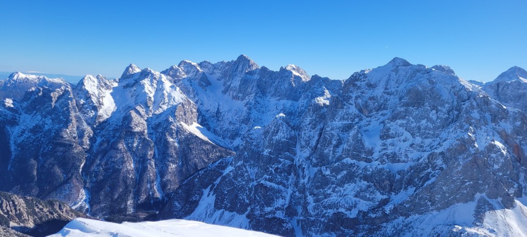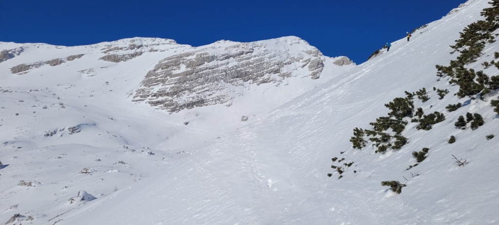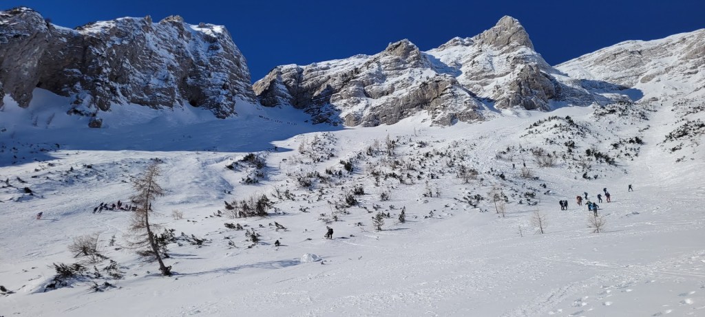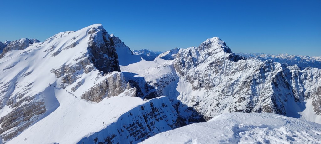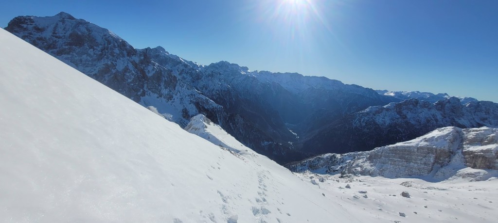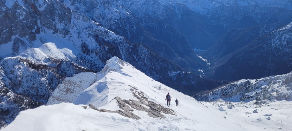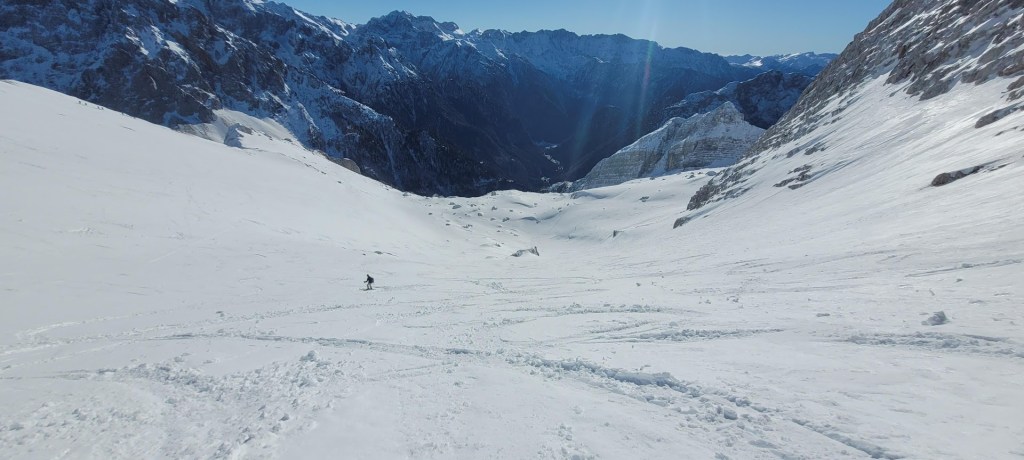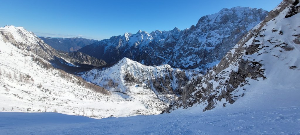 Ker skorajda nikjer drugje pri nas ni snega, vsi na Vršič. Sneg je bil gor grede pomrznjen. Nekateri so se mučili s srenači. Sam pa sem šel peš (z derezami) celo pot do vrha po poti čez Vratca. Sneg je okrog 12. ure na srečo nekoliko odjenjal. Smučal sem po grapi med obema Mojstrovkama, kjer sta se menjavala trda skorja in južen sneg. Nadaljeval sem v Drevesnico, kjer je bil tudi kak zavoj tudi srenjca. Snega je tu še tu dovolj.