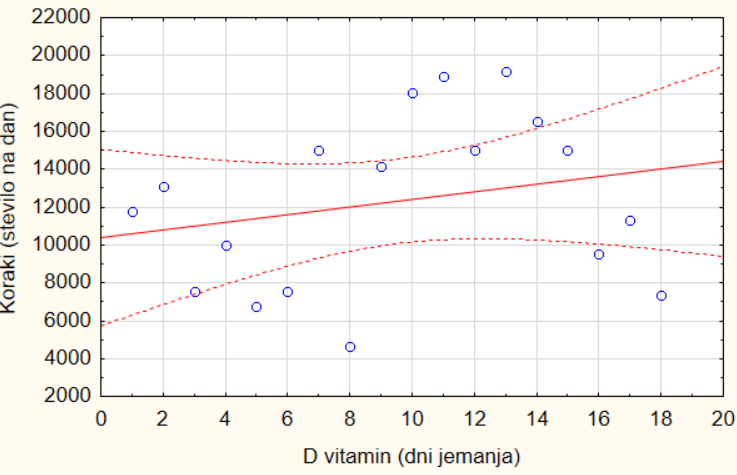 Velja za enega najbolj pogostih prehranskih dodatkov, ki ga predpisujejo za zdravljenje vseh mogočih bolezni. Jaz nimam pomanjkanja tega vitamina, pa sem ga vseeno jemal. Kot sem pričakoval, mi vitamin D ni pomagal. Korelacija je sicer šibko pozitivna (r=0,24), a ni statistično značilna.