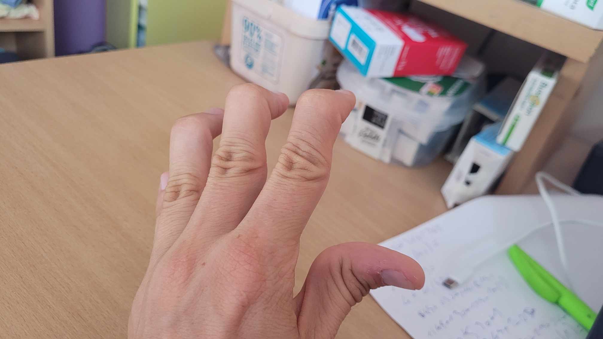 Že dolgo je znano, da je eden izmed vzrokov za pojav dolgega covida genetika. Kaj točno je pogosto težko ugotoviti, ker je odvisno od posameznika. Pri meni je kot kaže vzrok hipermobilen tip Ehlers-Danlosovega sindroma (hEDS). Za ta sindrom doslej nisem še nikoli slišal, a skorajda zagotovo z njim nevede živim že od rojstva. Glavni simptom hEDS-a je hipermobilnost sklepov in ohlapnost vezi, kot posledica genetske napake pri tvorbi kolagena. Pri meni se to kaže, da npr. lahko prste upognem za 90 stopinj (glejte slike) in da imam nenavadno močno/lahko gibljive tudi ostale sklepe. Zaradi hEDS-a nisem imel nikoli resnih težav. Doslej me je to motilo samo pri tem, da se mi je neprestano zvijal gleženj. Več kot 100 zvinov gležnjev je rezultiralo v tem, da sem si gleženj poškodoval do te mere, da sem moral na operacijo (povezava). Za dolgim covidom sem zbolel le pol leta po operaciji, ko okrevanje še ni bilo končano. HEDS sindrom je povezan s številnim drugimi mojim doslej nepojasnjenimi težavami: npr. platfusom, preteklo skoliozo hrbtenice, hiperaktivnostjo in kratkovidnostjo. Nedavno pa so znanstveniki odkrili povezavo med hEDS in povečano dovzetnostjo za dolgi covid (povezava). Zanimivo, kljub precej očitnim znakom, mi tega sindroma nikoli niso diagnosticirali. Sindrom hEDS sploh ni tako zelo redek, saj prizadene najmanj 1 človeka od 5000-ih.