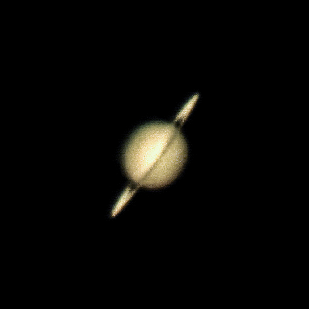 Saturn: zloženih najboljših 5 % izmed 5098 zajetih sličic s programom AutoStakkert. Slikal sem s teleskopom GSO 254/1275 mm s 5 x barlowo lečo – torej pri goriščni razdalji 6350 mm. Slike sem v gorišču teleskopa zajemal z barvno kamero Uranuc-C. Čas ekspozicije posamezne sličice je bil 23 milisekund. Kot je razvidno iz spodnjega filmčka pogoji za slikanje niso bili dobri. Velikost Saturna je 19 ločnih sekund oz. 44 vred s prstani.