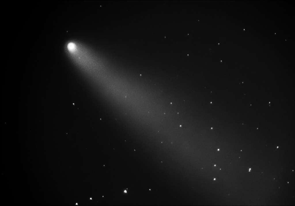 Po res dolgem obdobju grozno slabega vremena se je končno pojavila ena zadnjih priložnost za slikanje kometa C/2023 A3 (Tsuchinshan-ATLAS). Komet je od ponedeljka, ko sem ga videl nazadnje izgubil dobri 2 magnitude in je zato zgolj še na robu vidnosti s prostim očesom. No, jaz ga sploh nisem videl, ker nebo zaradi megle in nizke oblačnosti niti približno ni bilo jasno. Ampak vsaj slikal sem ga lahko: s Seestarjem in z novim teleskopom. Opazen je dolg glavni rep in zelo šibek antirep. Po 1 uri opazovanja pa se je megla toliko zgostila, da se ni videlo nič več. Verjetno bo jutri zadnja priložnost za opazovanje kometa. Pa še to vsaj za Gorenjsko napoved ni optimalna.