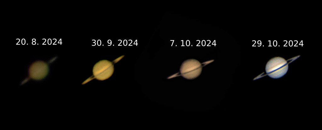 Astrofotografija je vse prej kot lahek hobij. Nov teleskop imam sedaj en dober mesec dni. In hočem vam pokazati na primeru slik Saturna, kako sem iz čistih zmazkov, ki sem vam jih kazal en mesec nazaj, napredoval do slik, ki jih snemam danes. Moral sem spoznati teleskop, se naučiti pravilno izostriti sliko, pravilno nastaviti montažo za sledenje in predvsem algoritme številnih računalniških programov, da iz teh drobnih slik izluščim čim več detajlov. Kot sem že večkrat pisal, je največji problem naša zelo turbulentna atmosfera in ne toliko ločljivost teleskopa: https://bojanambrozic.com/2024/10/01/kako-zelo-majhen-je-v-resnici-videti-saturn/.