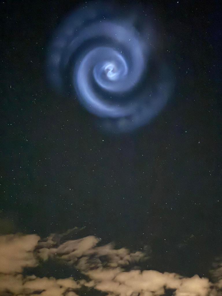 Nad Slovenijo je bil viden del Ameriške rakete. To je bilo videti, kot vrteč se spiralni oblak. Gre za drugo stopnjo Ameriške rakete Falcon 9, ki je uspešno izstrelila vohunski satelit: https://www.spacex.com/launches/mission/?missionId=nrol-69. Spirala je posledica puščanja plinov iz rezervoarjev za gorivo. Vidna pa je bila zato, ker na tej veliki višini je bila še vedno osvetljena s Sončno svetlobo, med tem ko je bilo pri nas na tleh že več ur tema. V resnici se v nobenem trenutku raketa ni nahajala nad ozemljem Slovenije, ampak je potovala prek Anglije, Danske in Poljske. Za točno kakšen satelit je šlo zaradi zaupne narave misije najverjetneje nikoli ne bomo izvedeli. Raketa je nazadnje padla v Indijski ocean.
